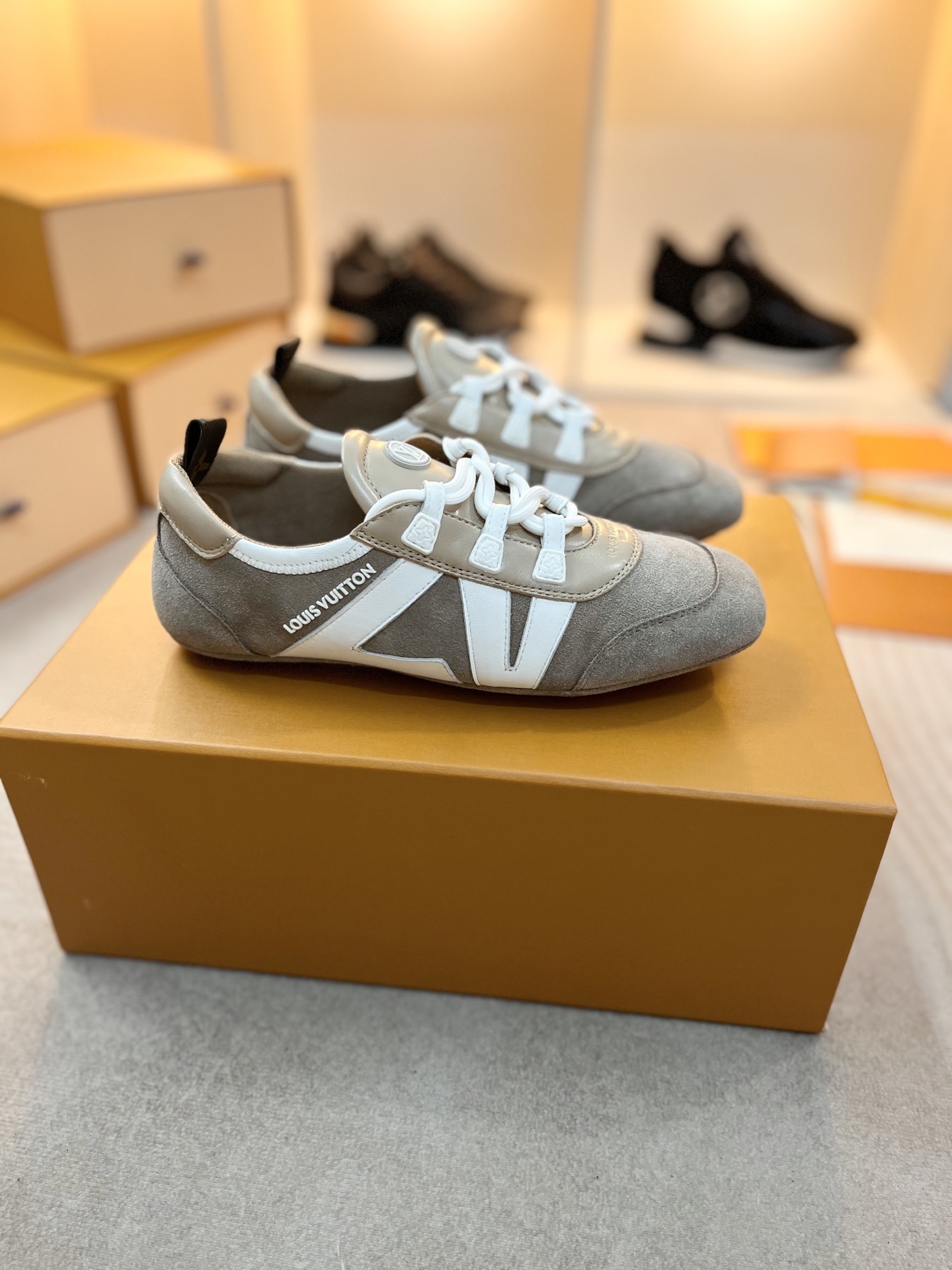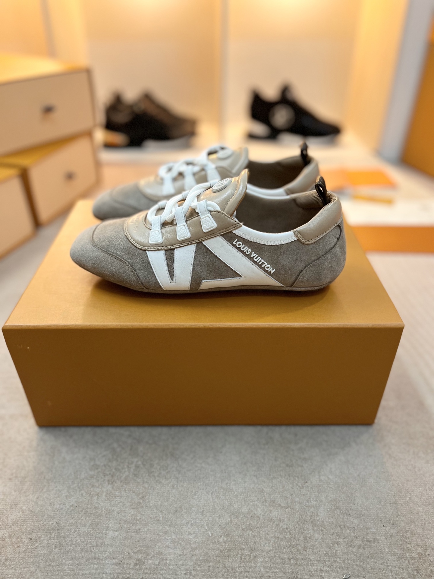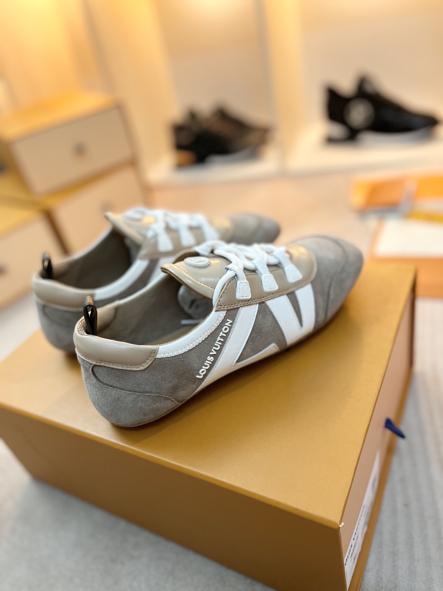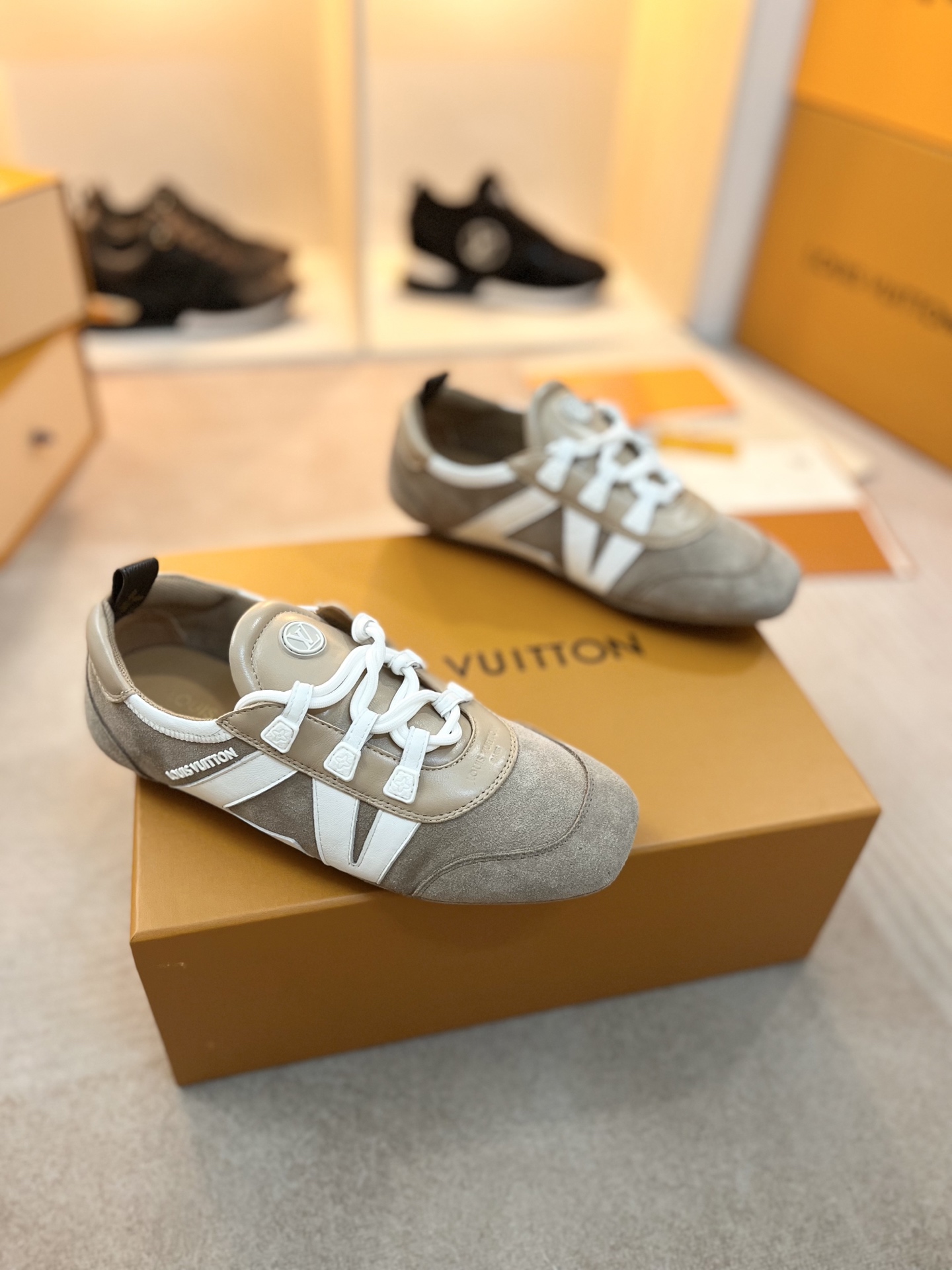这款鞋子是AAAAA 1:1 质量 (非常棒). 使用了和原版一模一样的材料. 商标部分也保持了和路易威登/Louis Vuitton一样. 图片拍摄是实物鞋子拍摄, 您所收到的实物保证和我们图片一模一样.