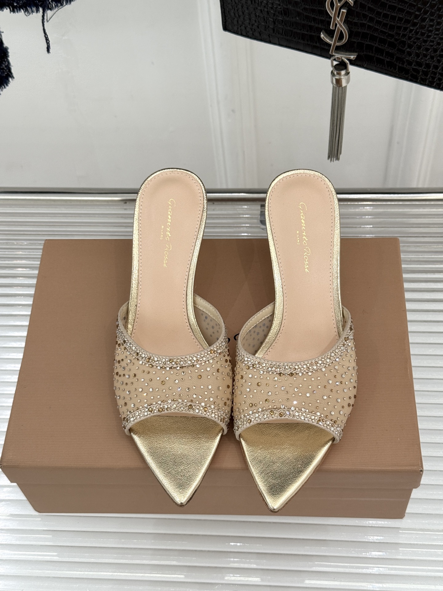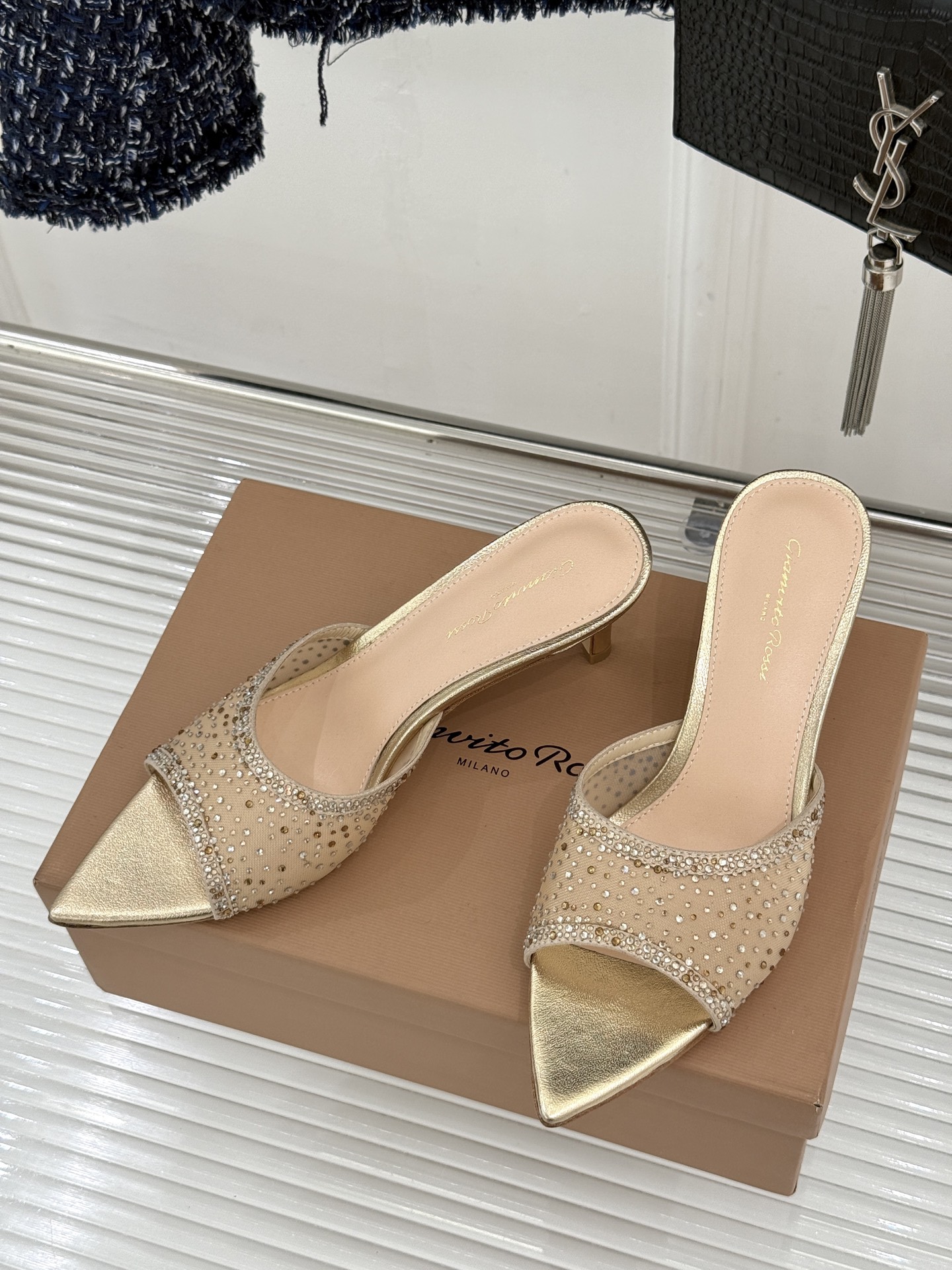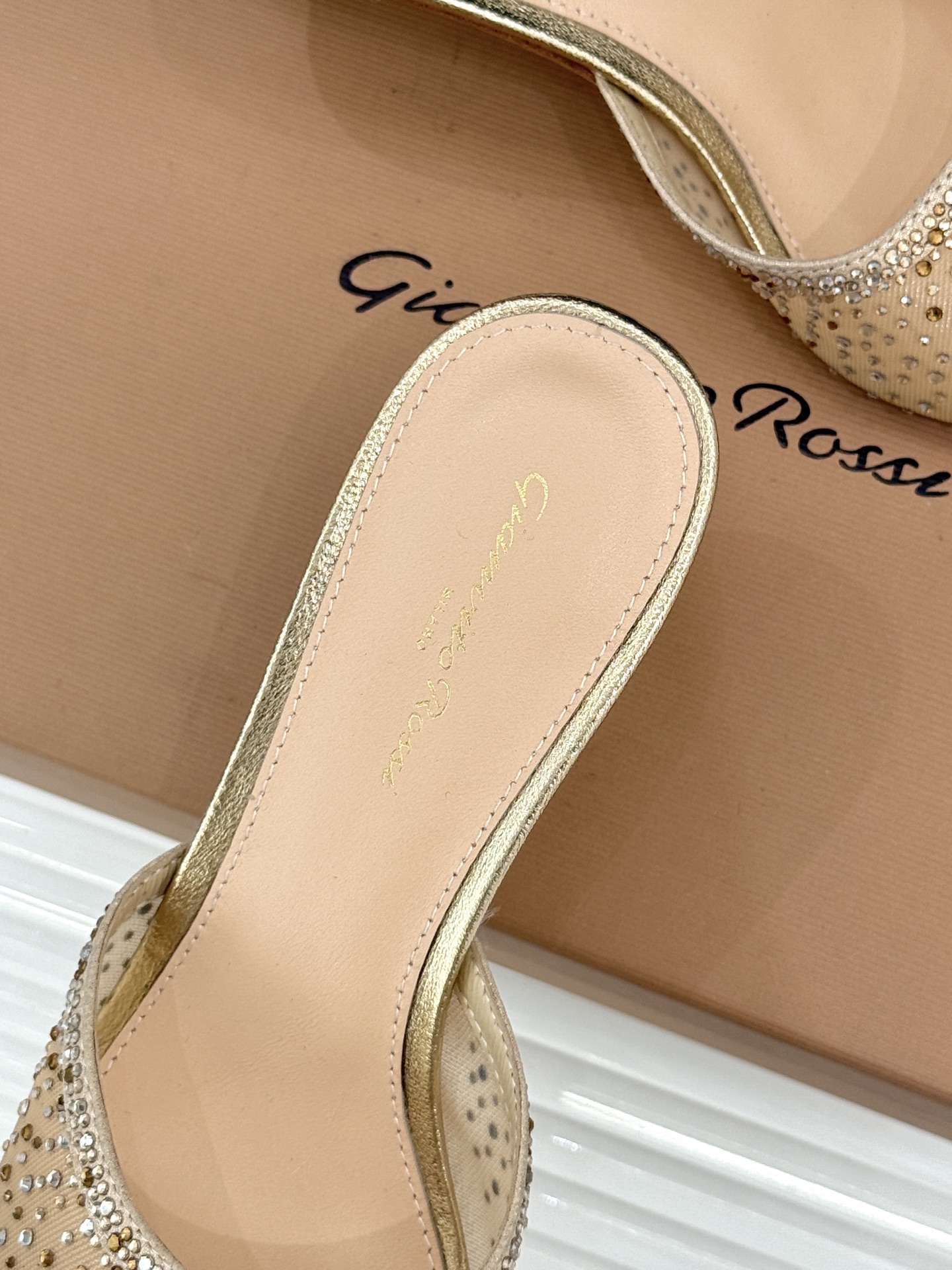 这款鞋子是AAAAA 1:1 质量 (非常棒). 使用了和原版一模一样的材料. 商标部分也保持了和Gianvito Rossi一样. 图片拍摄是实物鞋子拍摄, 您所收到的实物保证和我们图片一模一样.