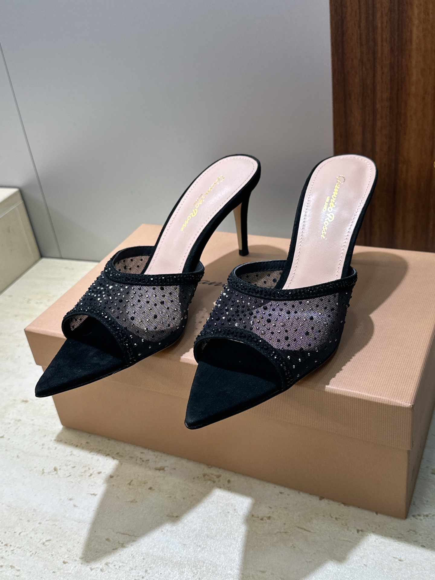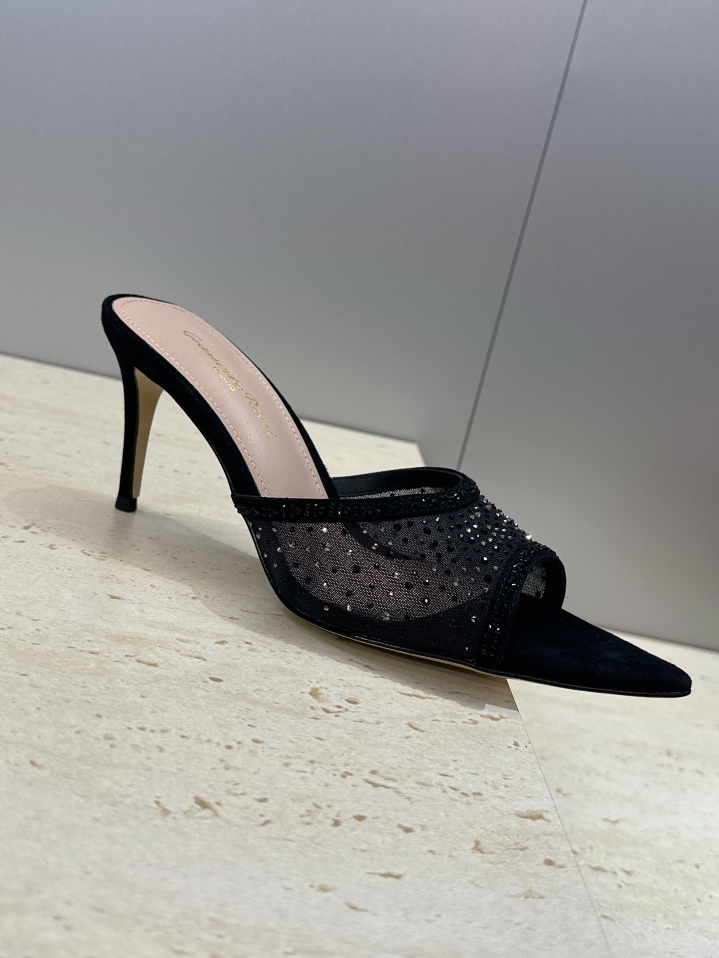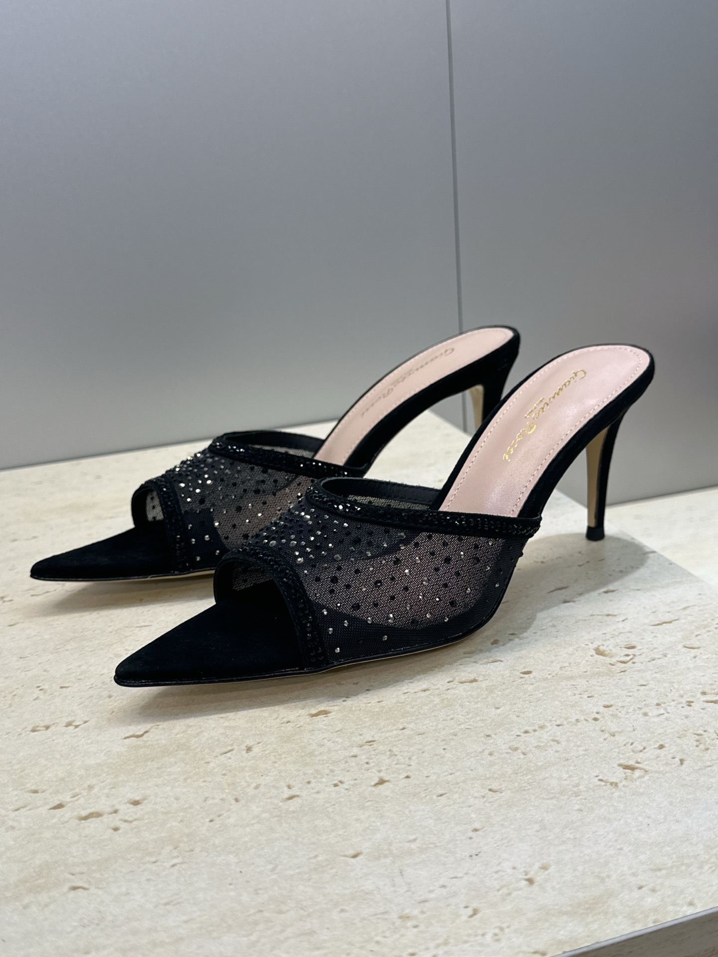 这款鞋子是AAAAA 1:1 质量 (非常棒). 使用了和原版一模一样的材料. 商标部分也保持了和Gianvito Rossi一样. 图片拍摄是实物鞋子拍摄, 您所收到的实物保证和我们图片一模一样.