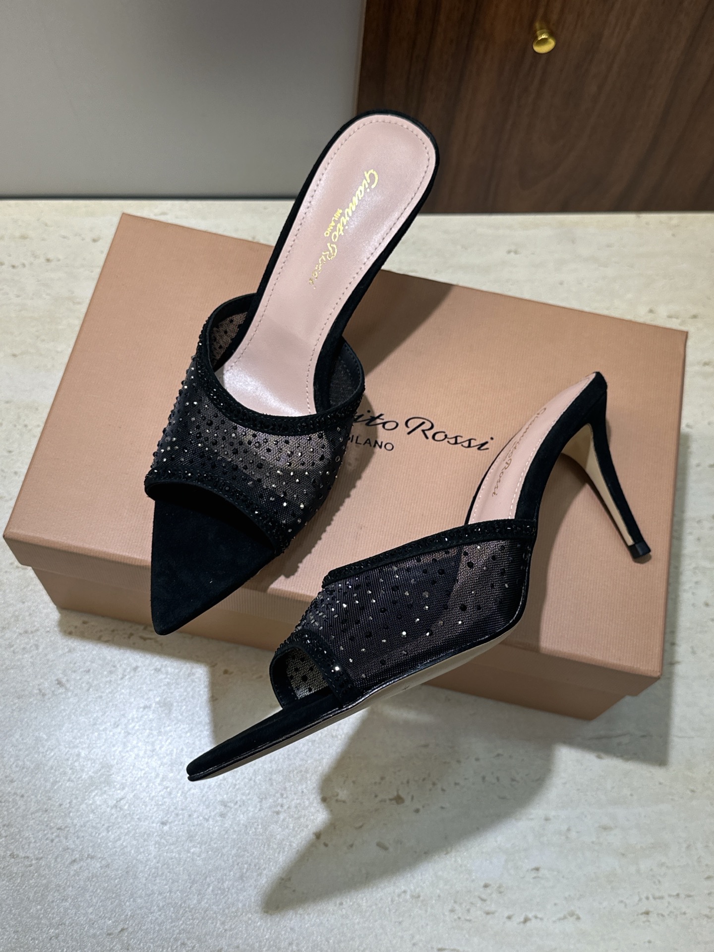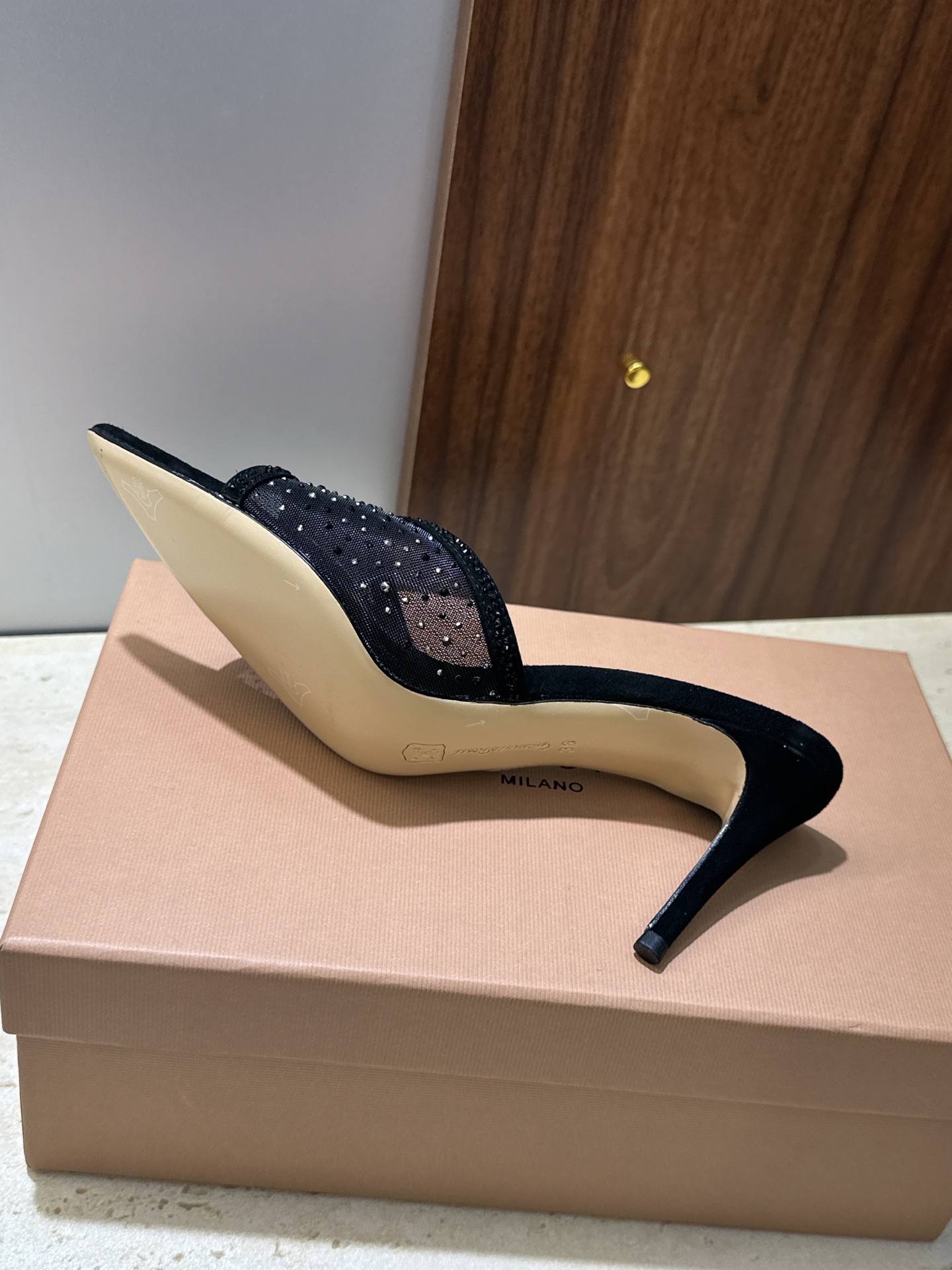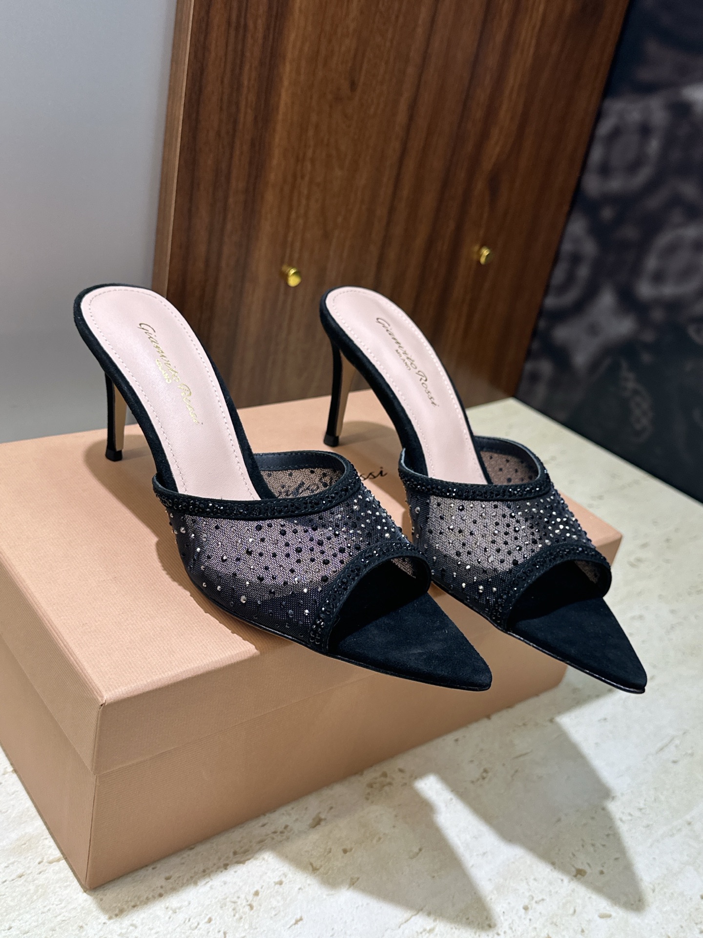 这款鞋子是AAAAA 1:1 质量 (非常棒). 使用了和原版一模一样的材料. 商标部分也保持了和Gianvito Rossi一样. 图片拍摄是实物鞋子拍摄, 您所收到的实物保证和我们图片一模一样.