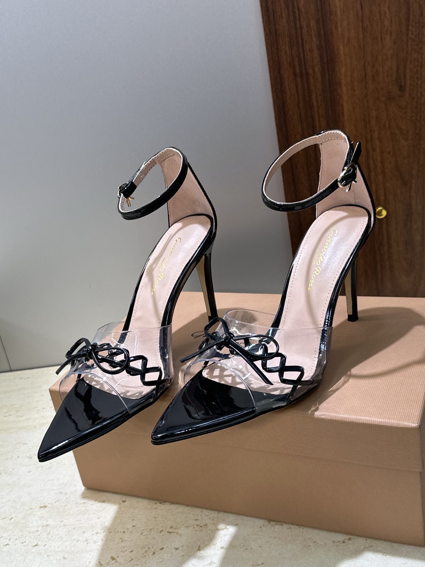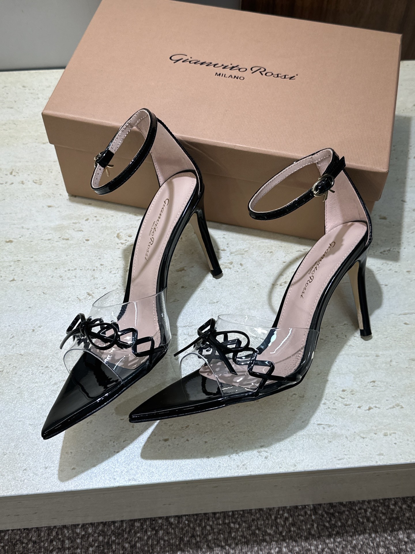 这款鞋子是AAAAA 1:1 质量 (非常棒). 使用了和原版一模一样的材料. 商标部分也保持了和Gianvito Rossi一样. 图片拍摄是实物鞋子拍摄, 您所收到的实物保证和我们图片一模一样.