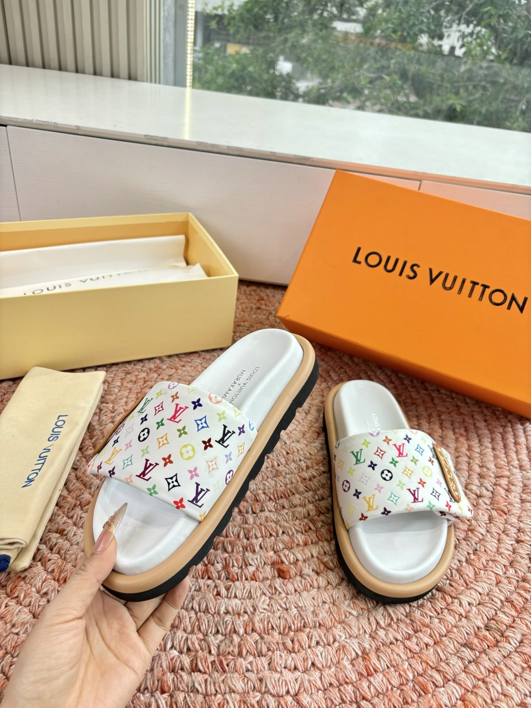 这款鞋子是AAAAA 1:1 质量 (非常棒). 使用了和原版一模一样的材料. 商标部分也保持了和路易威登/Louis Vuitton一样. 图片拍摄是实物鞋子拍摄, 您所收到的实物保证和我们图片一模一样.