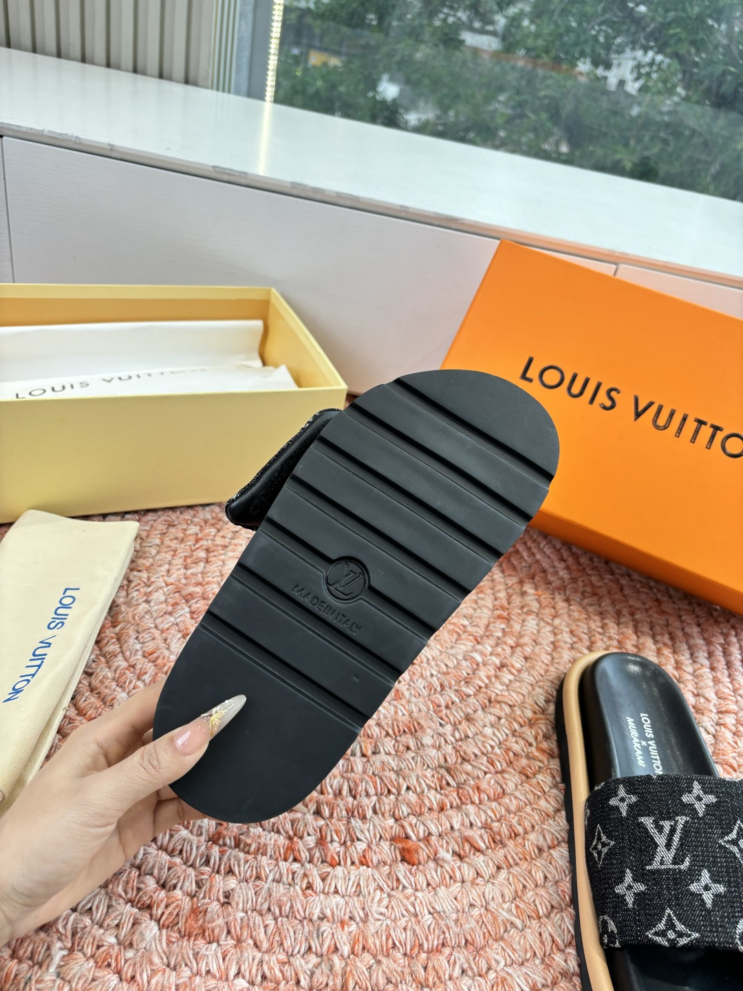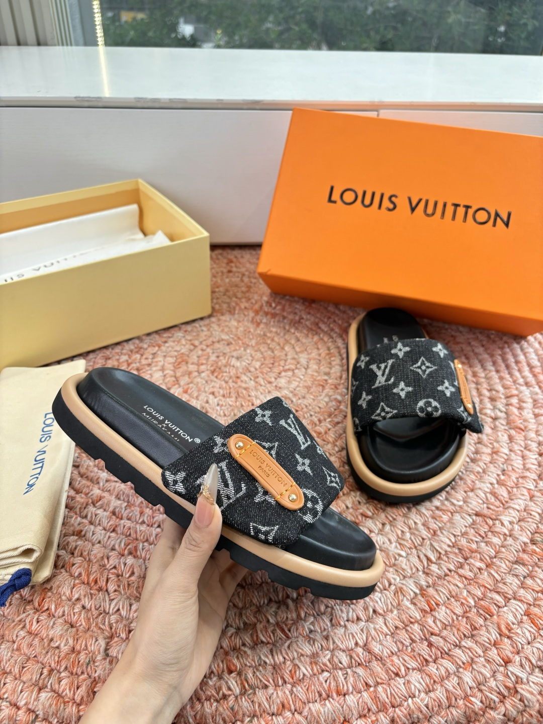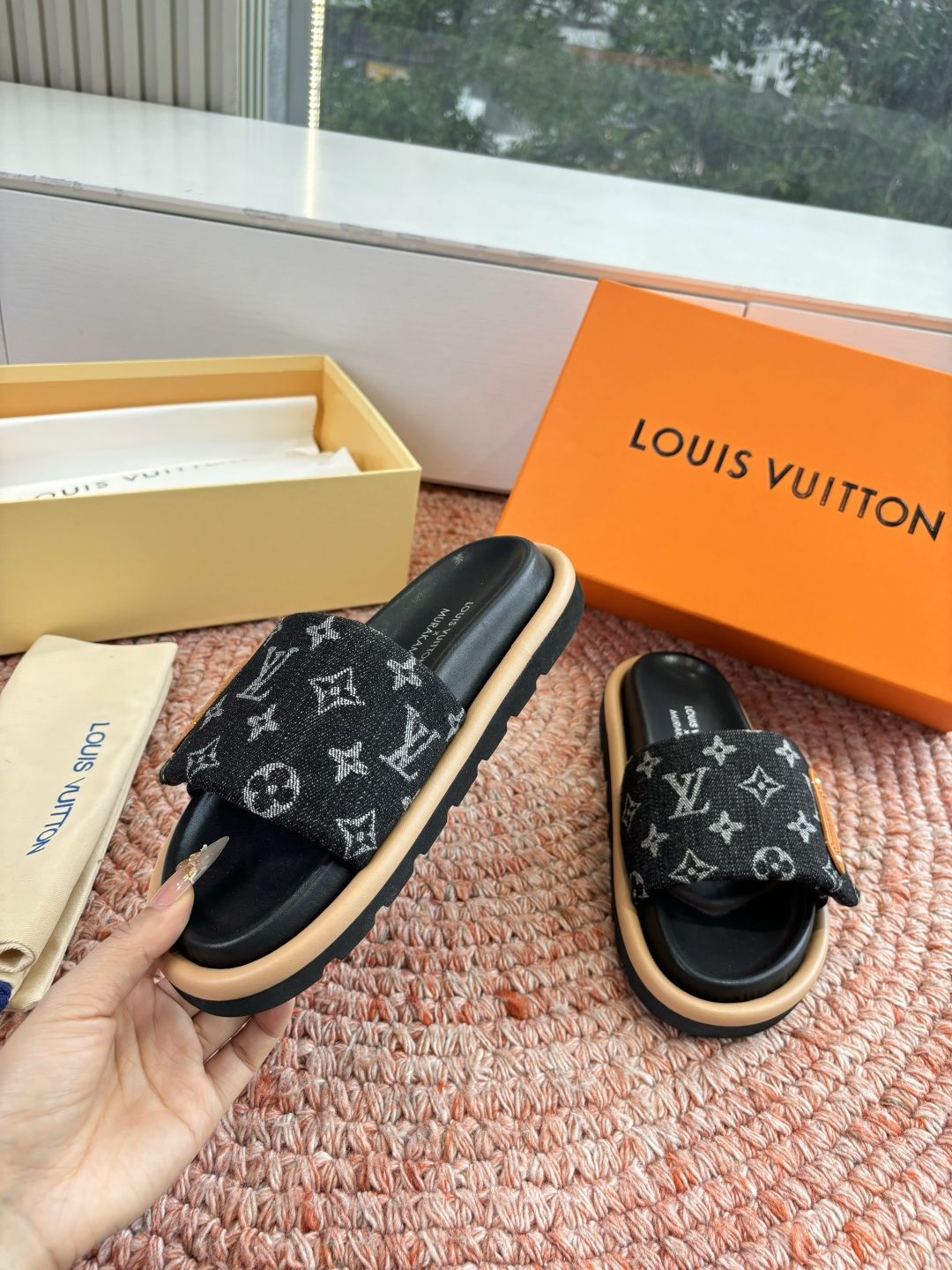这款鞋子是AAAAA 1:1 质量 (非常棒). 使用了和原版一模一样的材料. 商标部分也保持了和路易威登/Louis Vuitton一样. 图片拍摄是实物鞋子拍摄, 您所收到的实物保证和我们图片一模一样.