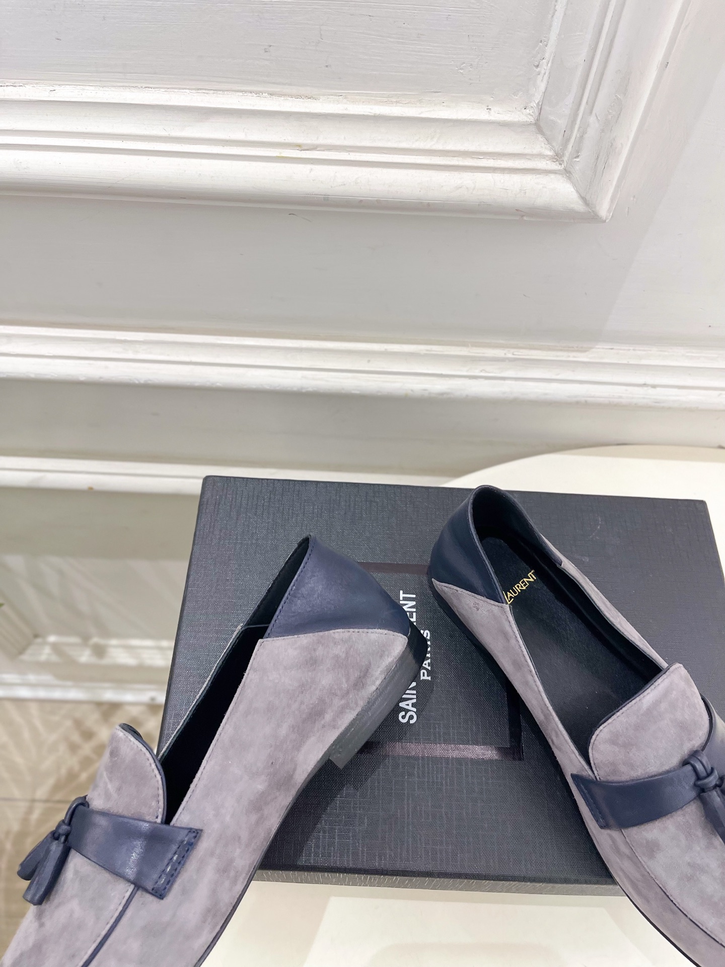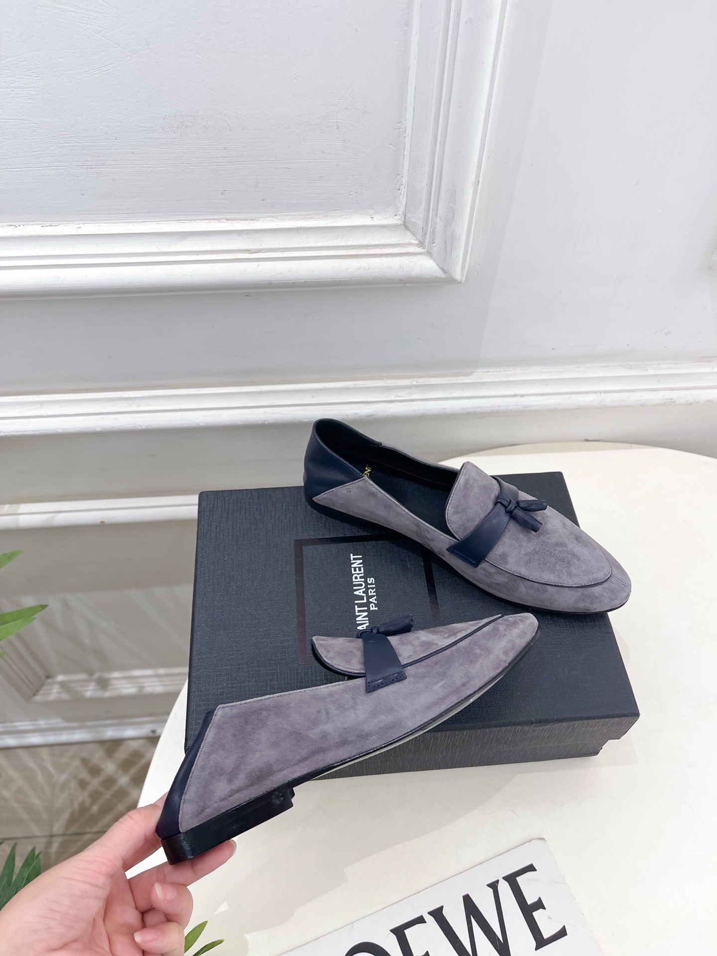 这款鞋子是AAAAA 1:1 质量 (非常棒). 使用了和原版一模一样的材料. 商标部分也保持了和圣罗兰/Saint Laurent一样. 图片拍摄是实物鞋子拍摄, 您所收到的实物保证和我们图片一模一样.