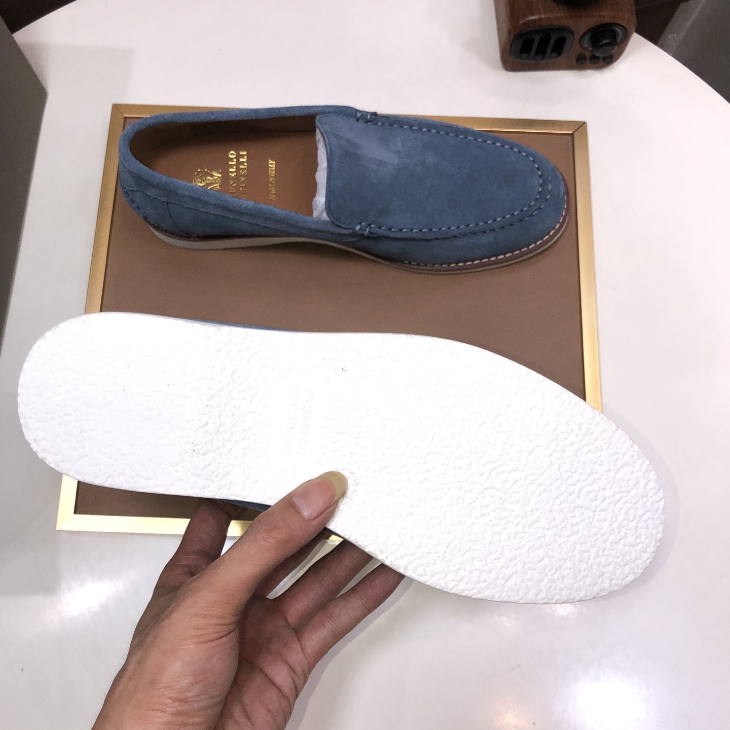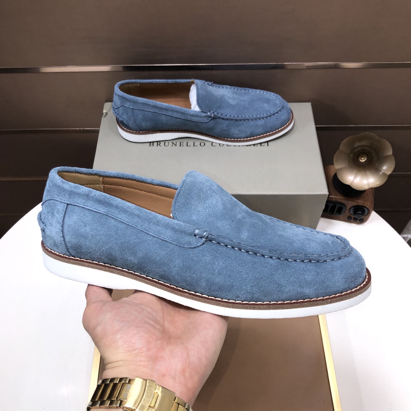 这款鞋子是AAAAA 1:1 质量 (非常棒). 使用了和原版一模一样的材料. 商标部分也保持了和Brunello Cucinelli一样. 图片拍摄是实物鞋子拍摄, 您所收到的实物保证和我们图片一模一样.