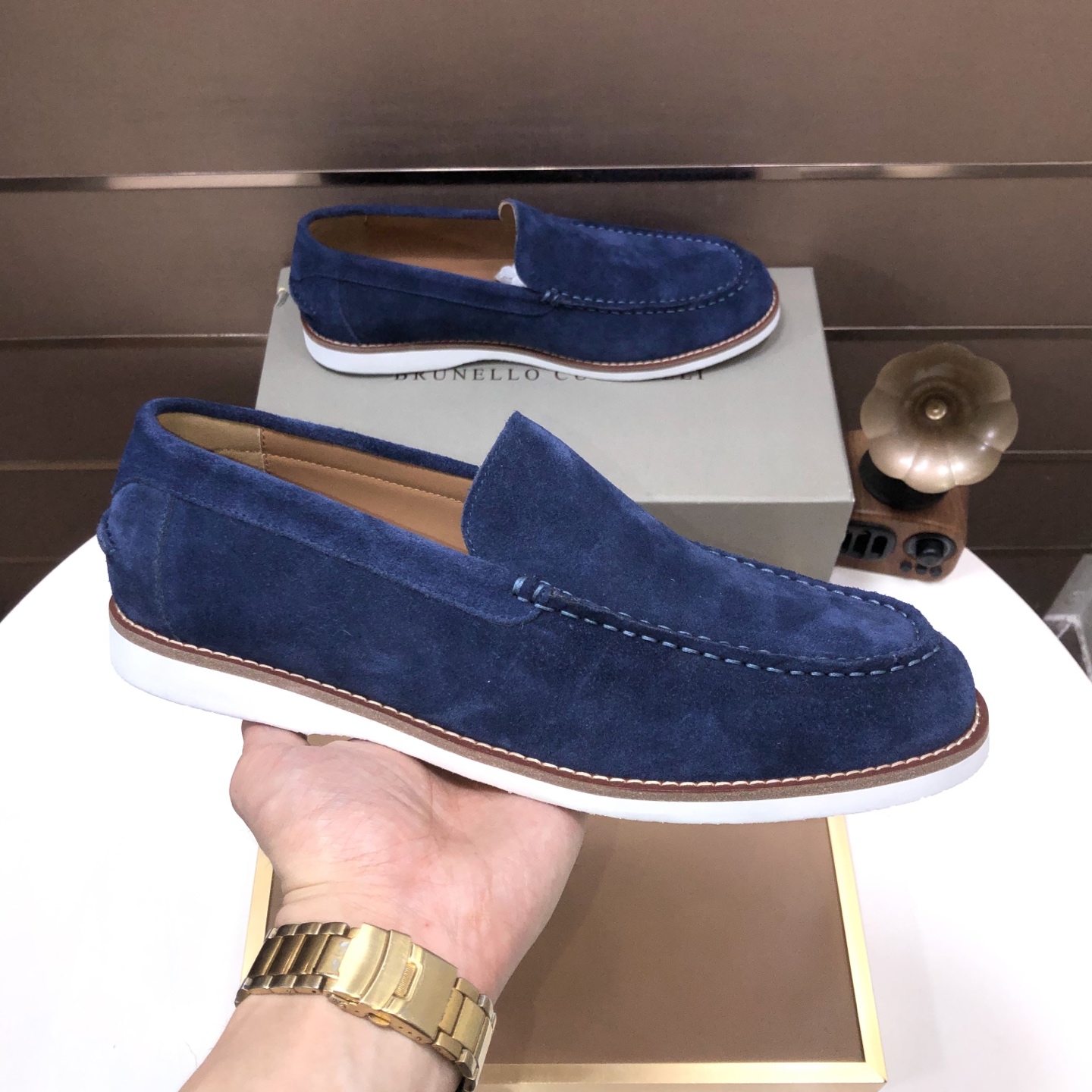 这款鞋子是AAAAA 1:1 质量 (非常棒). 使用了和原版一模一样的材料. 商标部分也保持了和Brunello Cucinelli一样. 图片拍摄是实物鞋子拍摄, 您所收到的实物保证和我们图片一模一样.
