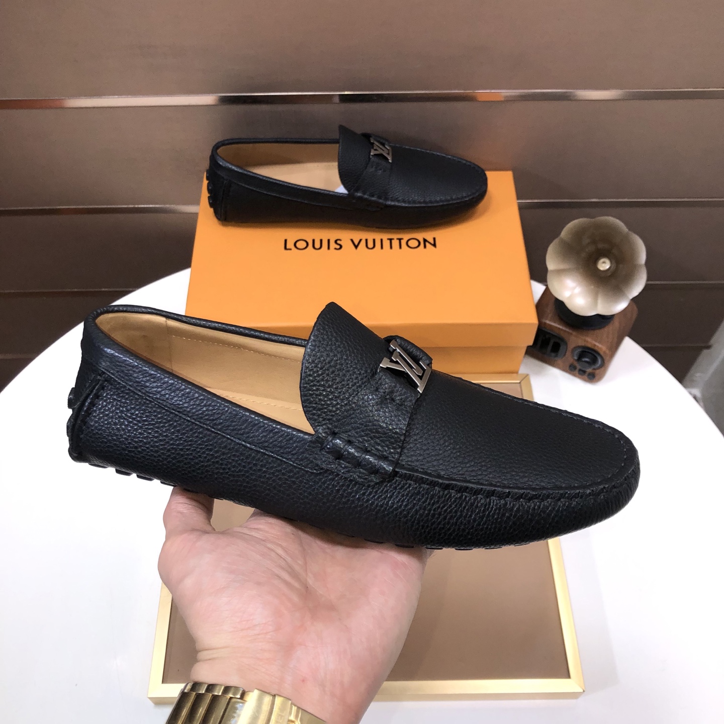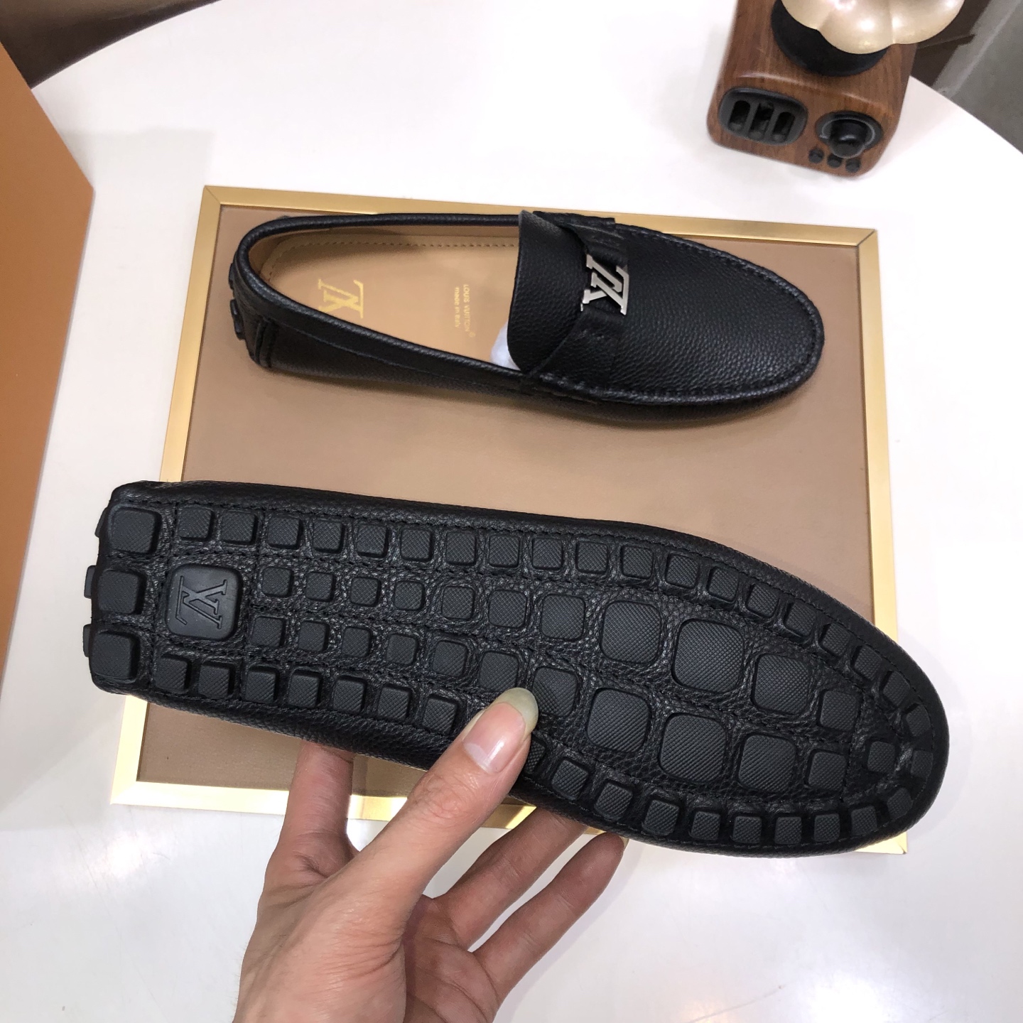 这款鞋子是AAAAA 1:1 质量 (非常棒). 使用了和原版一模一样的材料. 商标部分也保持了和路易威登/Louis Vuitton一样. 图片拍摄是实物鞋子拍摄, 您所收到的实物保证和我们图片一模一样.