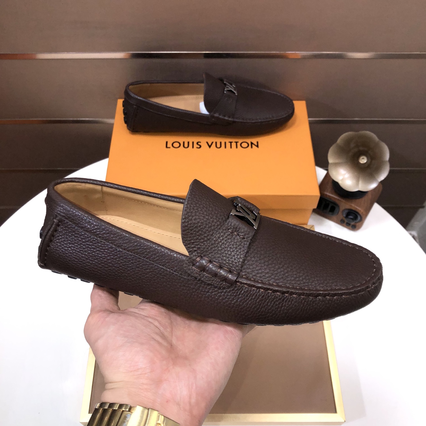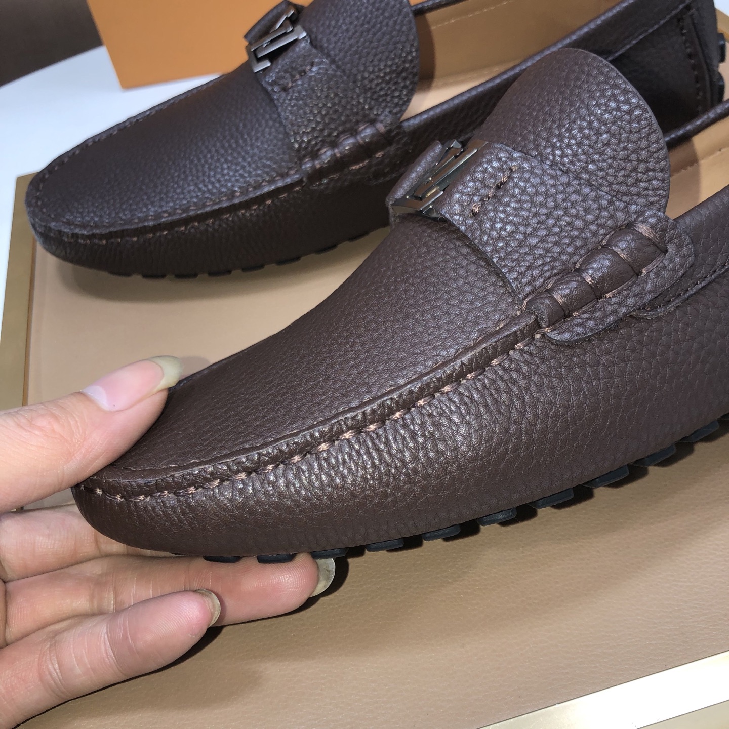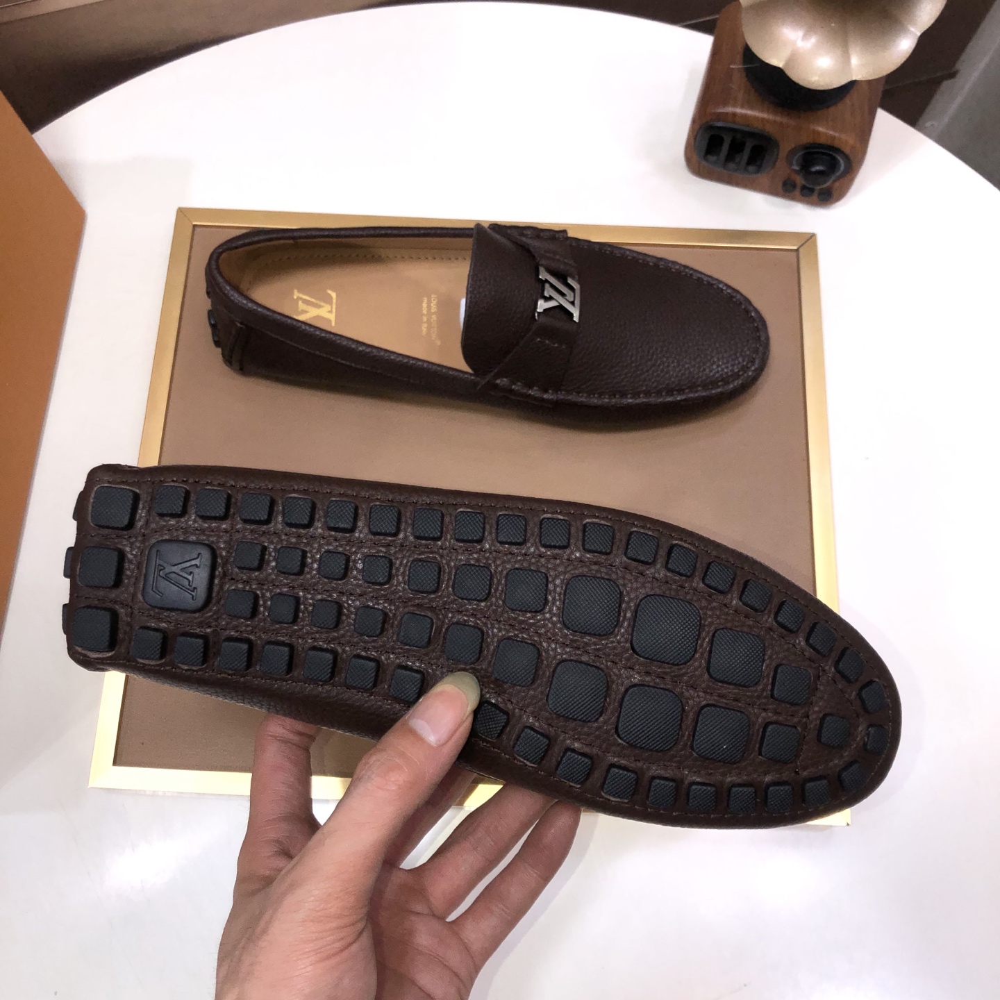 这款鞋子是AAAAA 1:1 质量 (非常棒). 使用了和原版一模一样的材料. 商标部分也保持了和路易威登/Louis Vuitton一样. 图片拍摄是实物鞋子拍摄, 您所收到的实物保证和我们图片一模一样.