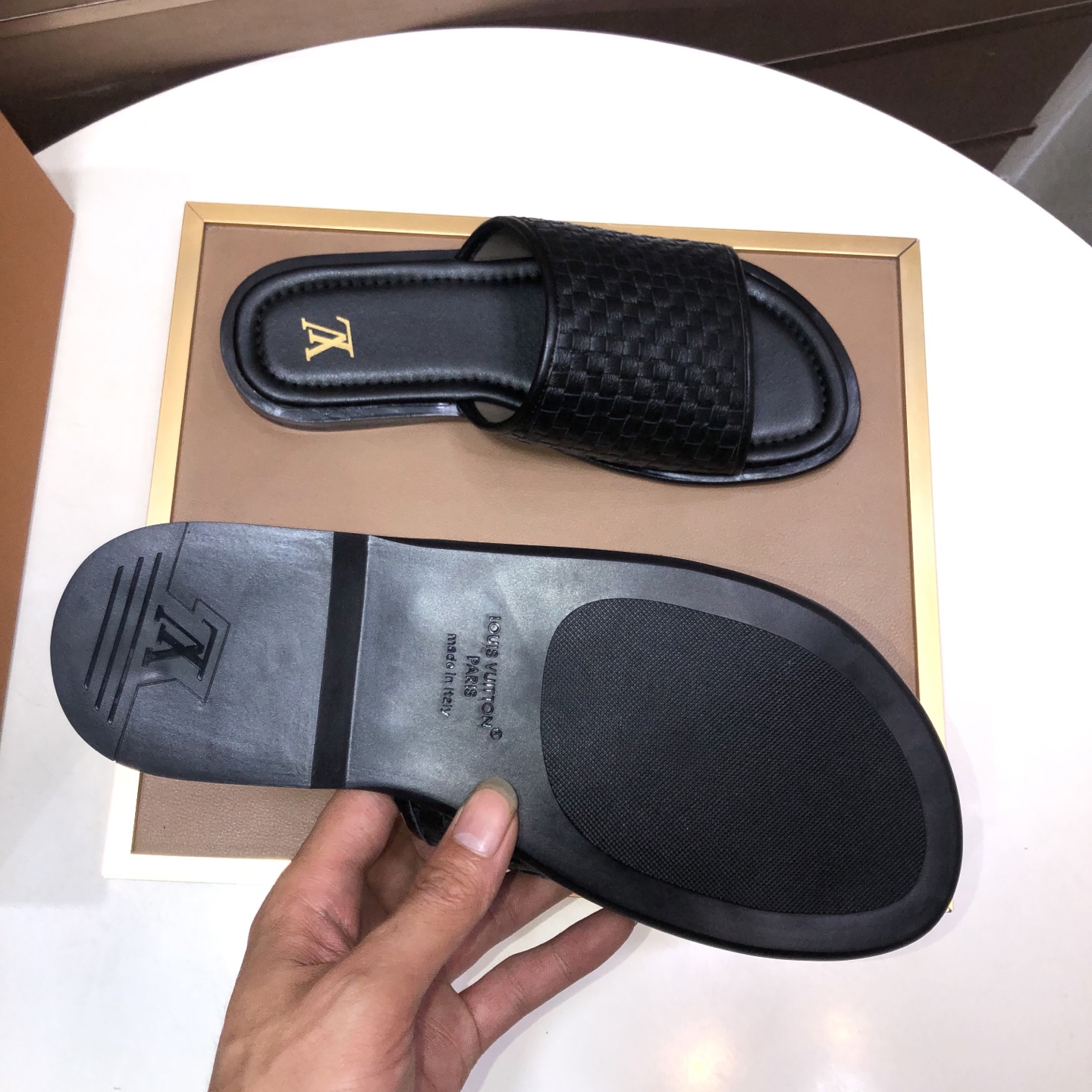 这款鞋子是AAAAA 1:1 质量 (非常棒). 使用了和原版一模一样的材料. 商标部分也保持了和路易威登/Louis Vuitton一样. 图片拍摄是实物鞋子拍摄, 您所收到的实物保证和我们图片一模一样.