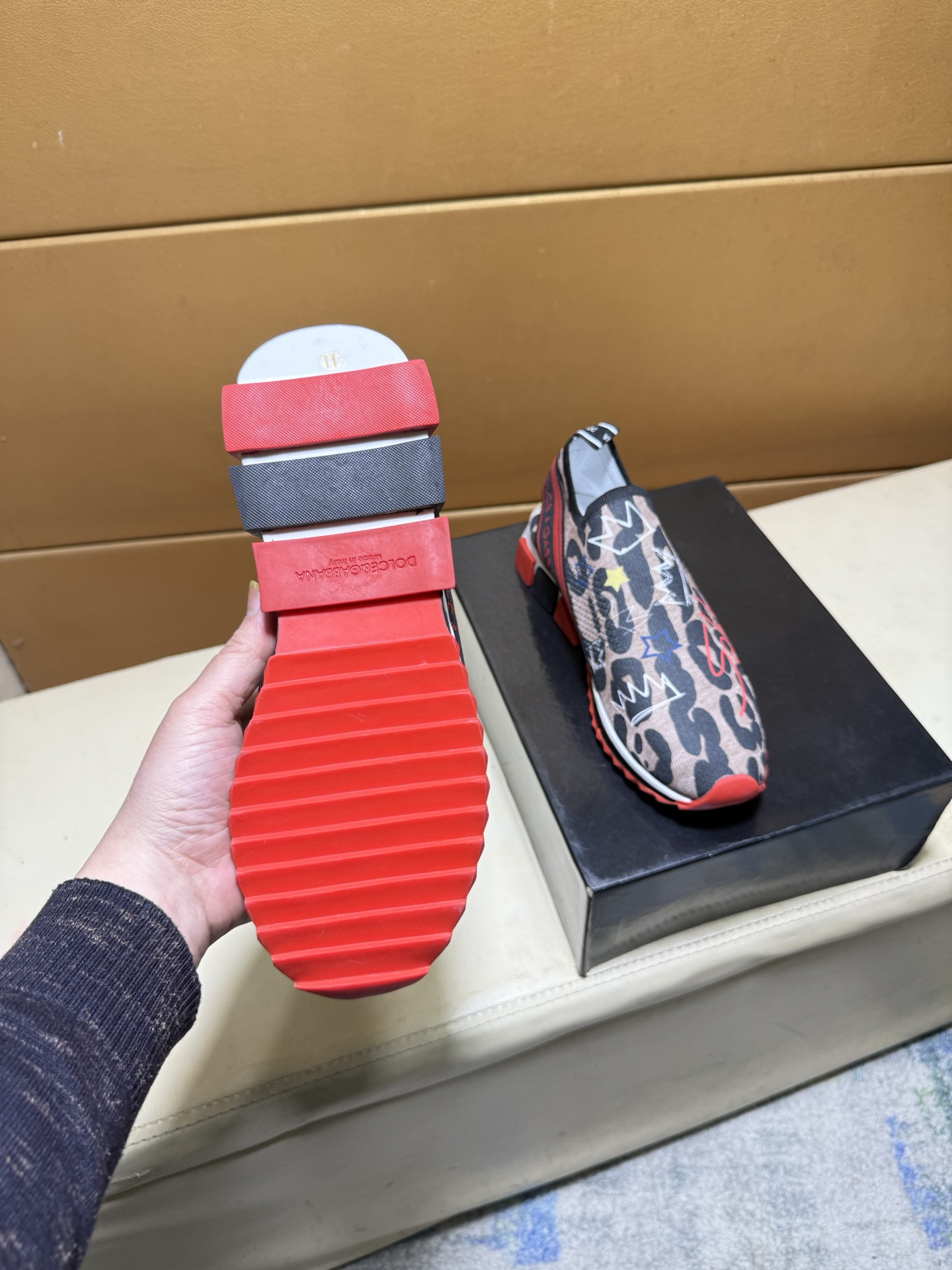 这款鞋子是AAAAA 1:1 质量 (非常棒). 使用了和原版一模一样的材料. 商标部分也保持了和杜嘉班纳/Dolce&Gabbana一样. 图片拍摄是实物鞋子拍摄, 您所收到的实物保证和我们图片一模一样.