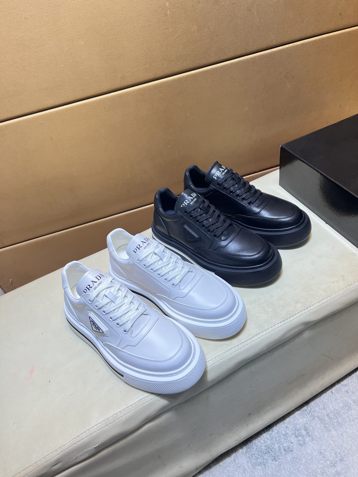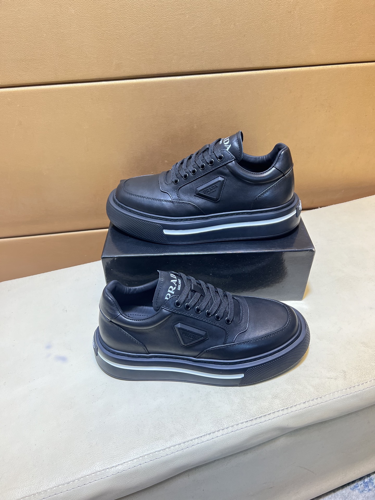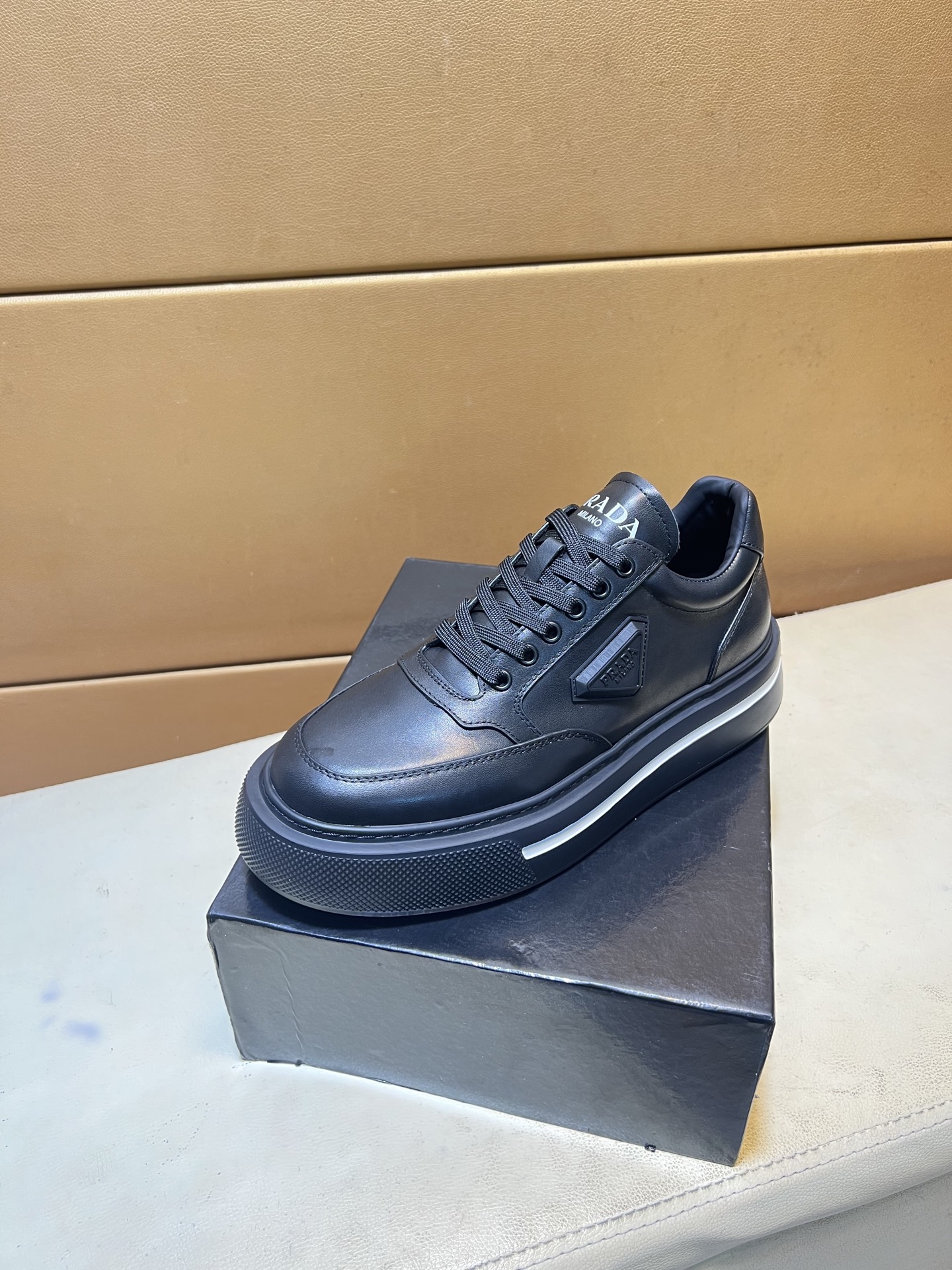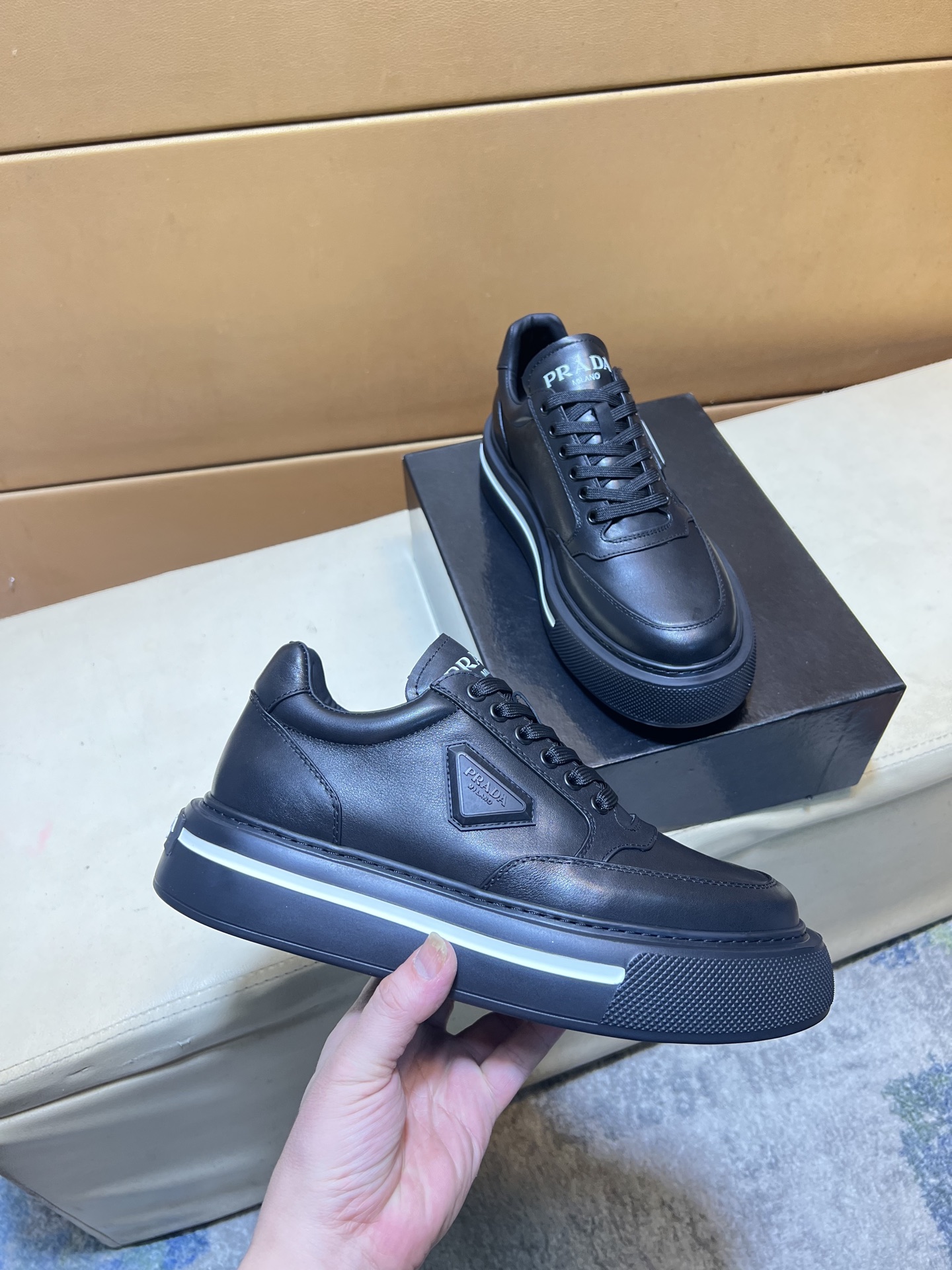 这款鞋子是AAAAA 1:1 质量 (非常棒). 使用了和原版一模一样的材料. 商标部分也保持了和普拉达/Prada一样. 图片拍摄是实物鞋子拍摄, 您所收到的实物保证和我们图片一模一样.