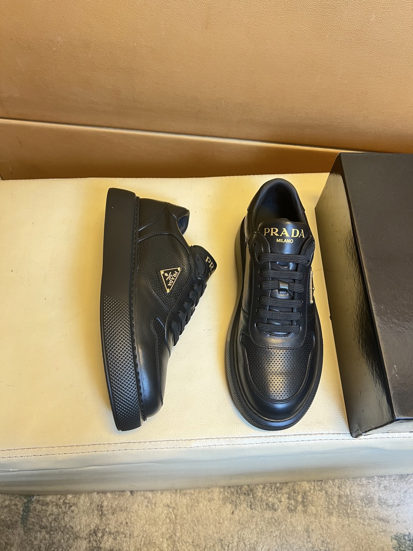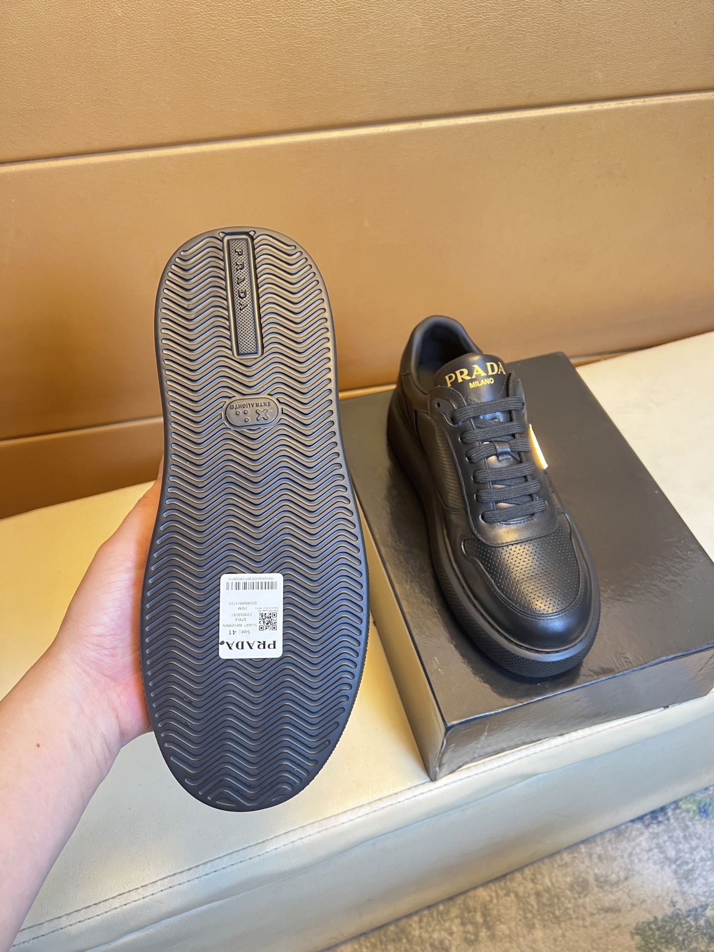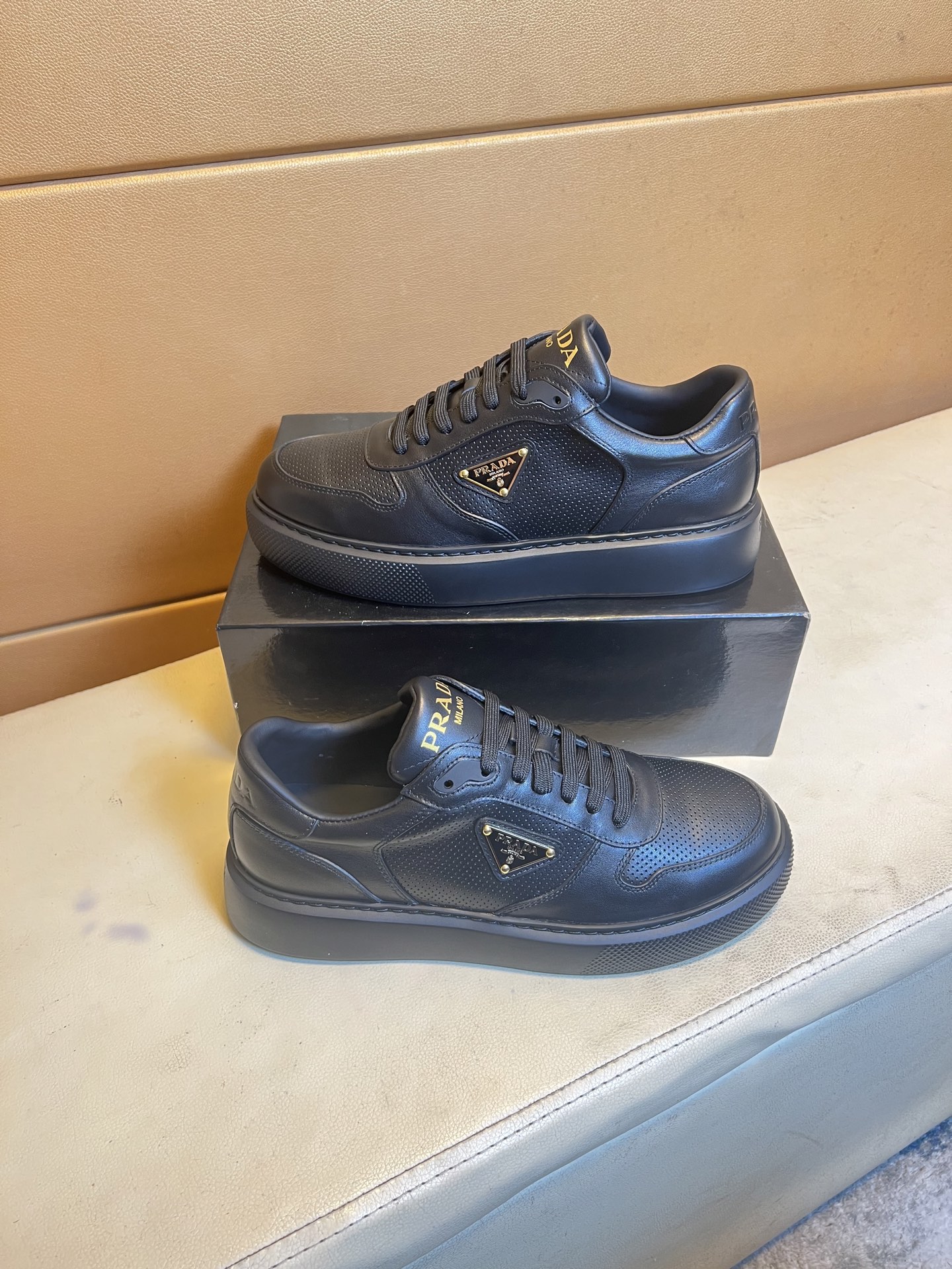 这款鞋子是AAAAA 1:1 质量 (非常棒). 使用了和原版一模一样的材料. 商标部分也保持了和普拉达/Prada一样. 图片拍摄是实物鞋子拍摄, 您所收到的实物保证和我们图片一模一样.