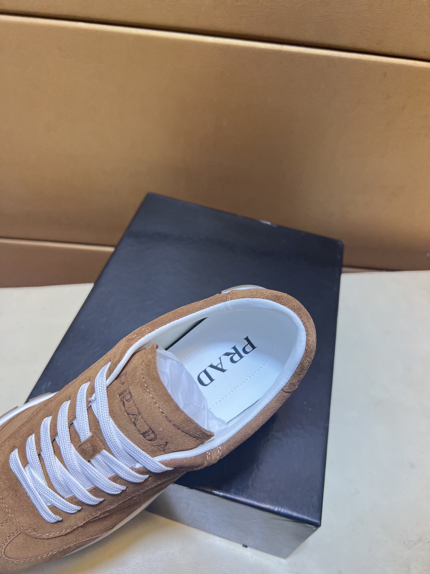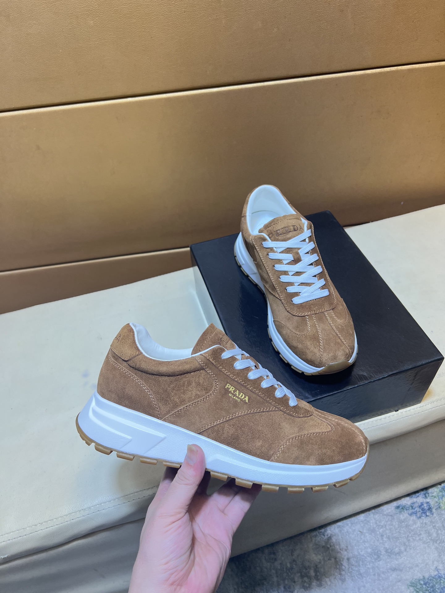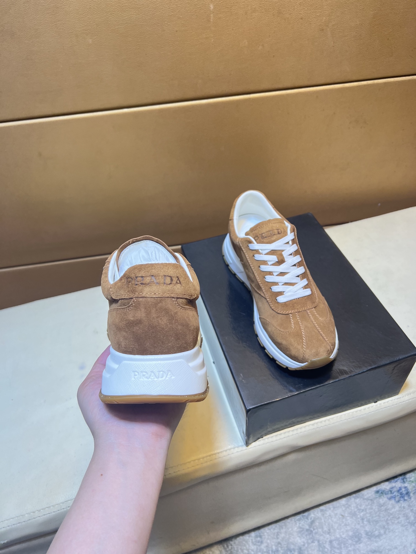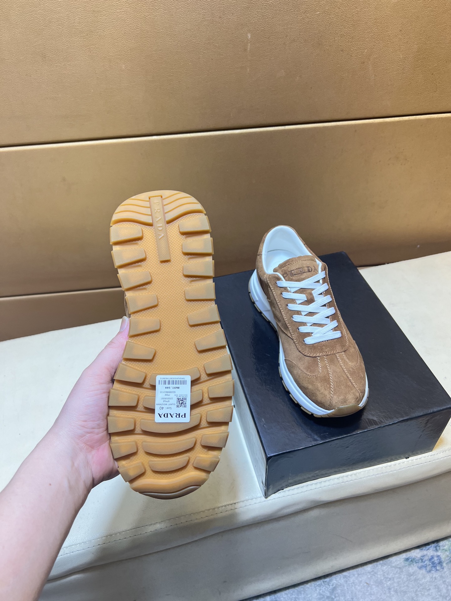 这款鞋子是AAAAA 1:1 质量 (非常棒). 使用了和原版一模一样的材料. 商标部分也保持了和普拉达/Prada一样. 图片拍摄是实物鞋子拍摄, 您所收到的实物保证和我们图片一模一样.