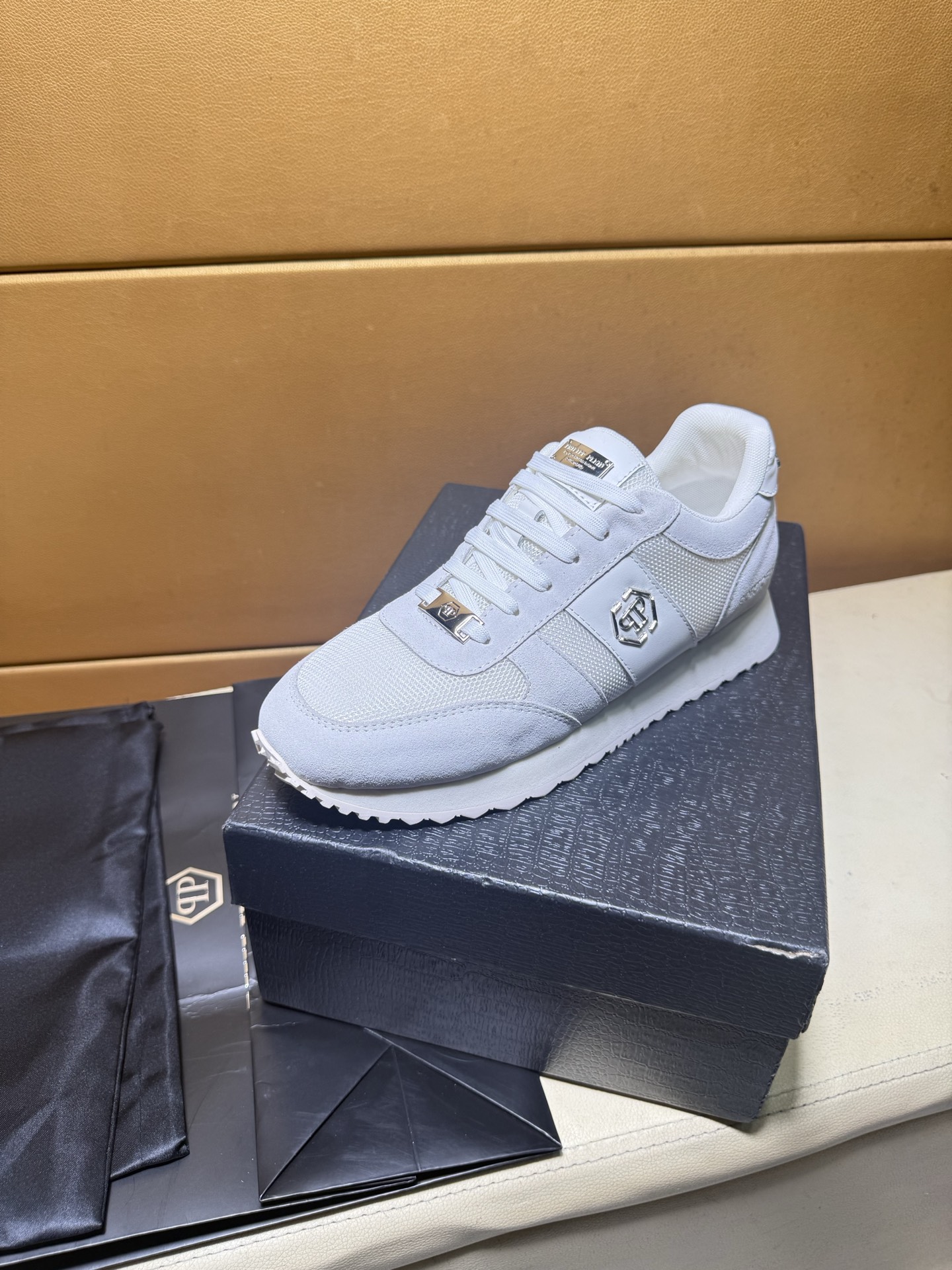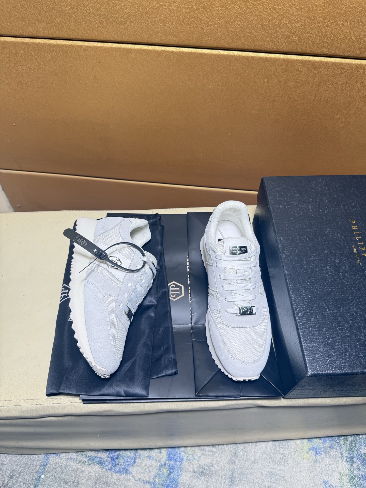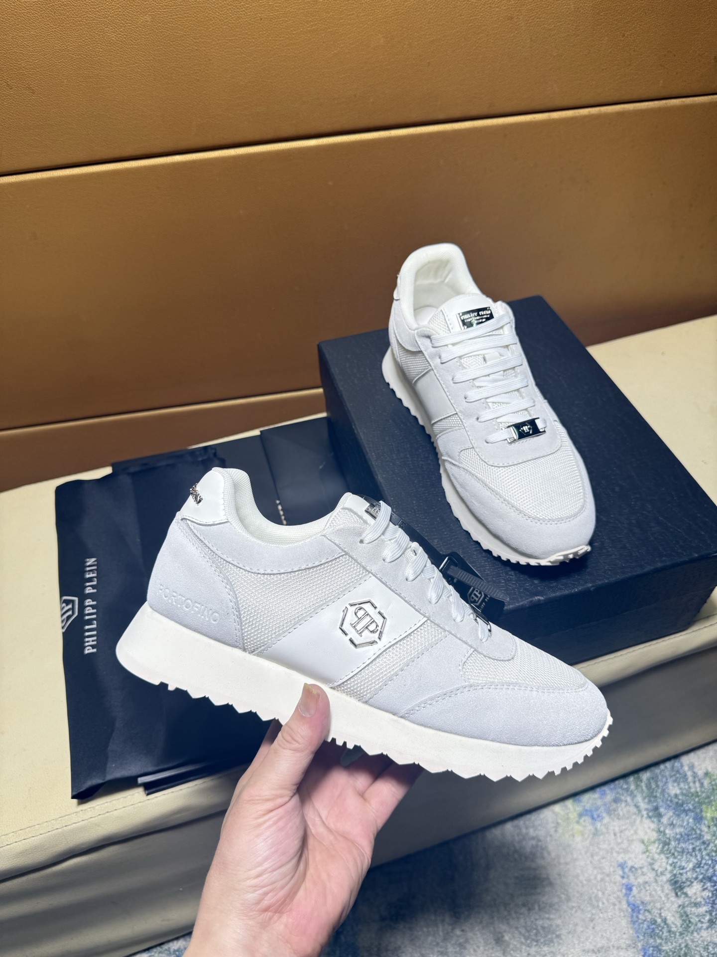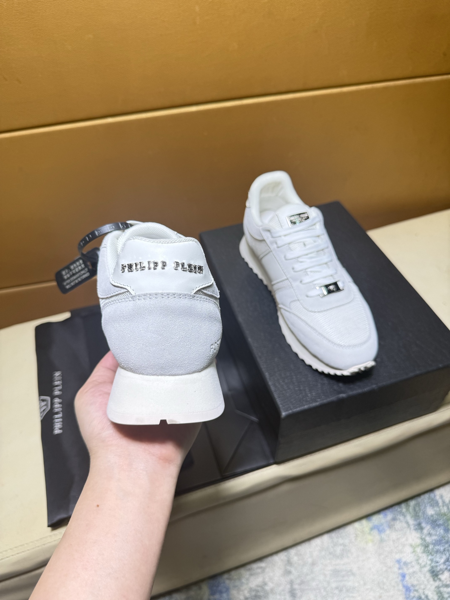 这款鞋子是AAAAA 1:1 质量 (非常棒). 使用了和原版一模一样的材料. 商标部分也保持了和菲利普·普林/Philipp Plein一样. 图片拍摄是实物鞋子拍摄, 您所收到的实物保证和我们图片一模一样.