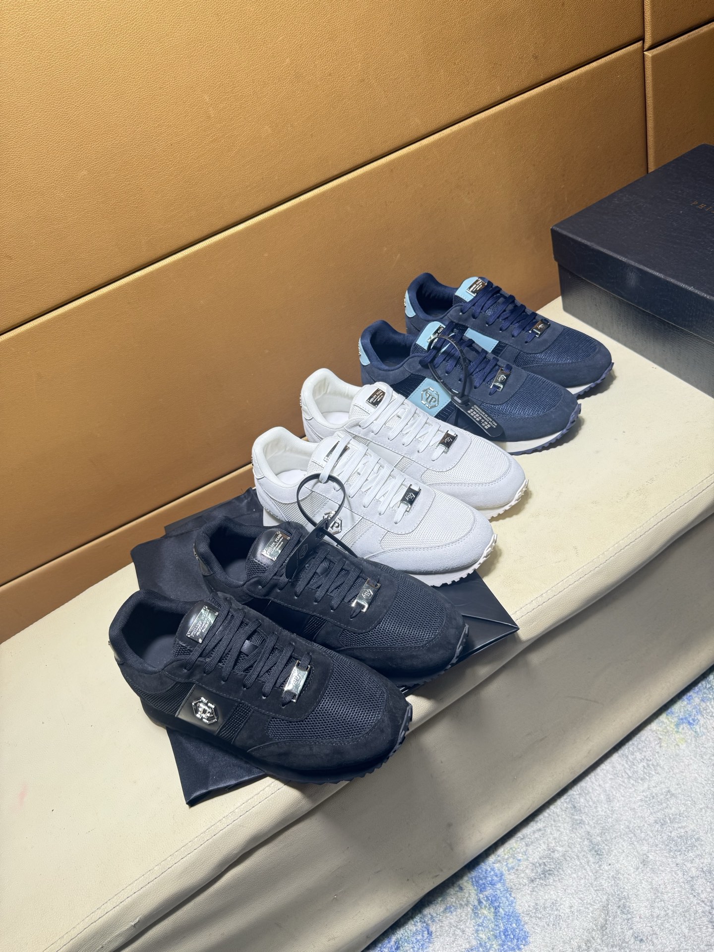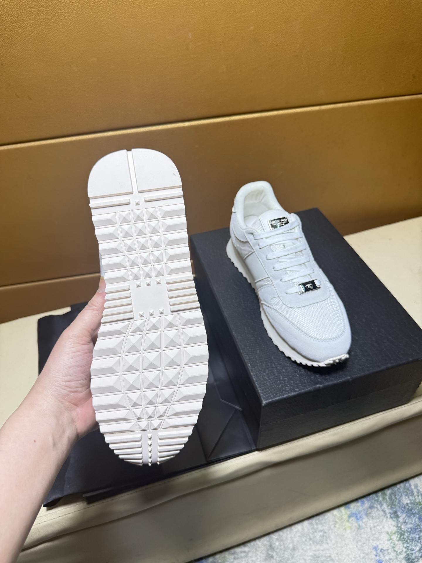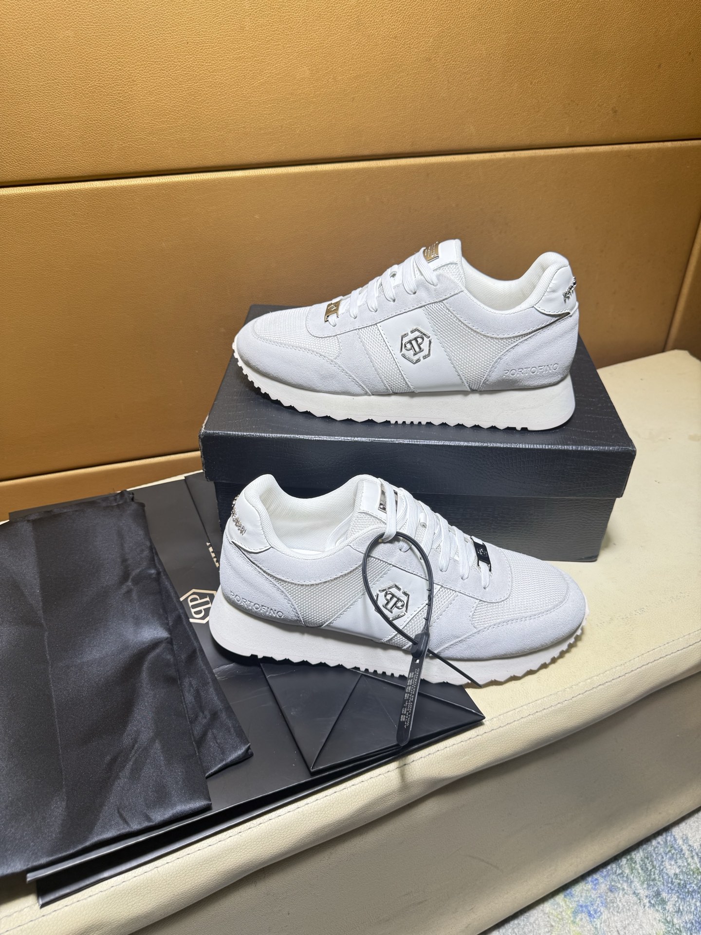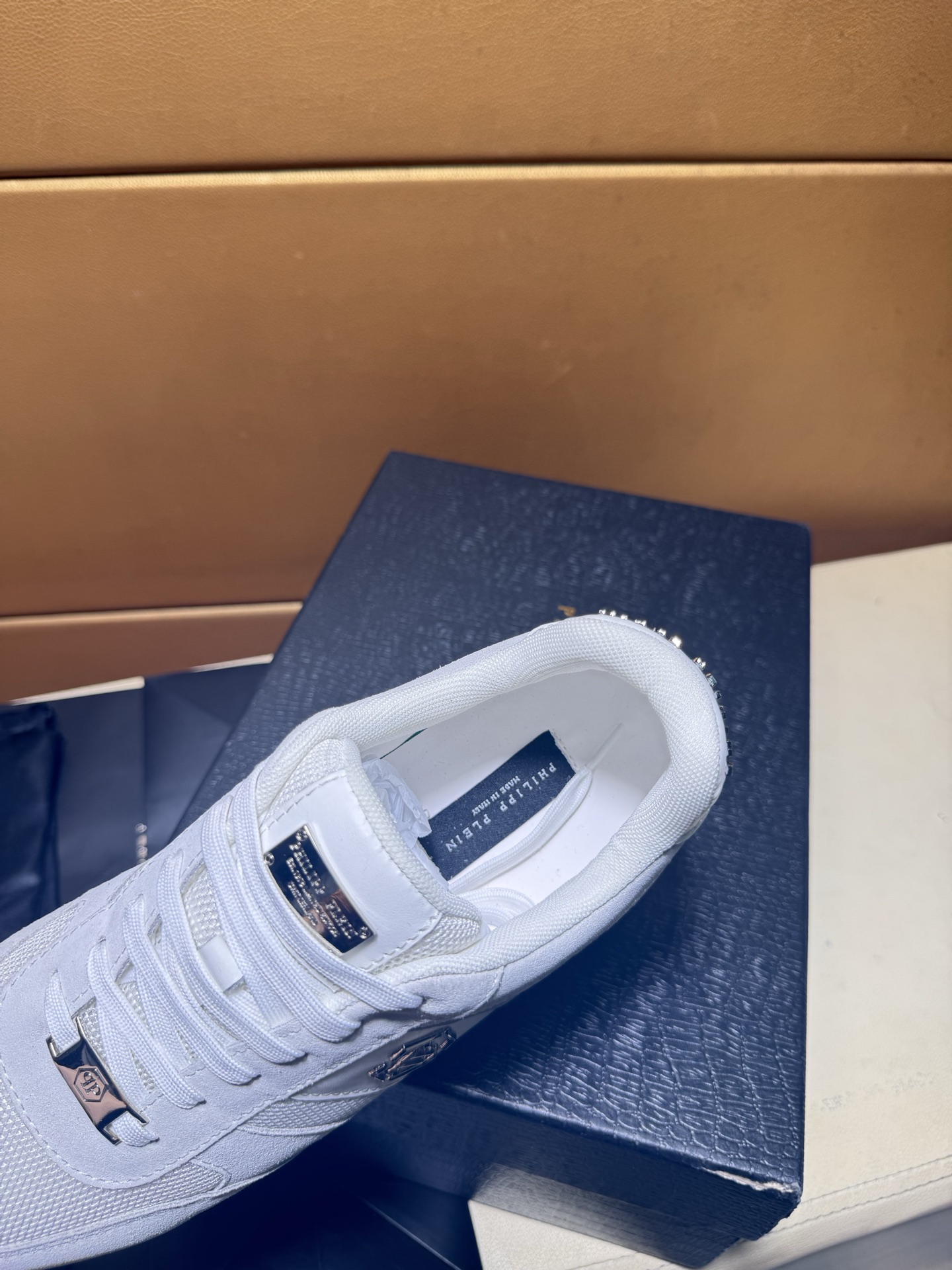 这款鞋子是AAAAA 1:1 质量 (非常棒). 使用了和原版一模一样的材料. 商标部分也保持了和菲利普·普林/Philipp Plein一样. 图片拍摄是实物鞋子拍摄, 您所收到的实物保证和我们图片一模一样.