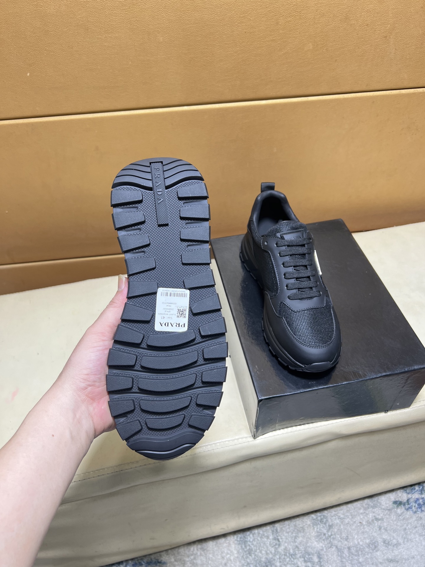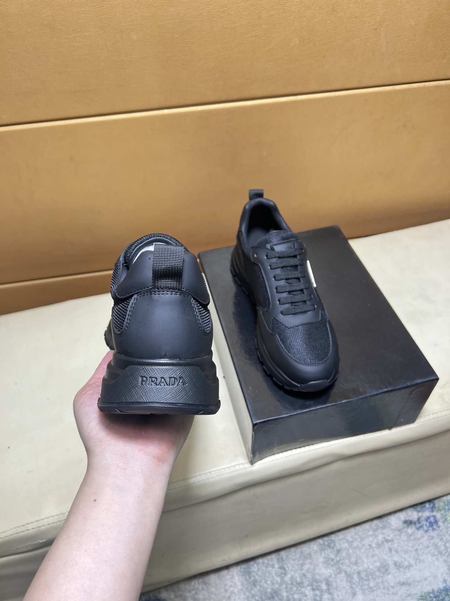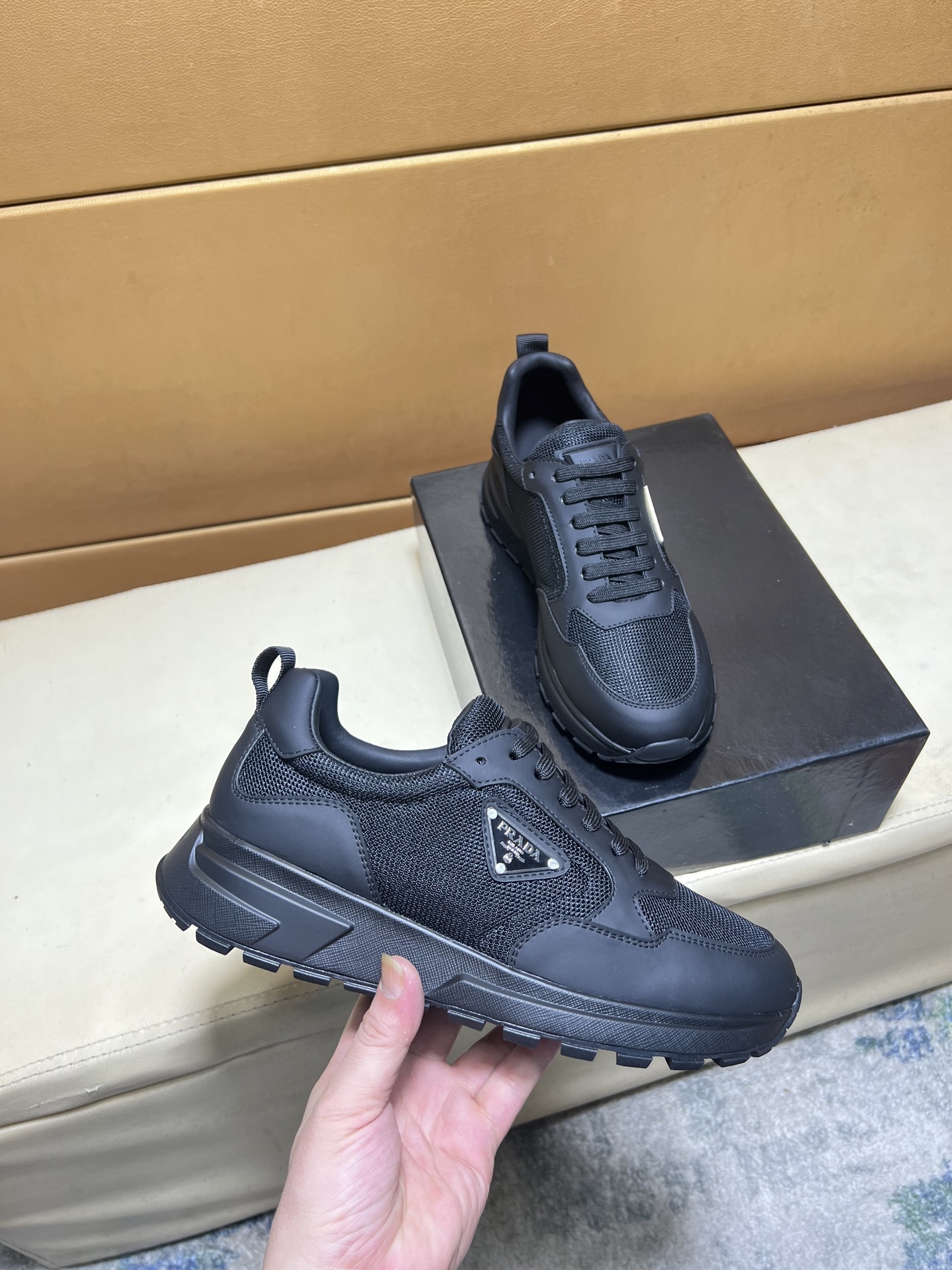 这款鞋子是AAAAA 1:1 质量 (非常棒). 使用了和原版一模一样的材料. 商标部分也保持了和普拉达/Prada一样. 图片拍摄是实物鞋子拍摄, 您所收到的实物保证和我们图片一模一样.