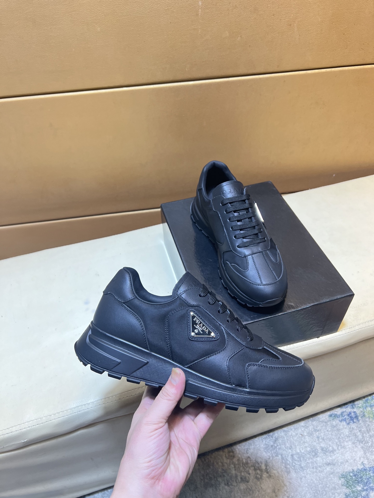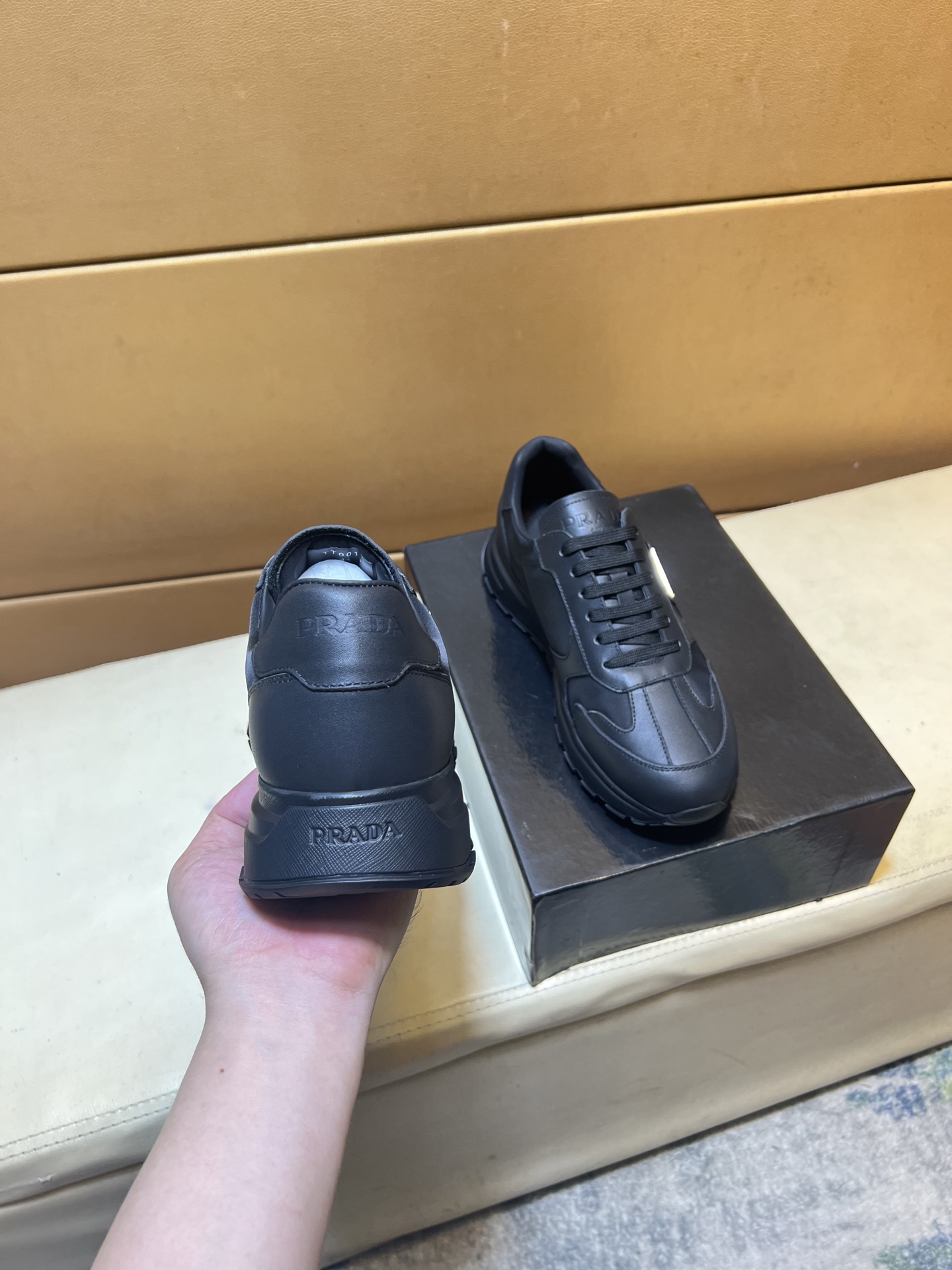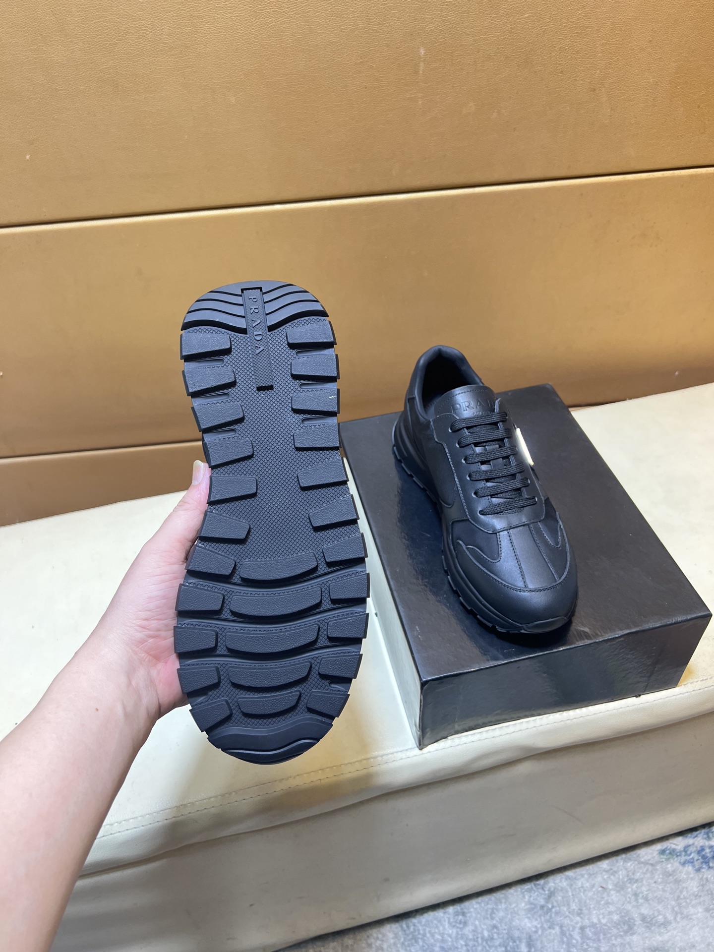 这款鞋子是AAAAA 1:1 质量 (非常棒). 使用了和原版一模一样的材料. 商标部分也保持了和普拉达/Prada一样. 图片拍摄是实物鞋子拍摄, 您所收到的实物保证和我们图片一模一样.