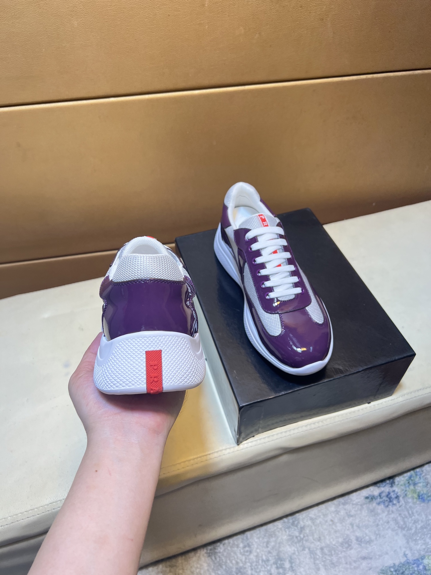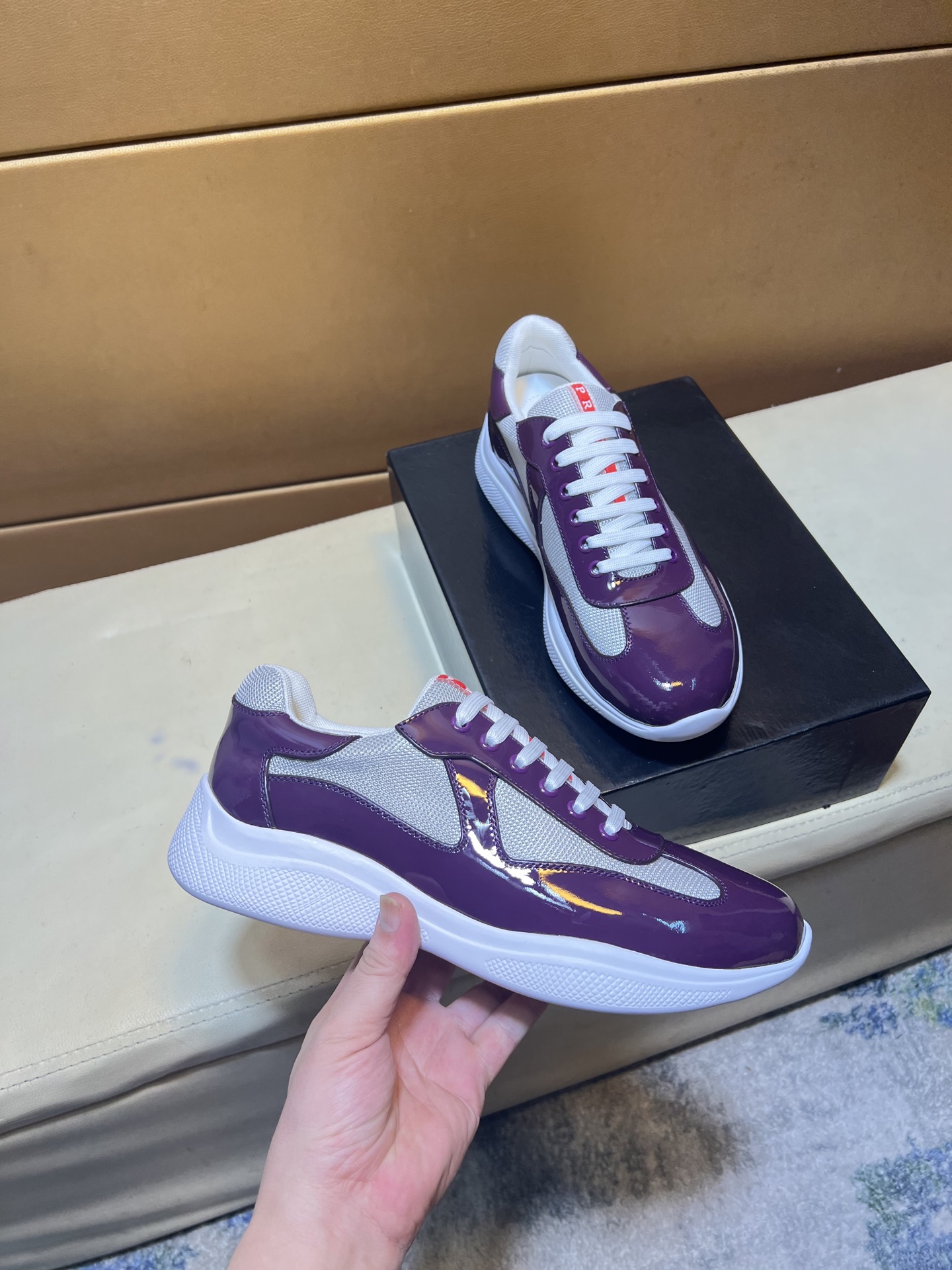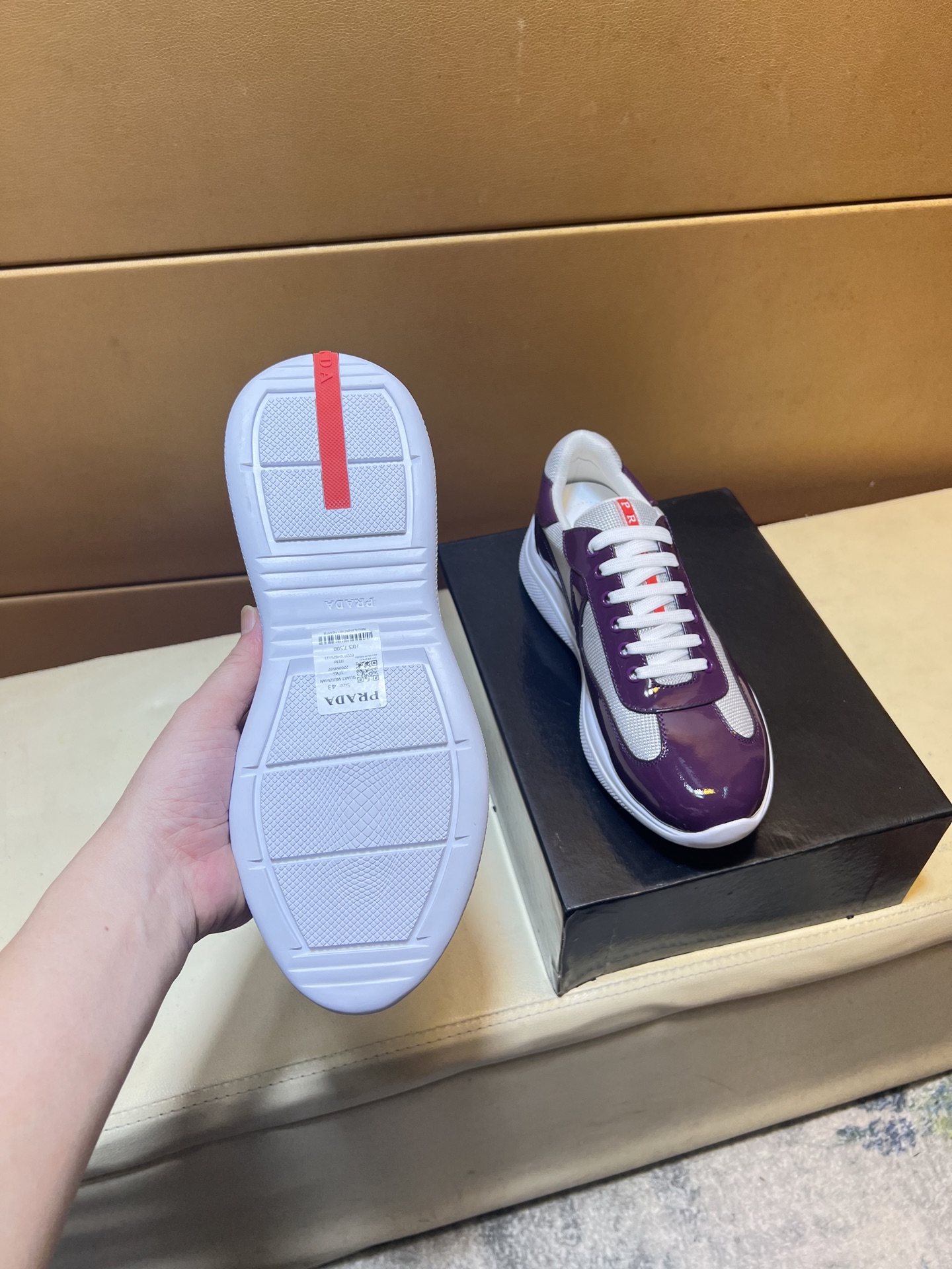这款鞋子是AAAAA 1:1 质量 (非常棒). 使用了和原版一模一样的材料. 商标部分也保持了和普拉达/Prada一样. 图片拍摄是实物鞋子拍摄, 您所收到的实物保证和我们图片一模一样.