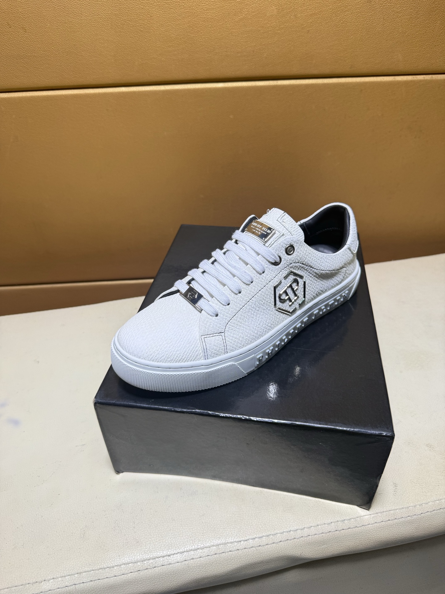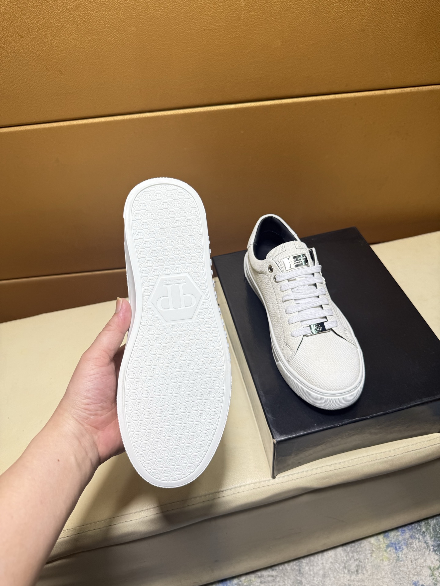 这款鞋子是AAAAA 1:1 质量 (非常棒). 使用了和原版一模一样的材料. 商标部分也保持了和菲利普·普林/Philipp Plein一样. 图片拍摄是实物鞋子拍摄, 您所收到的实物保证和我们图片一模一样.