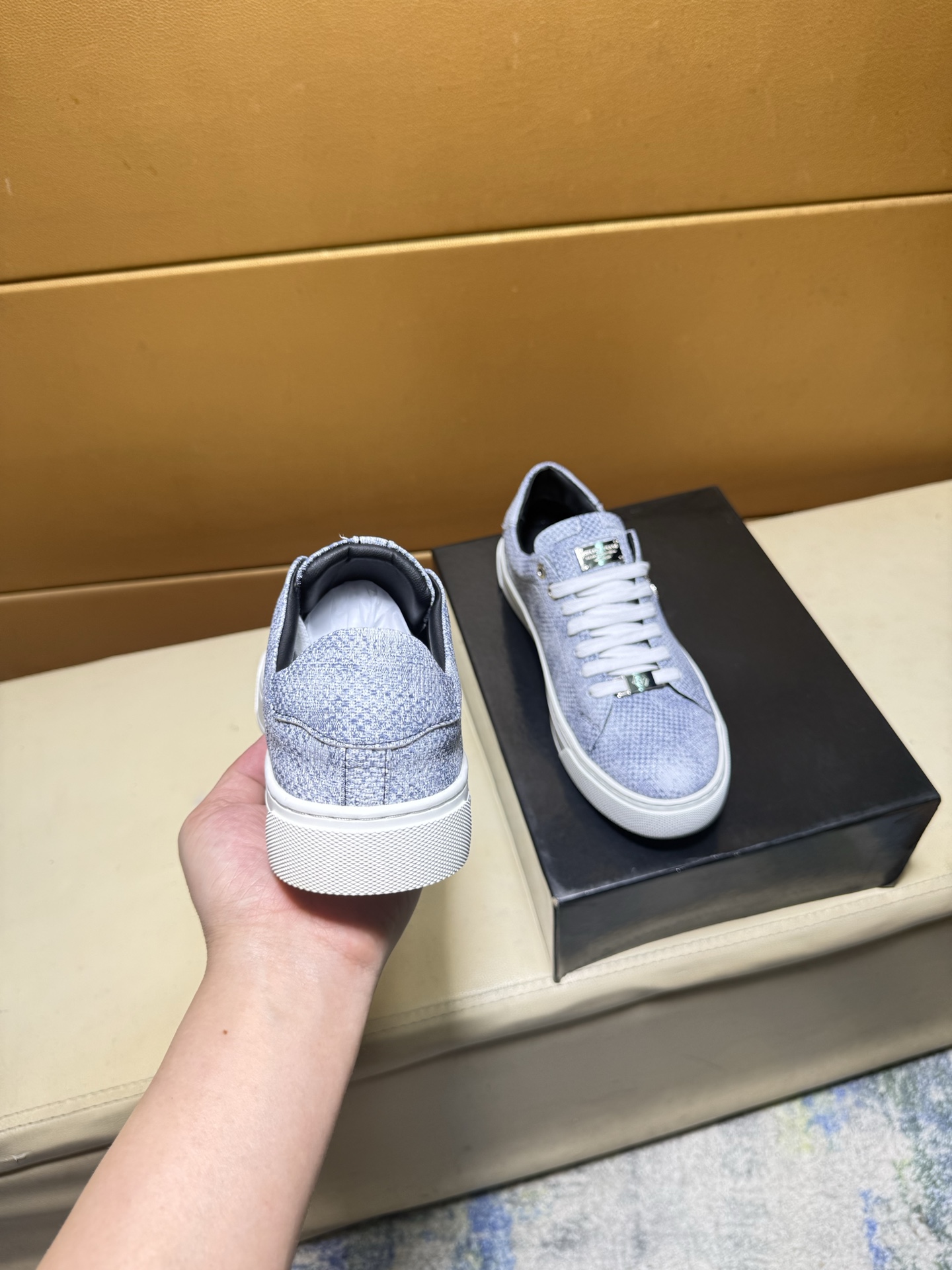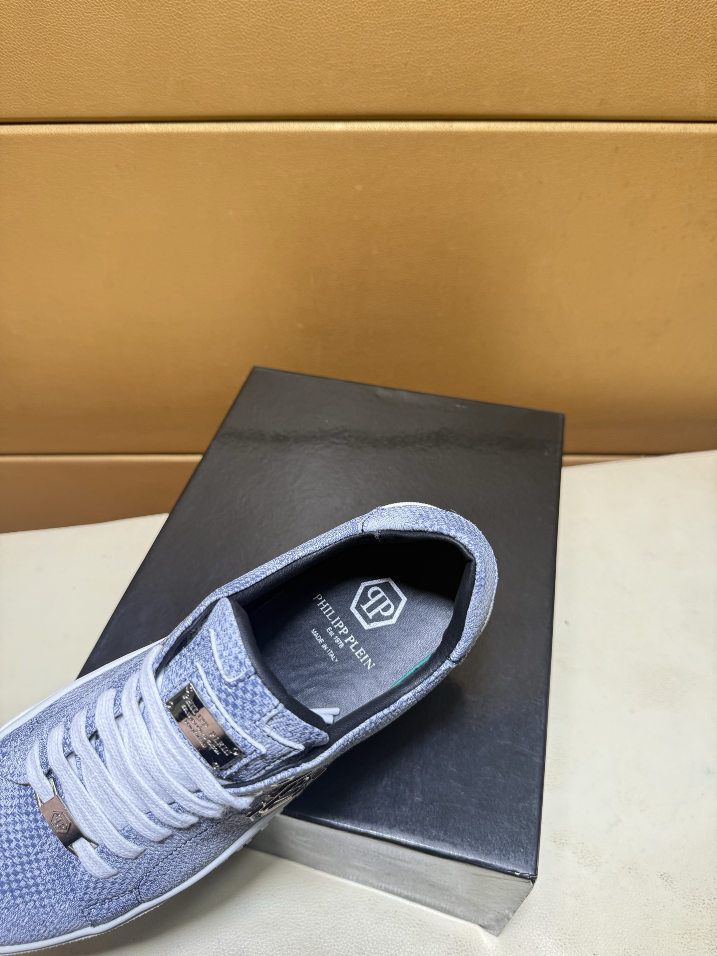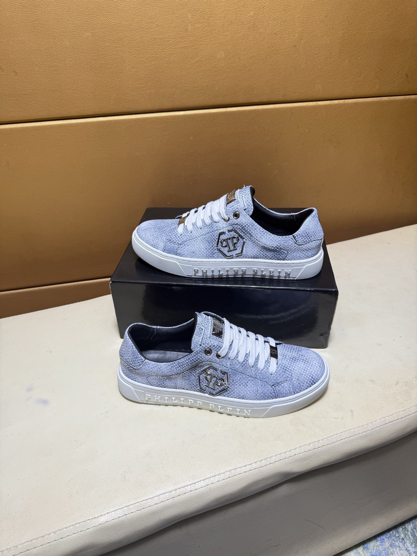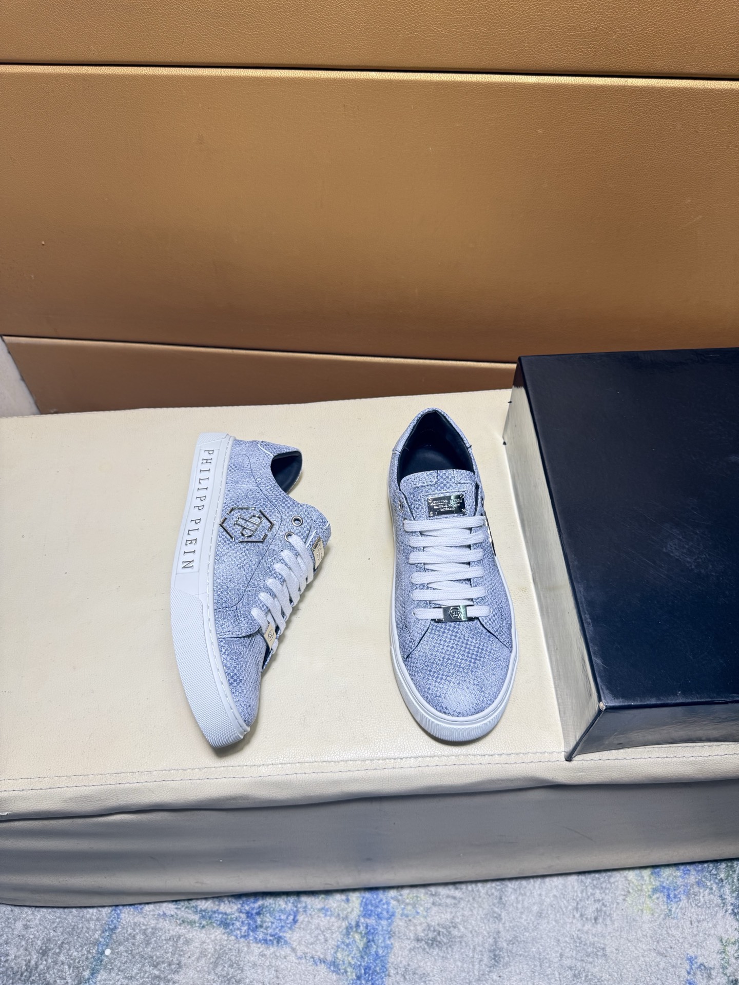 这款鞋子是AAAAA 1:1 质量 (非常棒). 使用了和原版一模一样的材料. 商标部分也保持了和菲利普·普林/Philipp Plein一样. 图片拍摄是实物鞋子拍摄, 您所收到的实物保证和我们图片一模一样.