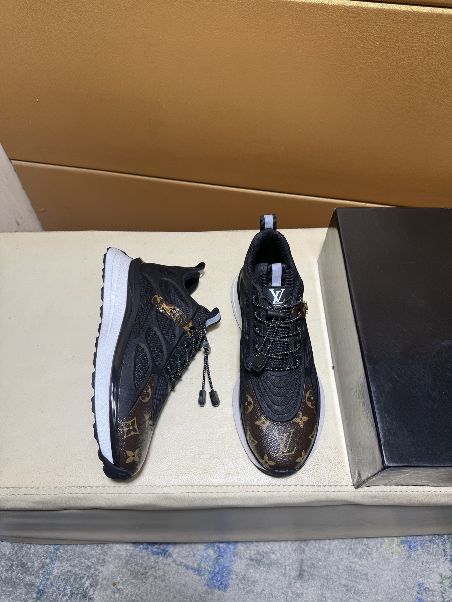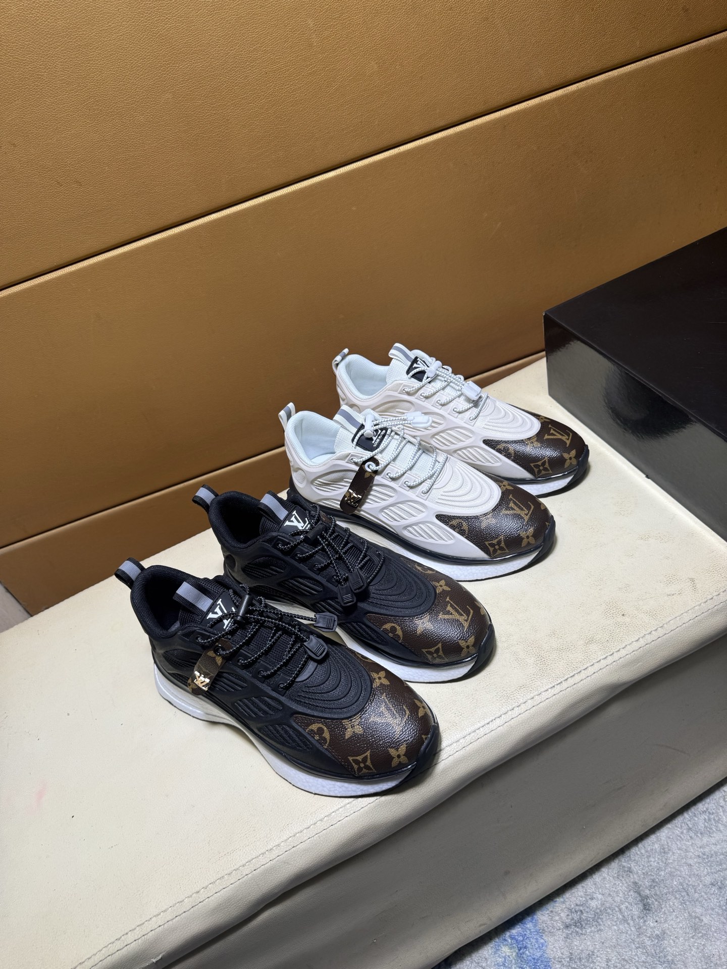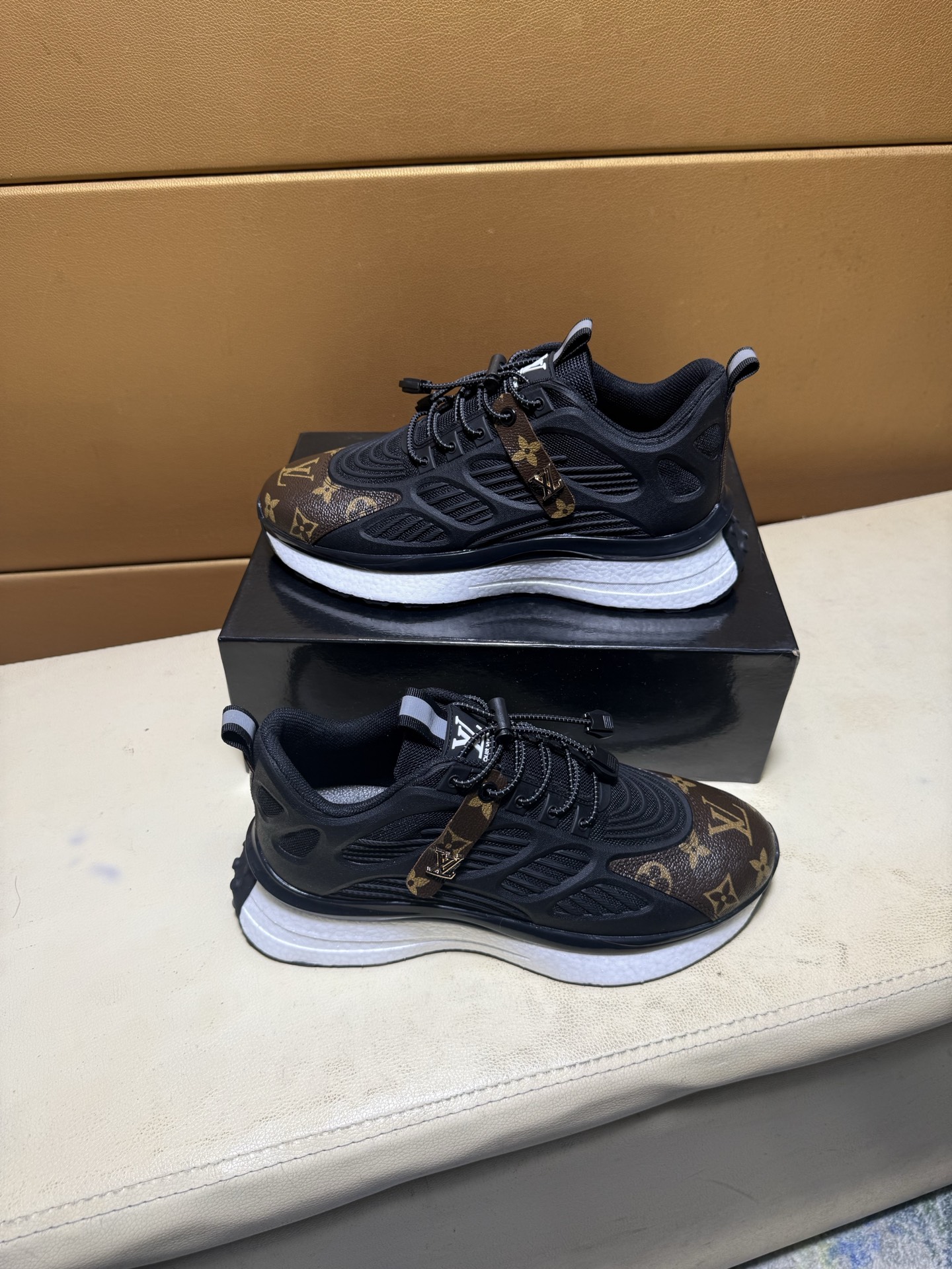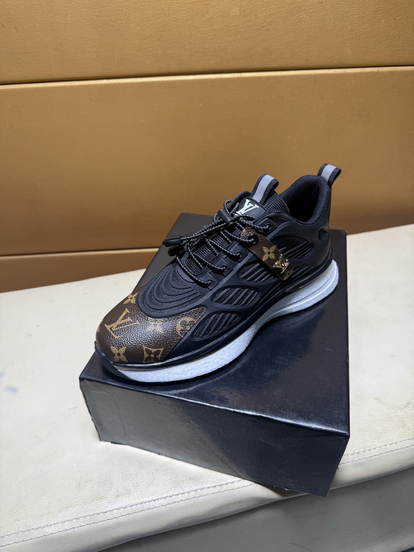 这款鞋子是AAAAA 1:1 质量 (非常棒). 使用了和原版一模一样的材料. 商标部分也保持了和路易威登/Louis Vuitton一样. 图片拍摄是实物鞋子拍摄, 您所收到的实物保证和我们图片一模一样.