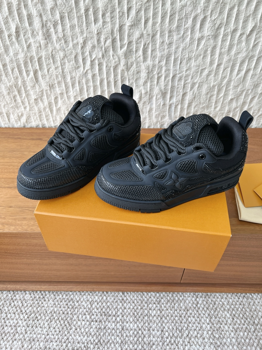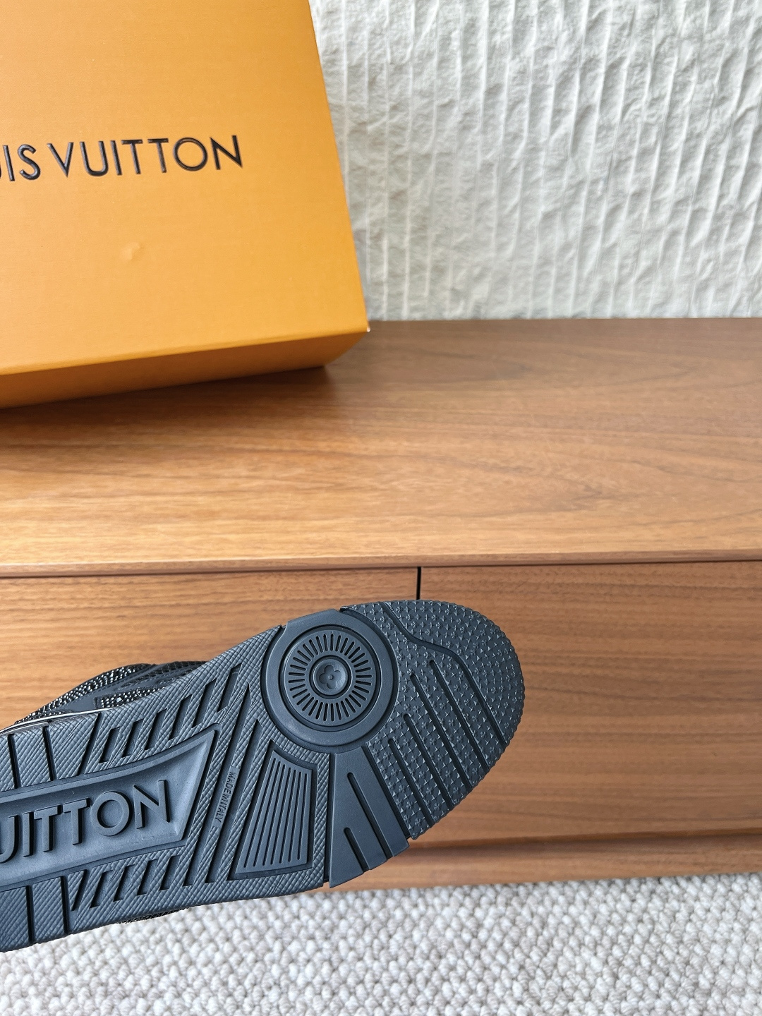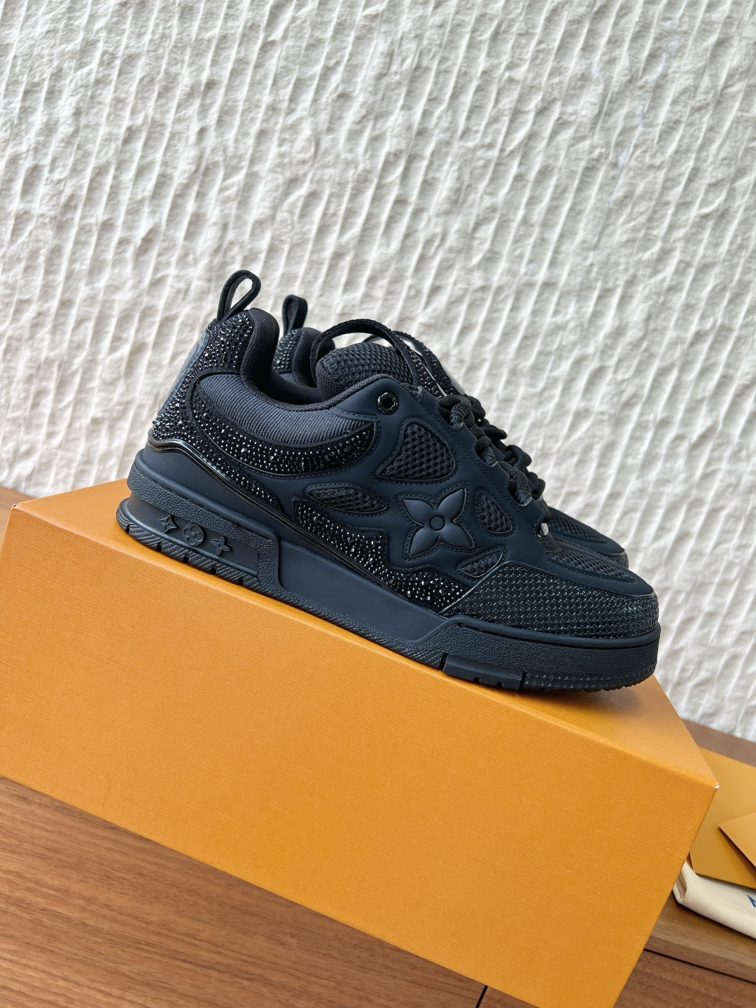 这款鞋子是AAAAA 1:1 质量 (非常棒). 使用了和原版一模一样的材料. 商标部分也保持了和路易威登/Louis Vuitton一样. 图片拍摄是实物鞋子拍摄, 您所收到的实物保证和我们图片一模一样.