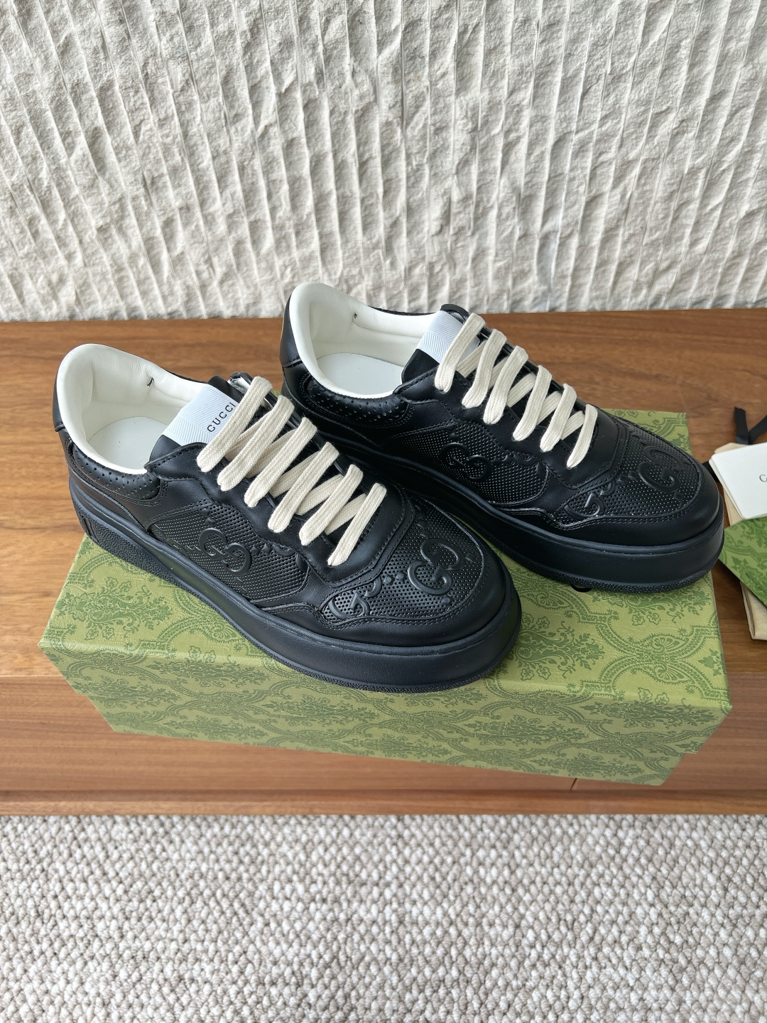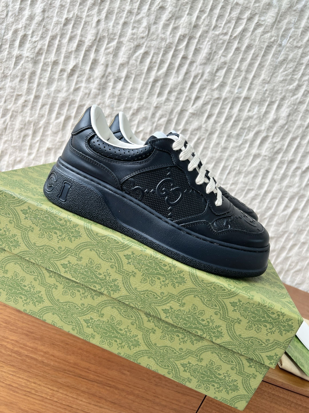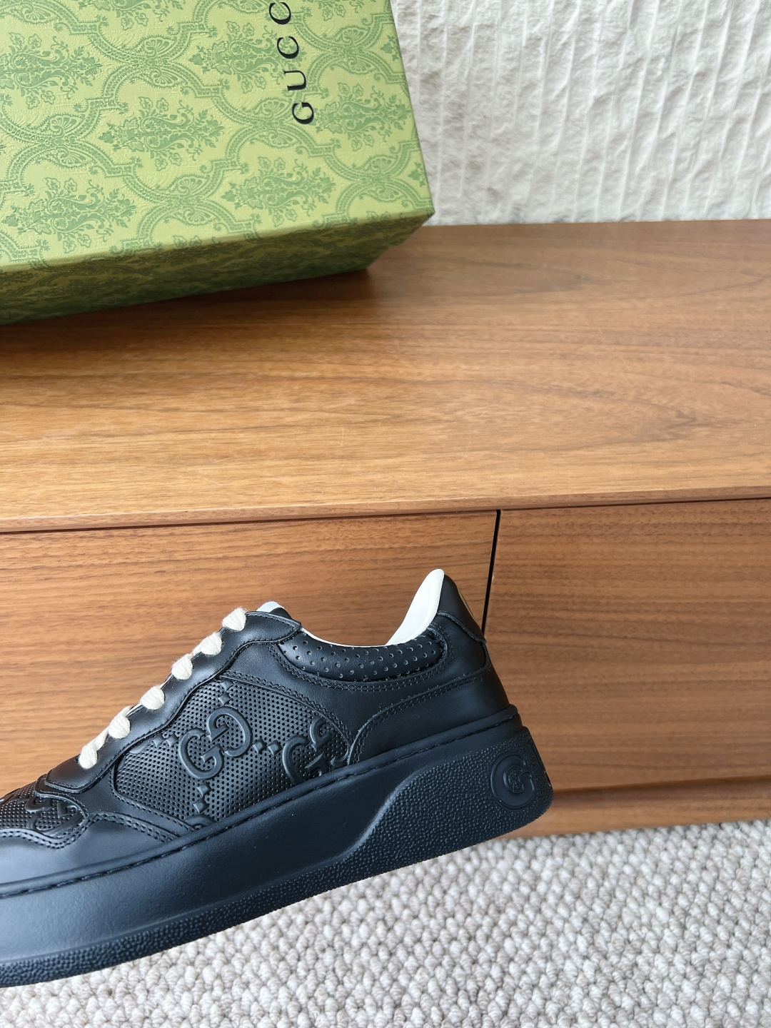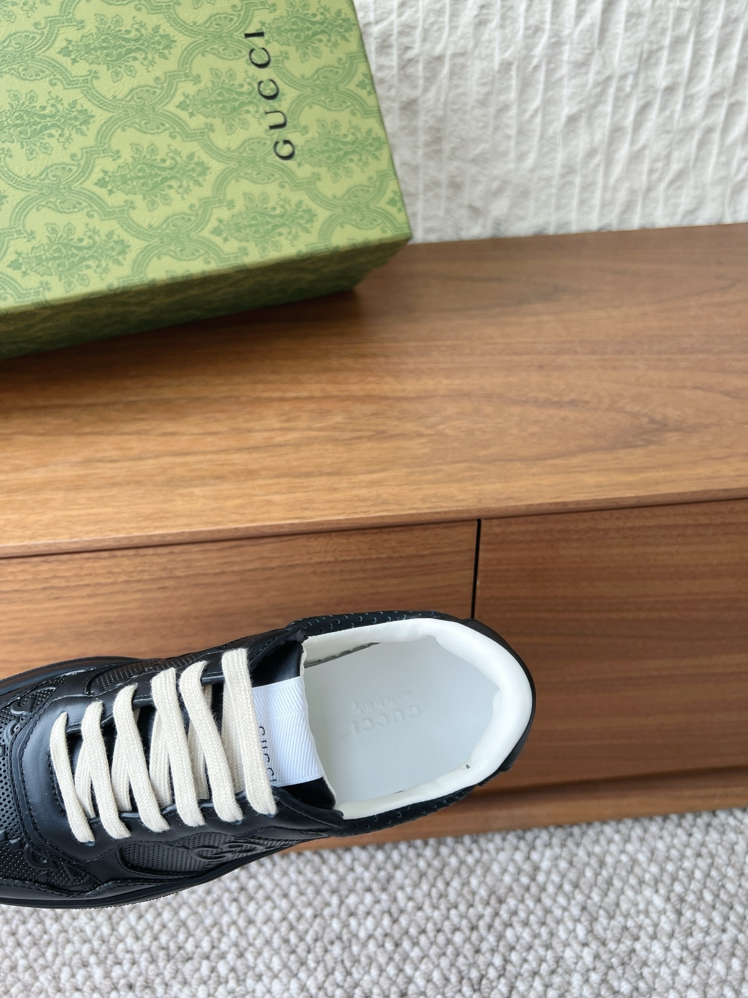 这款鞋子是AAAAA 1:1 质量 (非常棒). 使用了和原版一模一样的材料. 商标部分也保持了和古奇/Gucci一样. 图片拍摄是实物鞋子拍摄, 您所收到的实物保证和我们图片一模一样.