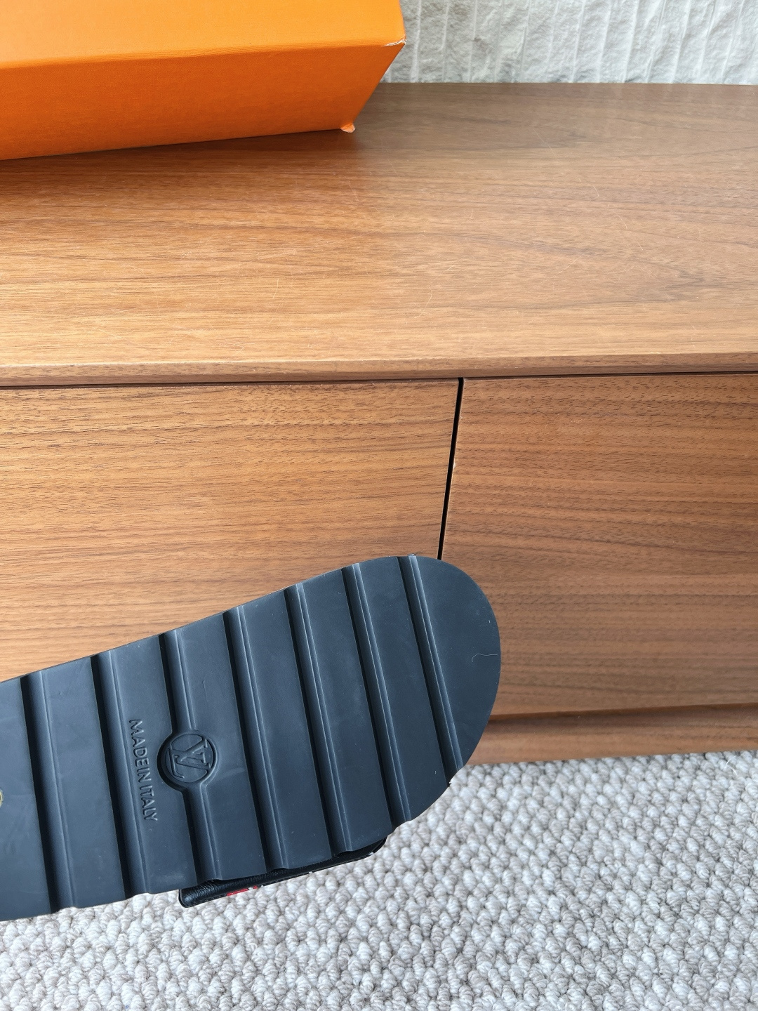 这款鞋子是AAAAA 1:1 质量 (非常棒). 使用了和原版一模一样的材料. 商标部分也保持了和路易威登/Louis Vuitton一样. 图片拍摄是实物鞋子拍摄, 您所收到的实物保证和我们图片一模一样.