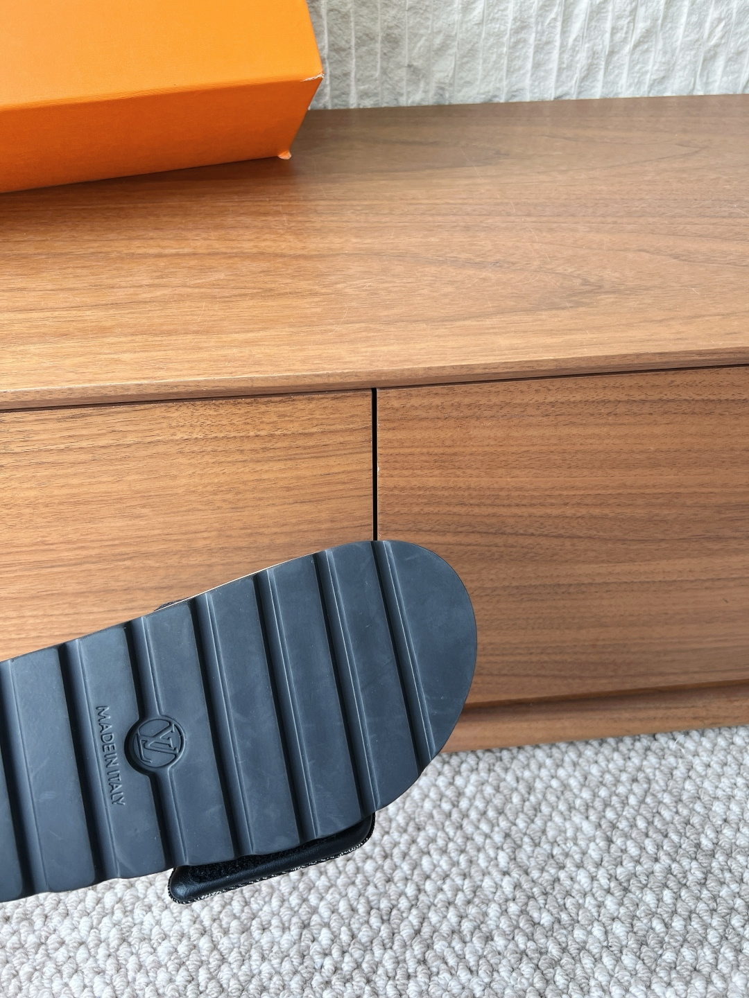 这款鞋子是AAAAA 1:1 质量 (非常棒). 使用了和原版一模一样的材料. 商标部分也保持了和路易威登/Louis Vuitton一样. 图片拍摄是实物鞋子拍摄, 您所收到的实物保证和我们图片一模一样.