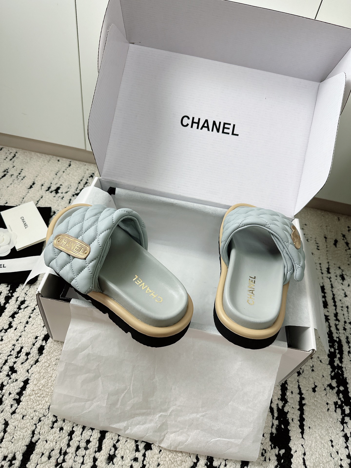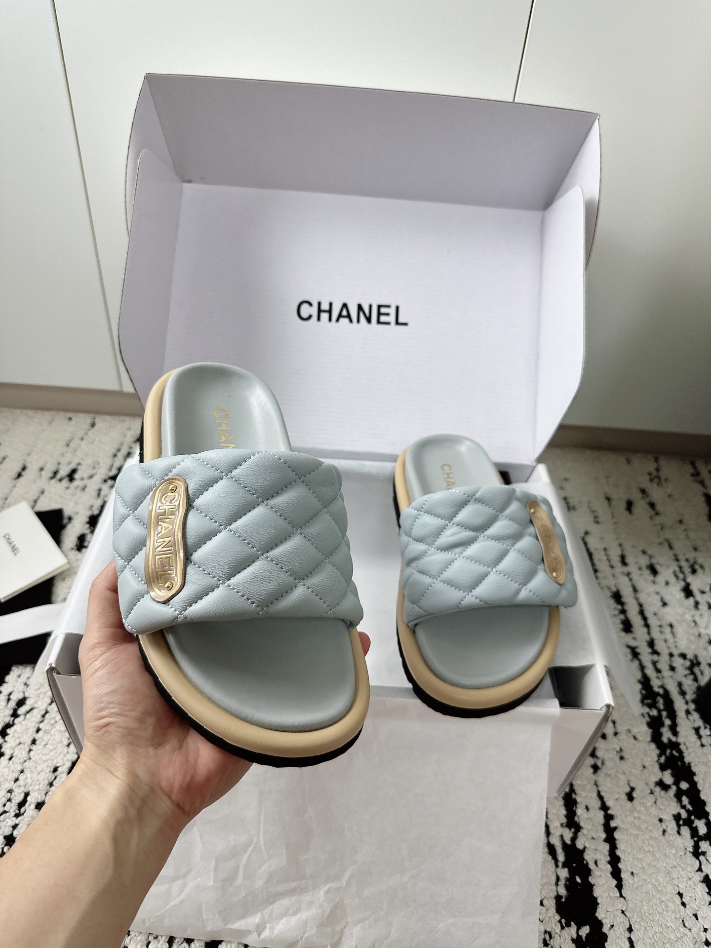 这款鞋子是AAAAA 1:1 质量 (非常棒). 使用了和原版一模一样的材料. 商标部分也保持了和香奈儿/Chanel一样. 图片拍摄是实物鞋子拍摄, 您所收到的实物保证和我们图片一模一样.