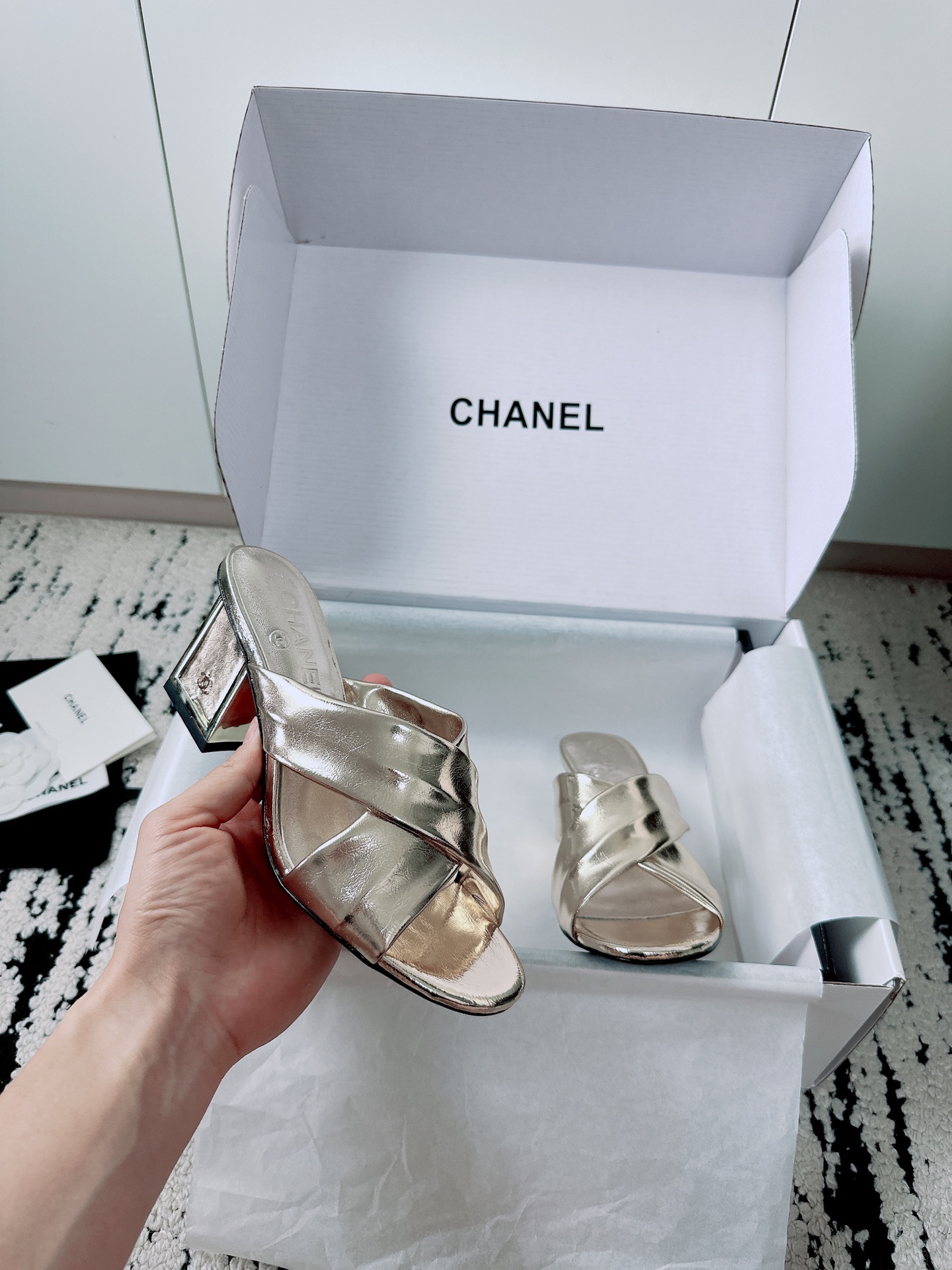 这款鞋子是AAAAA 1:1 质量 (非常棒). 使用了和原版一模一样的材料. 商标部分也保持了和香奈儿/Chanel一样. 图片拍摄是实物鞋子拍摄, 您所收到的实物保证和我们图片一模一样.