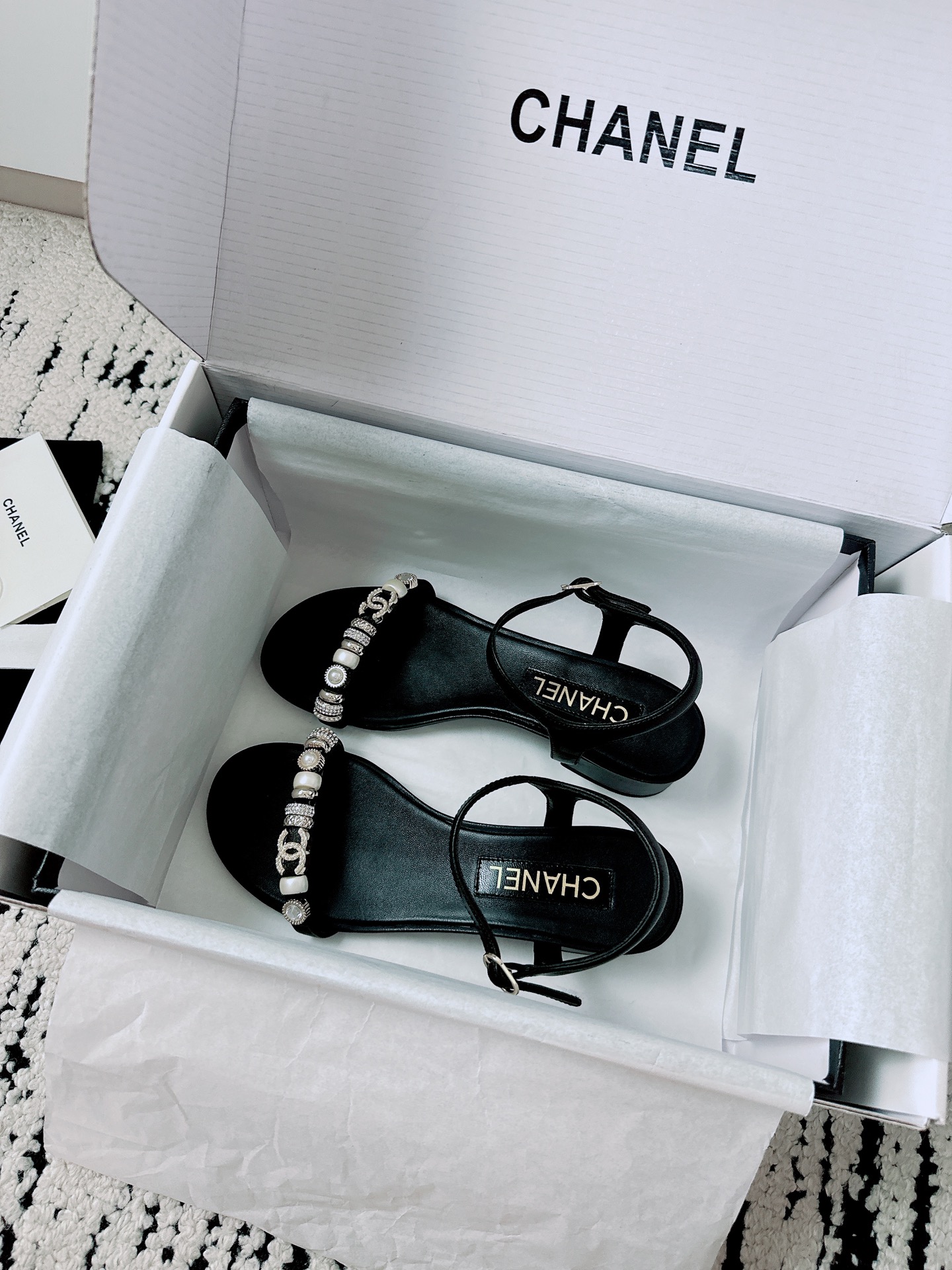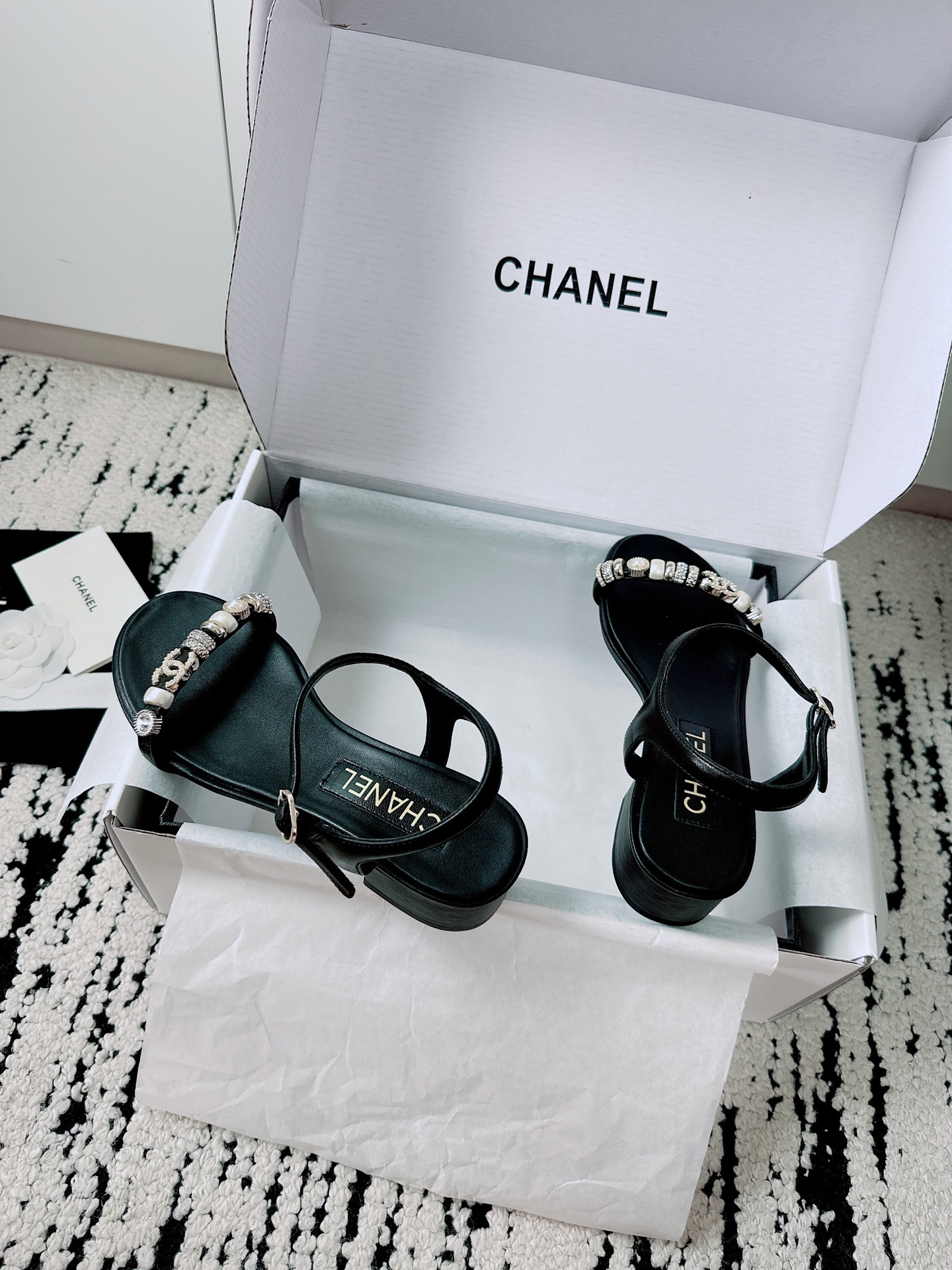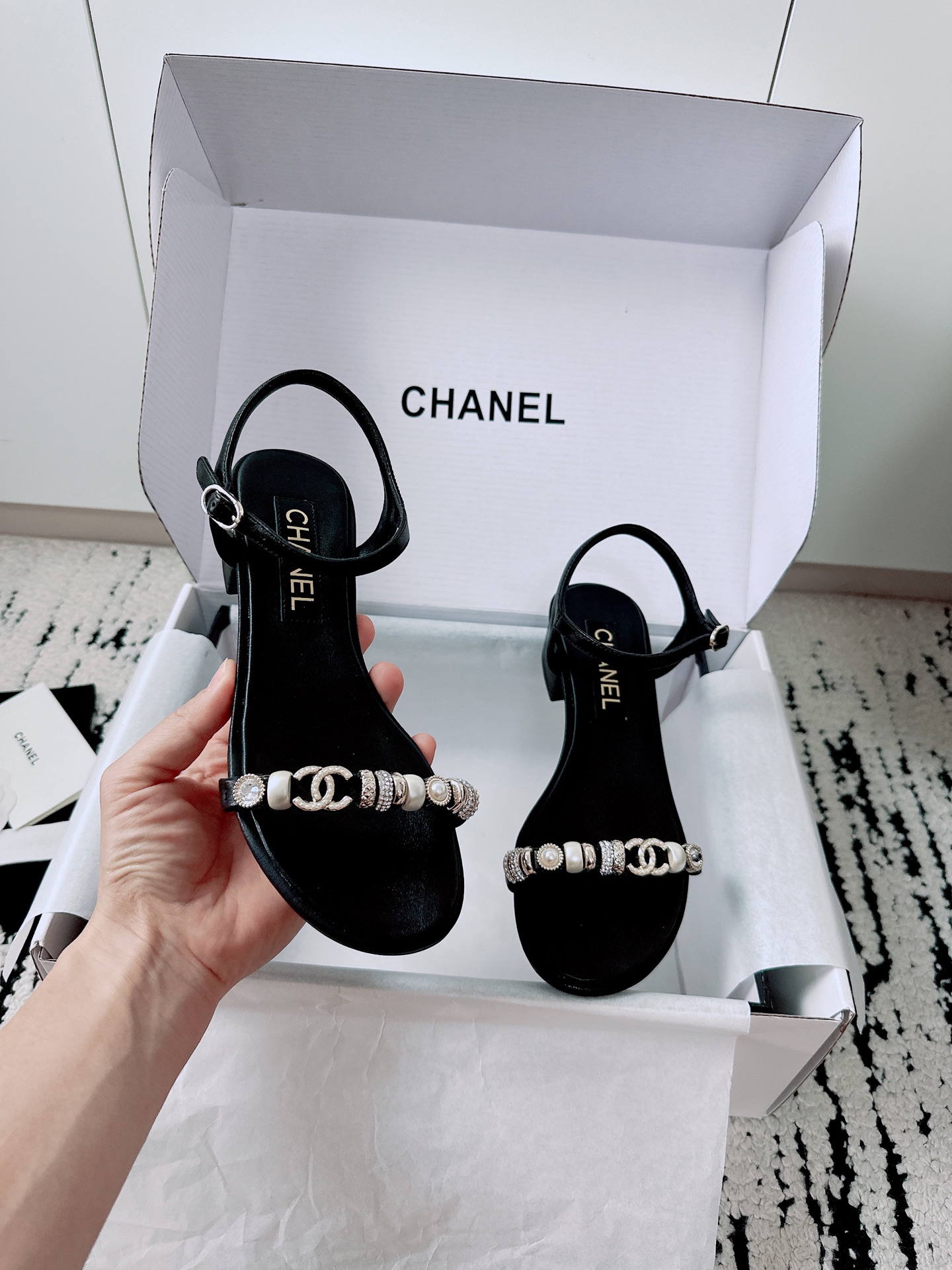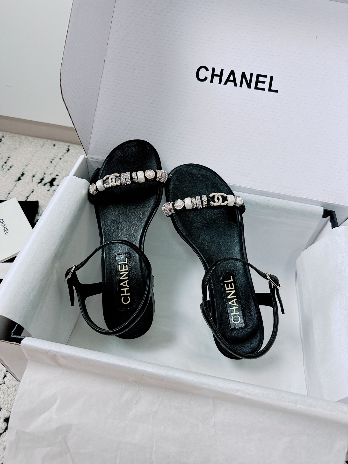这款鞋子是AAAAA 1:1 质量 (非常棒). 使用了和原版一模一样的材料. 商标部分也保持了和香奈儿/Chanel一样. 图片拍摄是实物鞋子拍摄, 您所收到的实物保证和我们图片一模一样.
