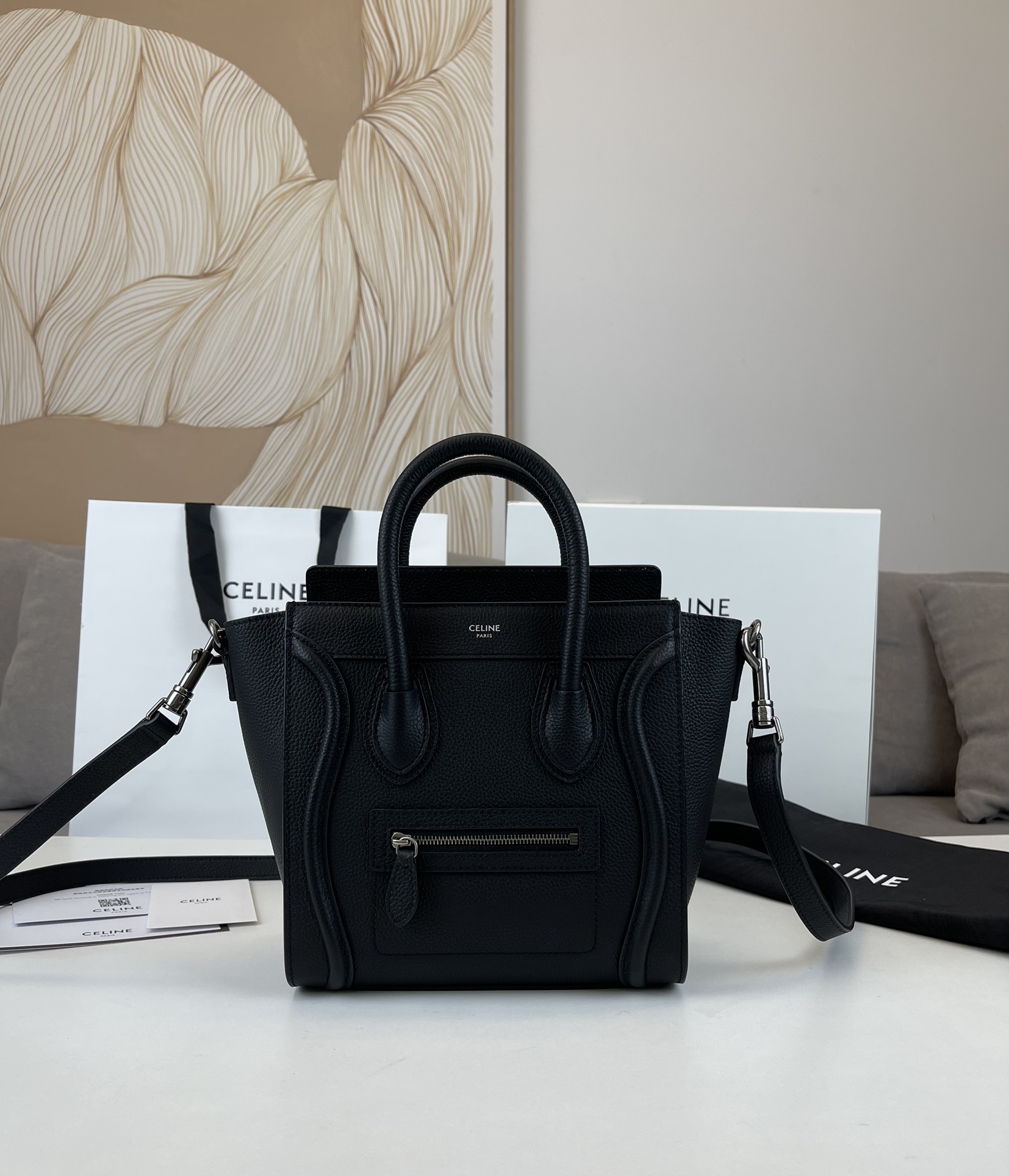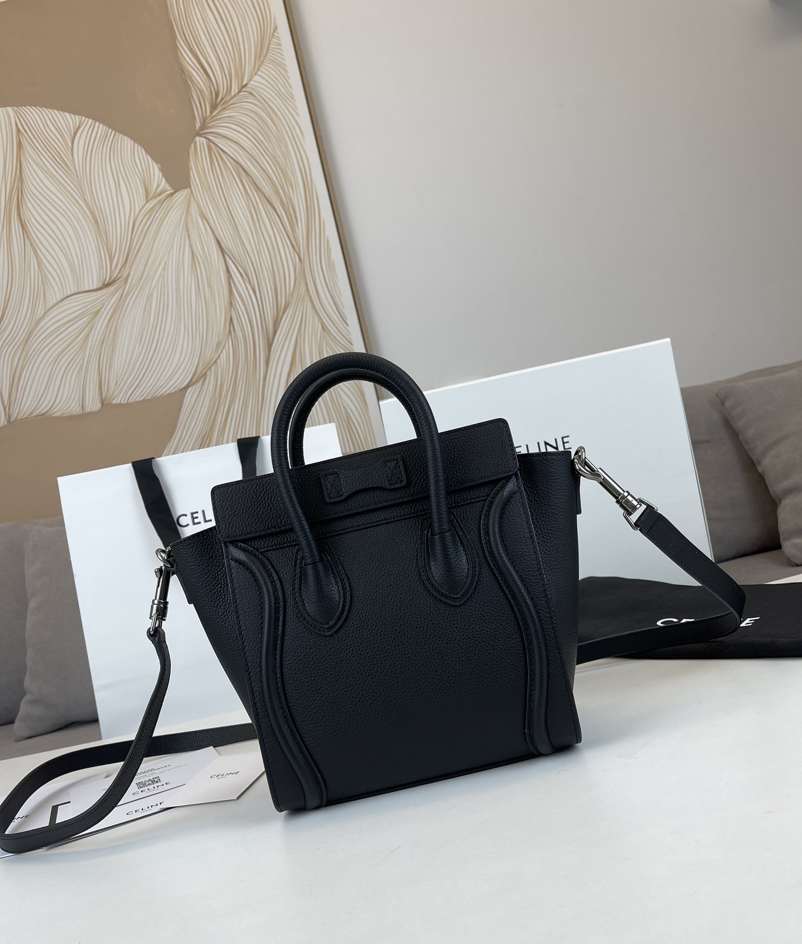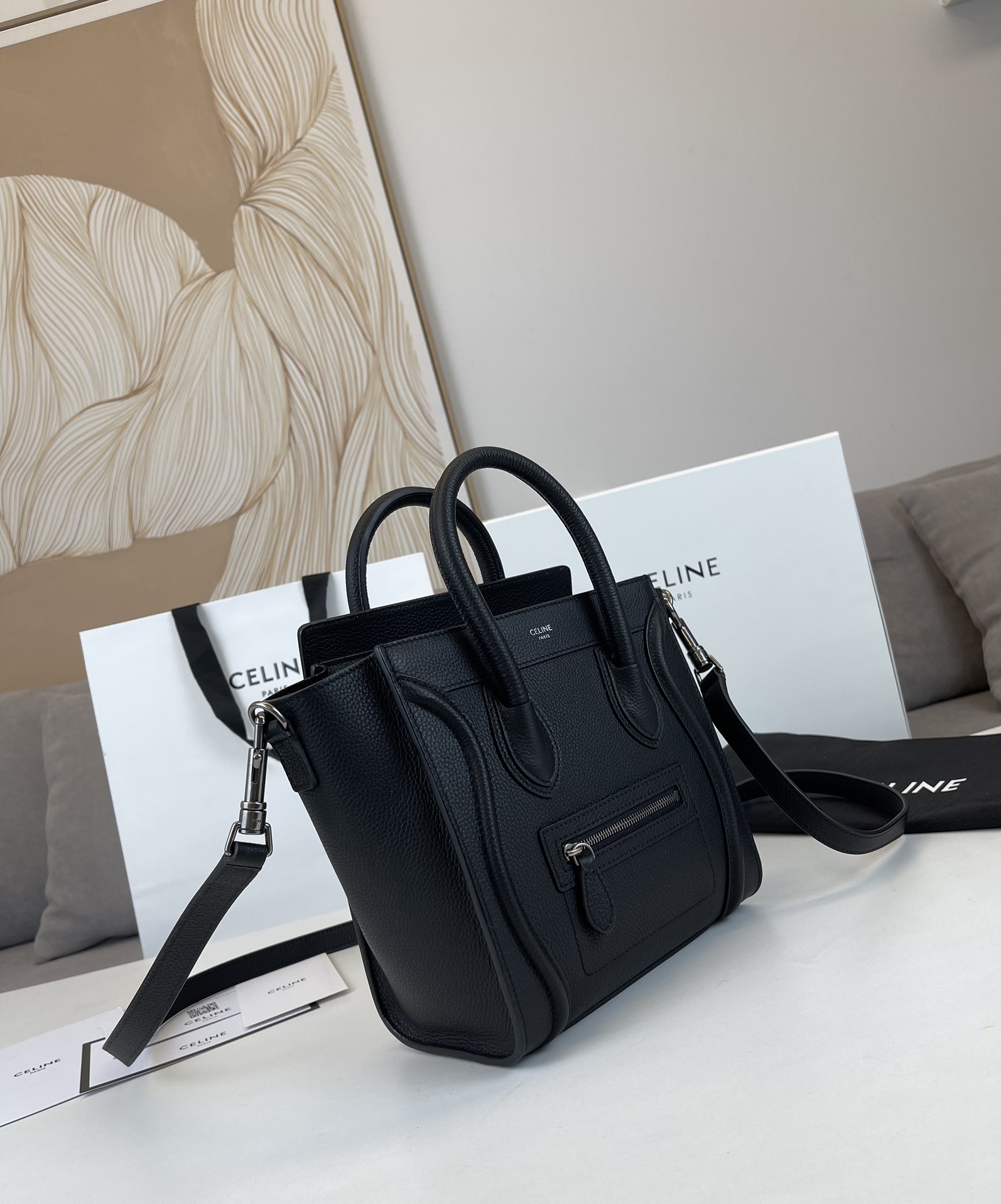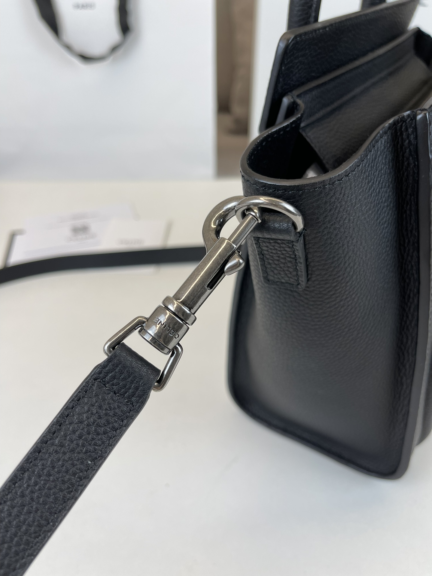 这款包包是AAAAA 1:1 质量 (非常棒). 使用了和原版一模一样的材料. 商标部分也保持了和思琳/Celine一样. 图片拍摄是实物包包拍摄, 您所收到的实物保证和我们图片一模一样.