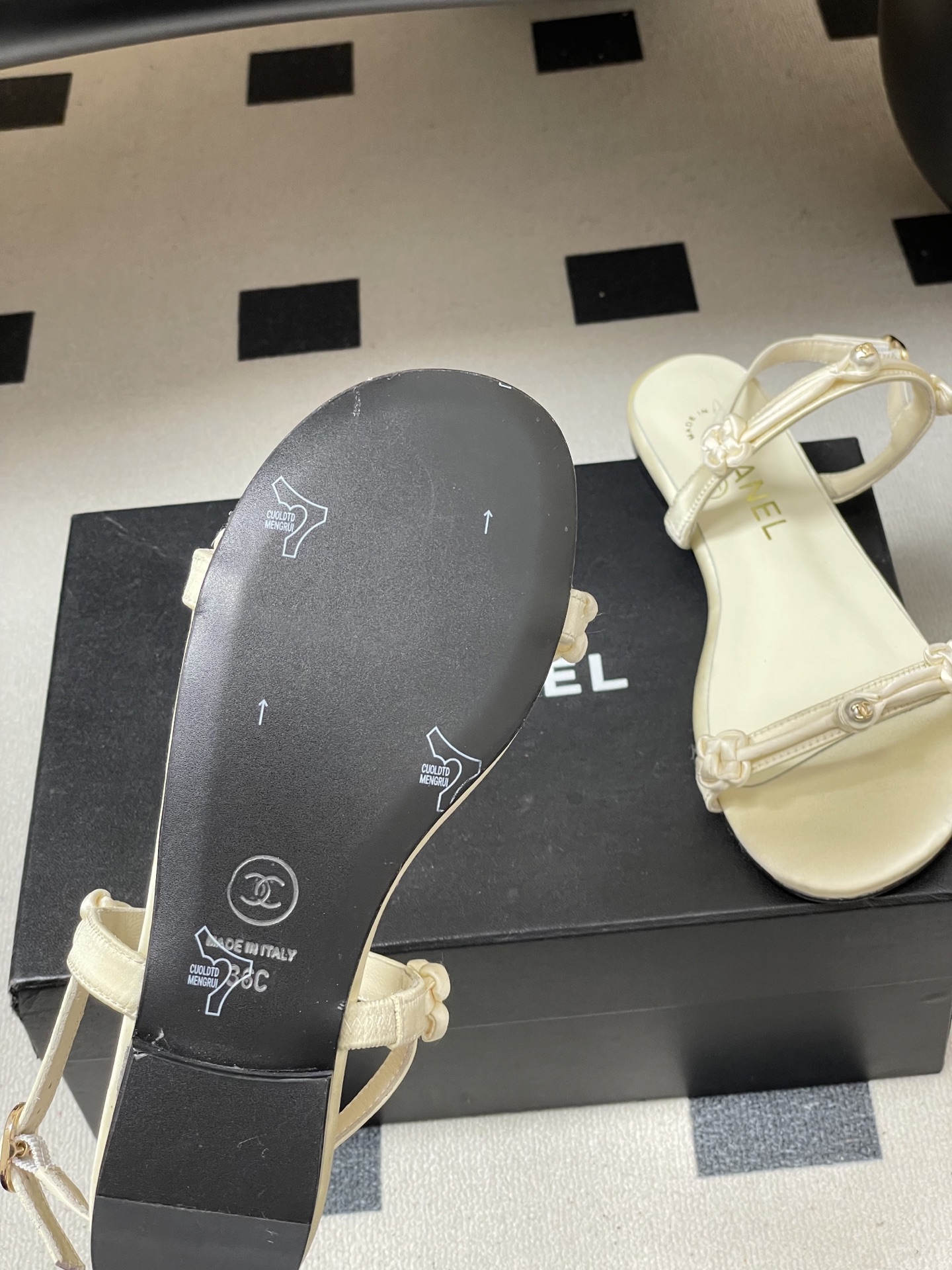 这款鞋子是AAAAA 1:1 质量 (非常棒). 使用了和原版一模一样的材料. 商标部分也保持了和香奈儿/Chanel一样. 图片拍摄是实物鞋子拍摄, 您所收到的实物保证和我们图片一模一样.