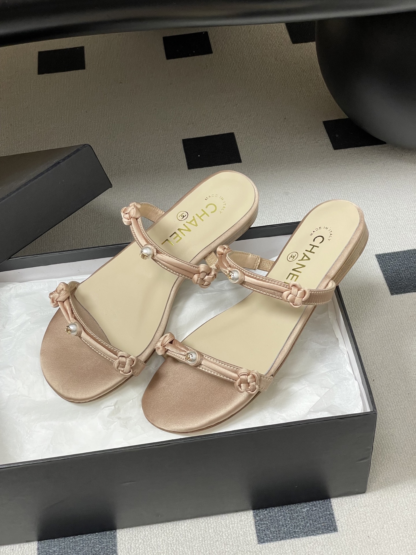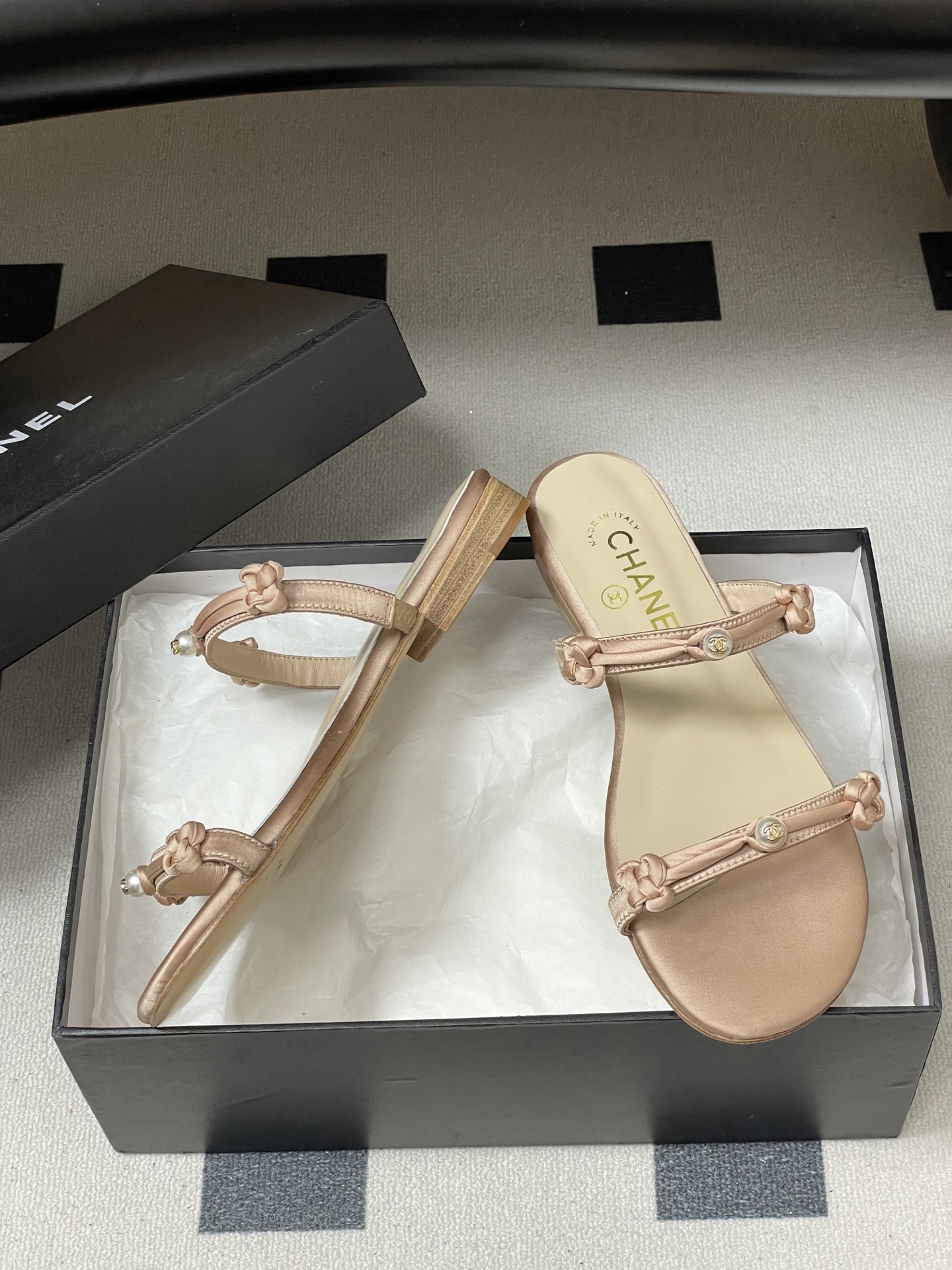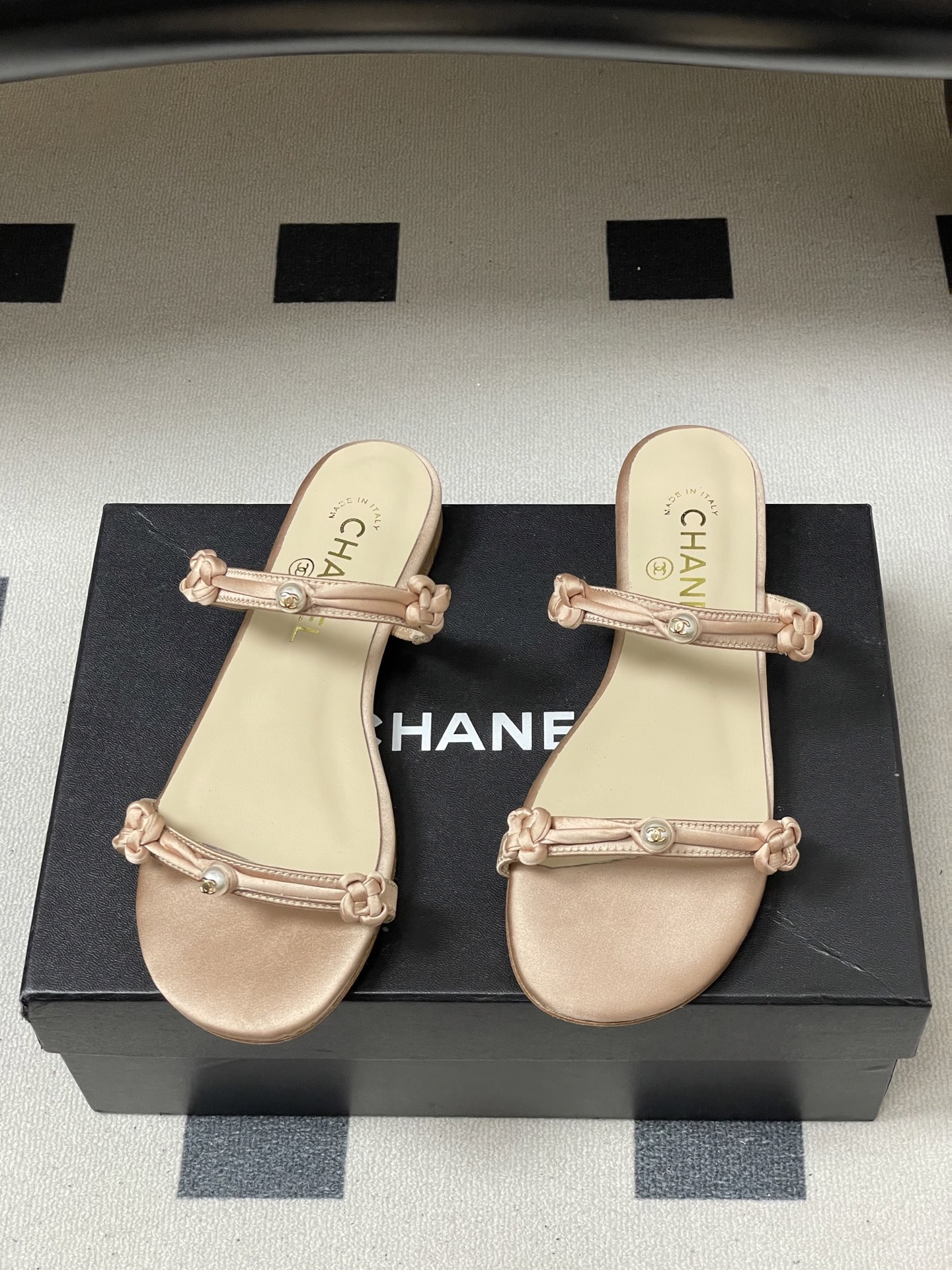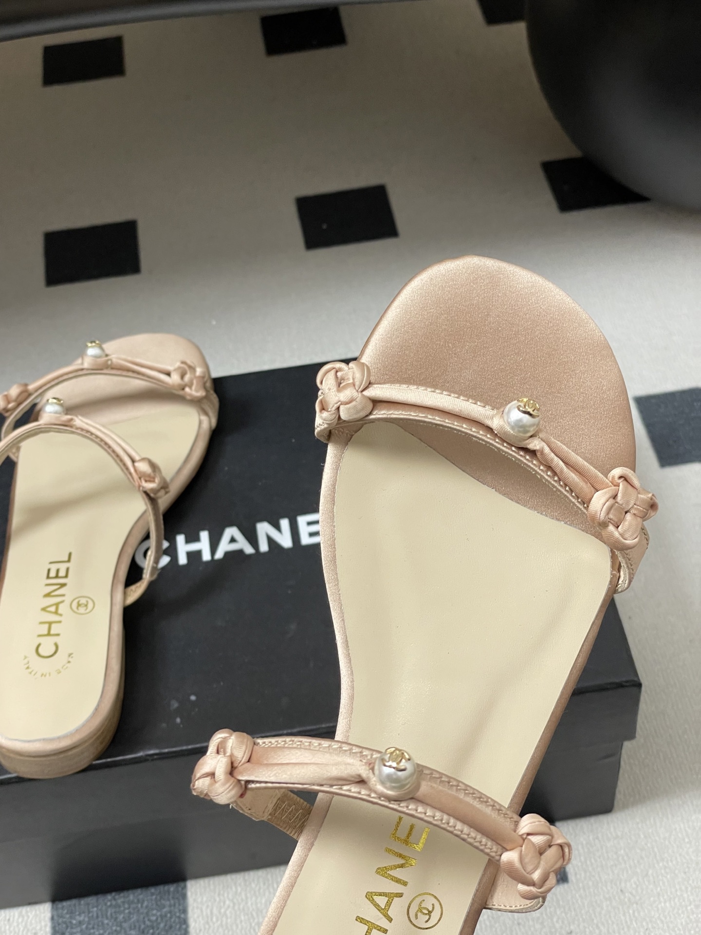 这款鞋子是AAAAA 1:1 质量 (非常棒). 使用了和原版一模一样的材料. 商标部分也保持了和香奈儿/Chanel一样. 图片拍摄是实物鞋子拍摄, 您所收到的实物保证和我们图片一模一样.