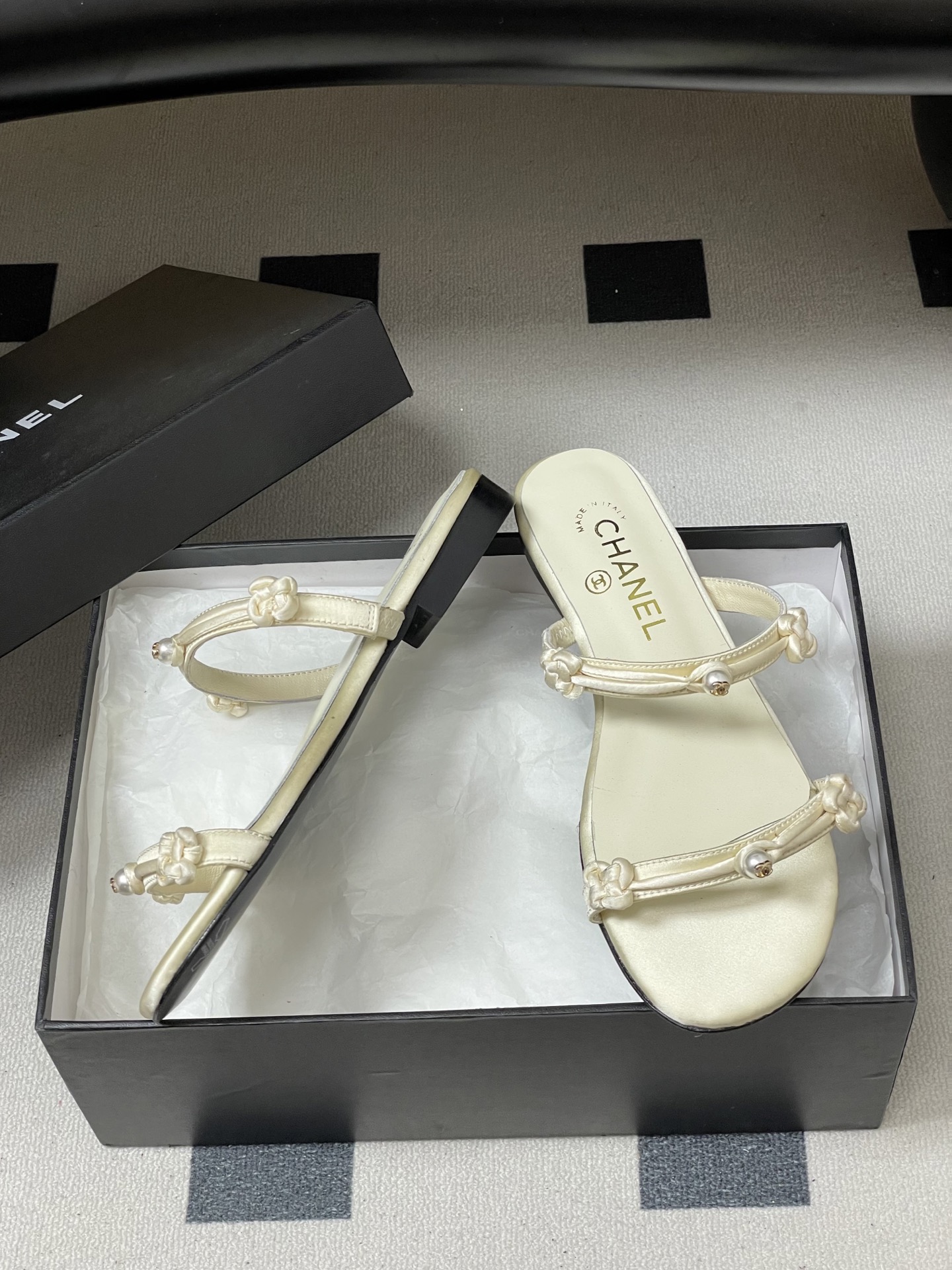 这款鞋子是AAAAA 1:1 质量 (非常棒). 使用了和原版一模一样的材料. 商标部分也保持了和香奈儿/Chanel一样. 图片拍摄是实物鞋子拍摄, 您所收到的实物保证和我们图片一模一样.
