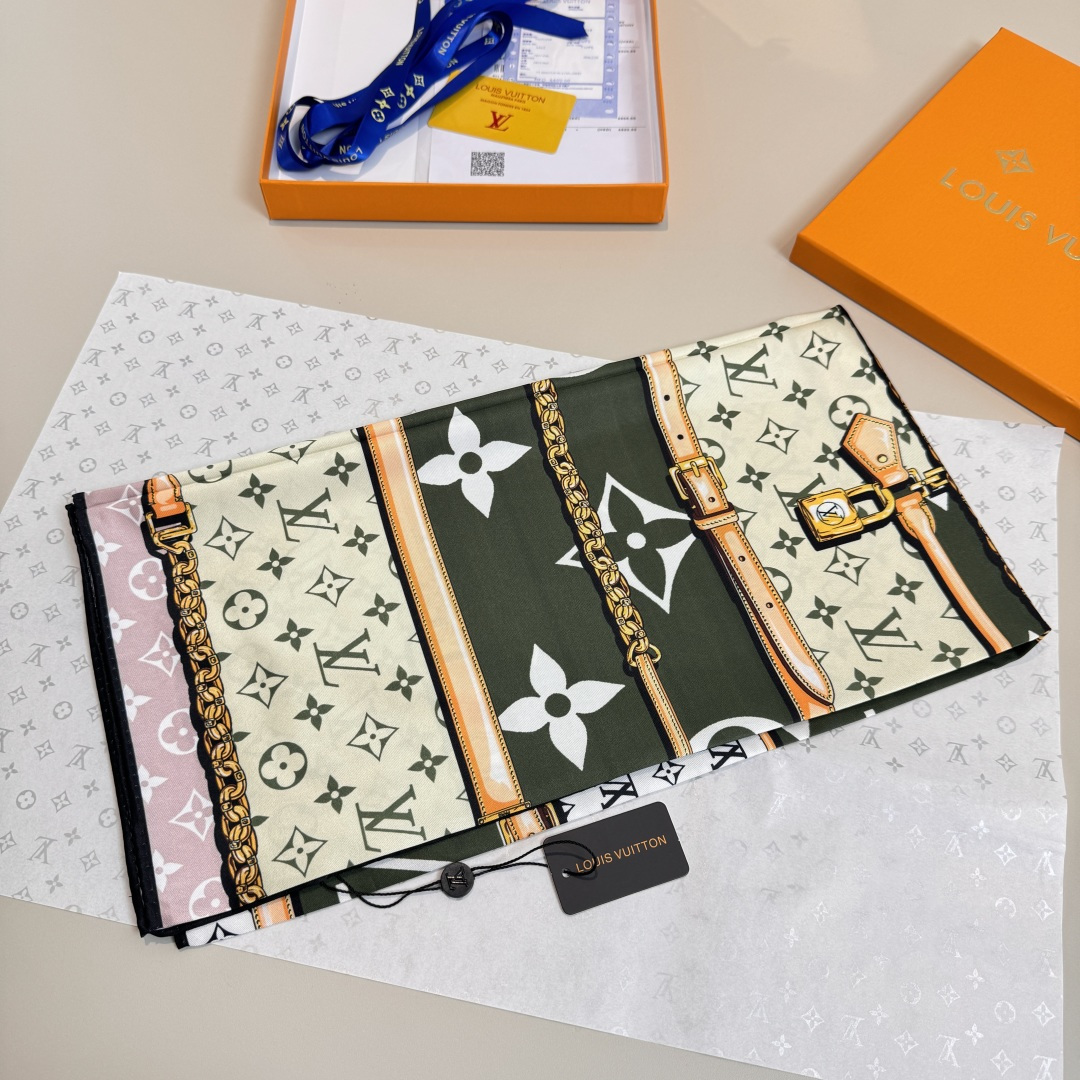 这款围巾是AAAAA 1:1 质量 (非常棒). 使用了和原版一模一样的材料. 商标部分也保持了和路易威登/Louis Vuitton一样. 图片拍摄是实物围巾拍摄, 您所收到的实物保证和我们图片一模一样.