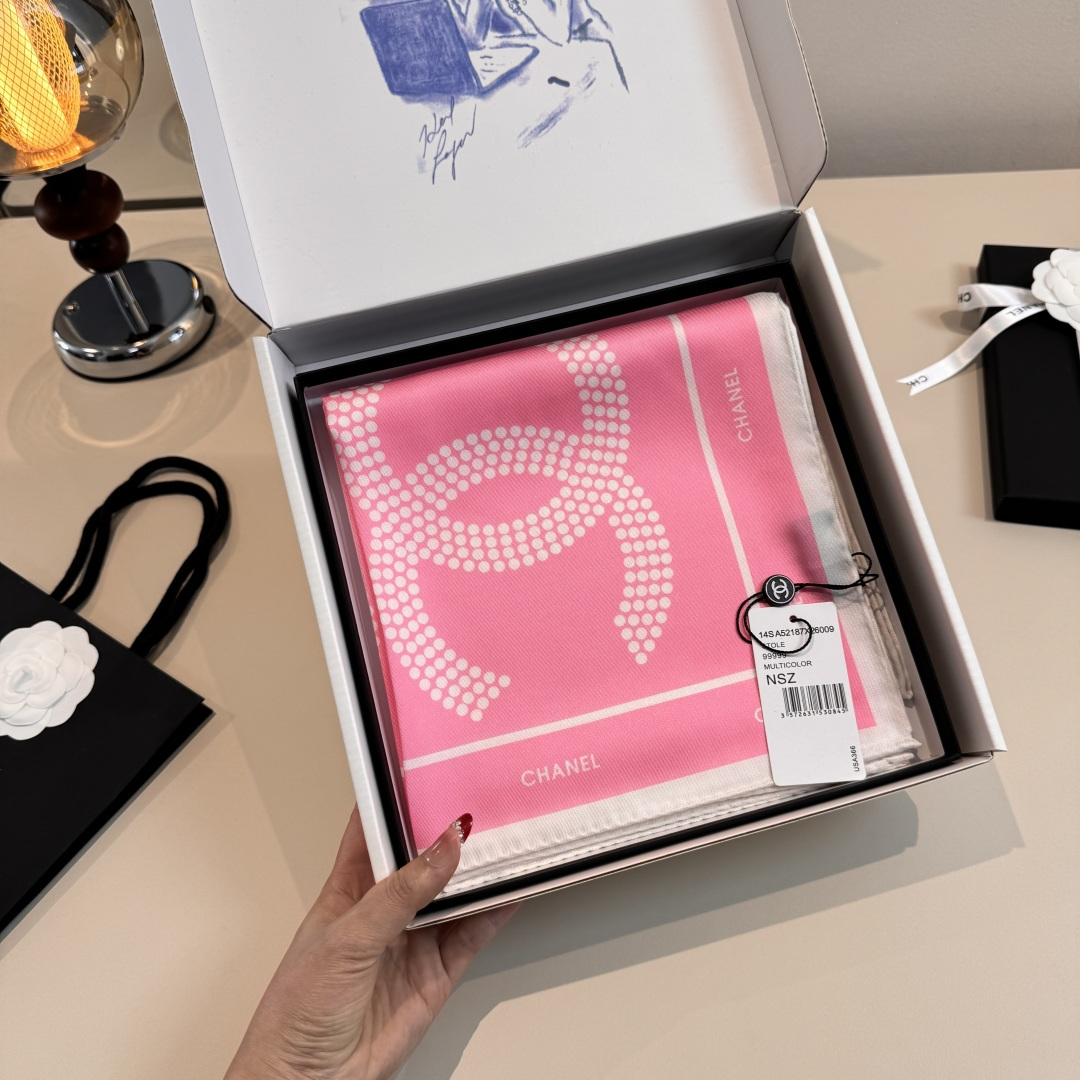这款围巾是AAAAA 1:1 质量 (非常棒). 使用了和原版一模一样的材料. 商标部分也保持了和香奈儿/Chanel一样. 图片拍摄是实物围巾拍摄, 您所收到的实物保证和我们图片一模一样.
