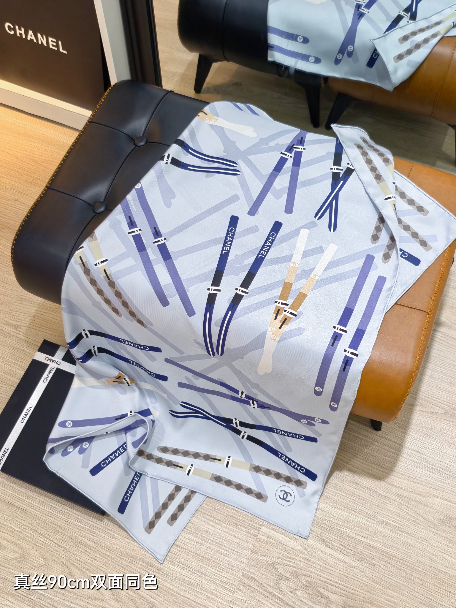 这款围巾是AAAAA 1:1 质量 (非常棒). 使用了和原版一模一样的材料. 商标部分也保持了和香奈儿/Chanel一样. 图片拍摄是实物围巾拍摄, 您所收到的实物保证和我们图片一模一样.
