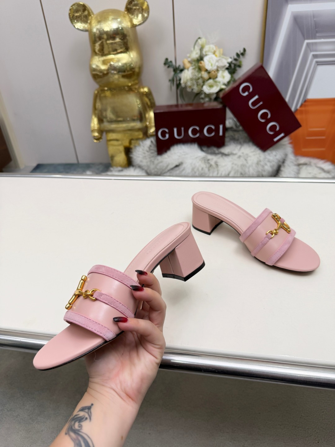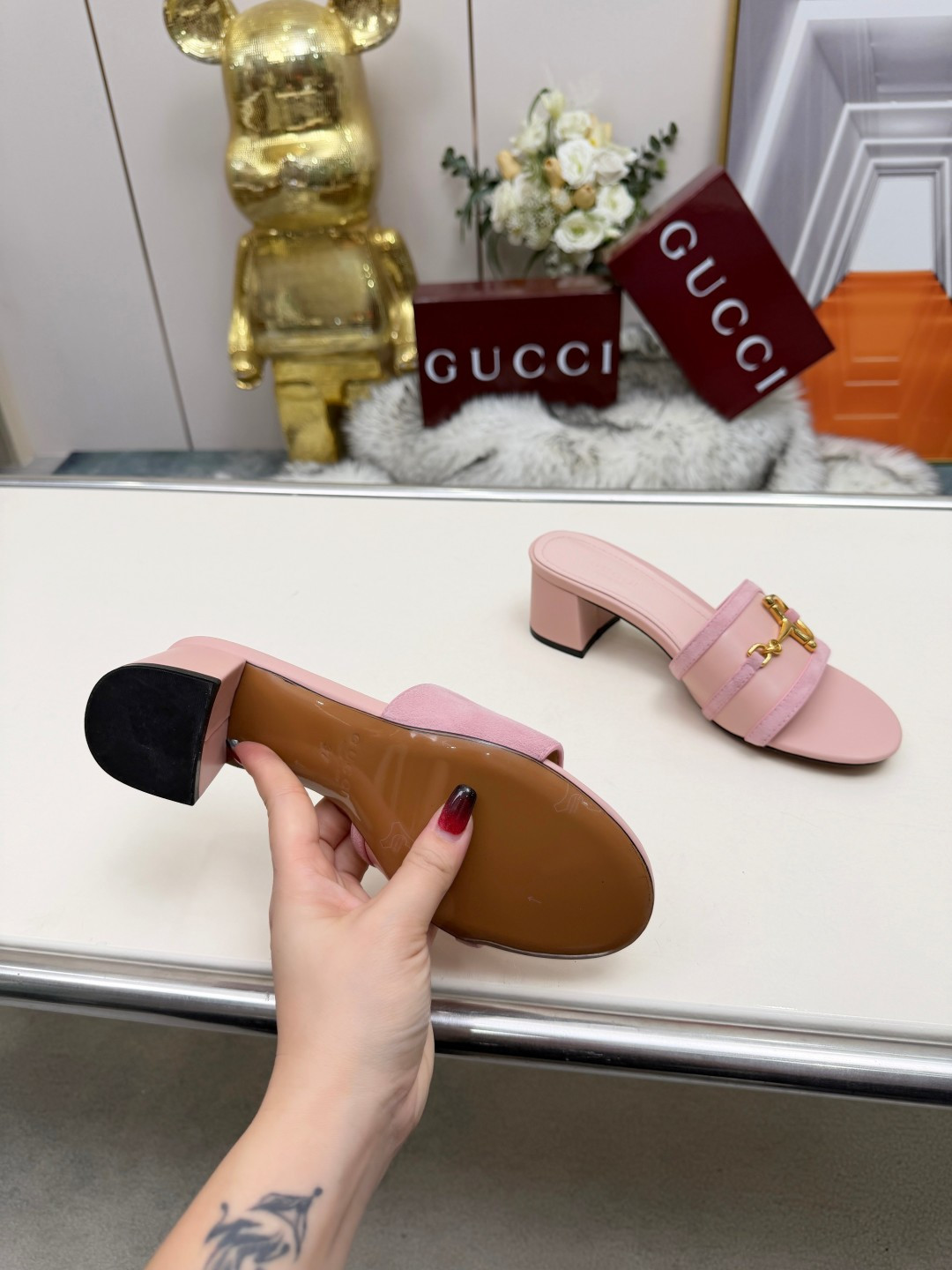 这款鞋子是AAAAA 1:1 质量 (非常棒). 使用了和原版一模一样的材料. 商标部分也保持了和古奇/Gucci一样. 图片拍摄是实物鞋子拍摄, 您所收到的实物保证和我们图片一模一样.