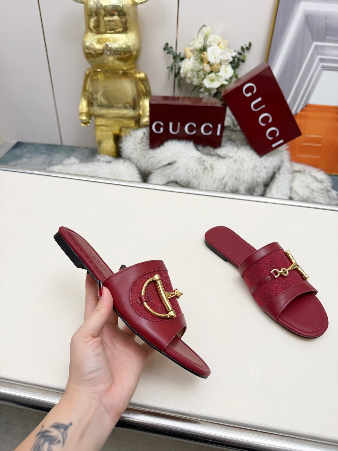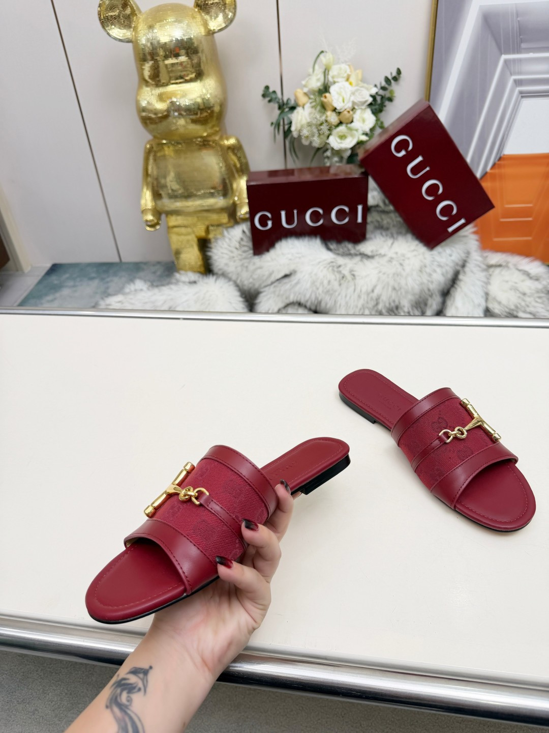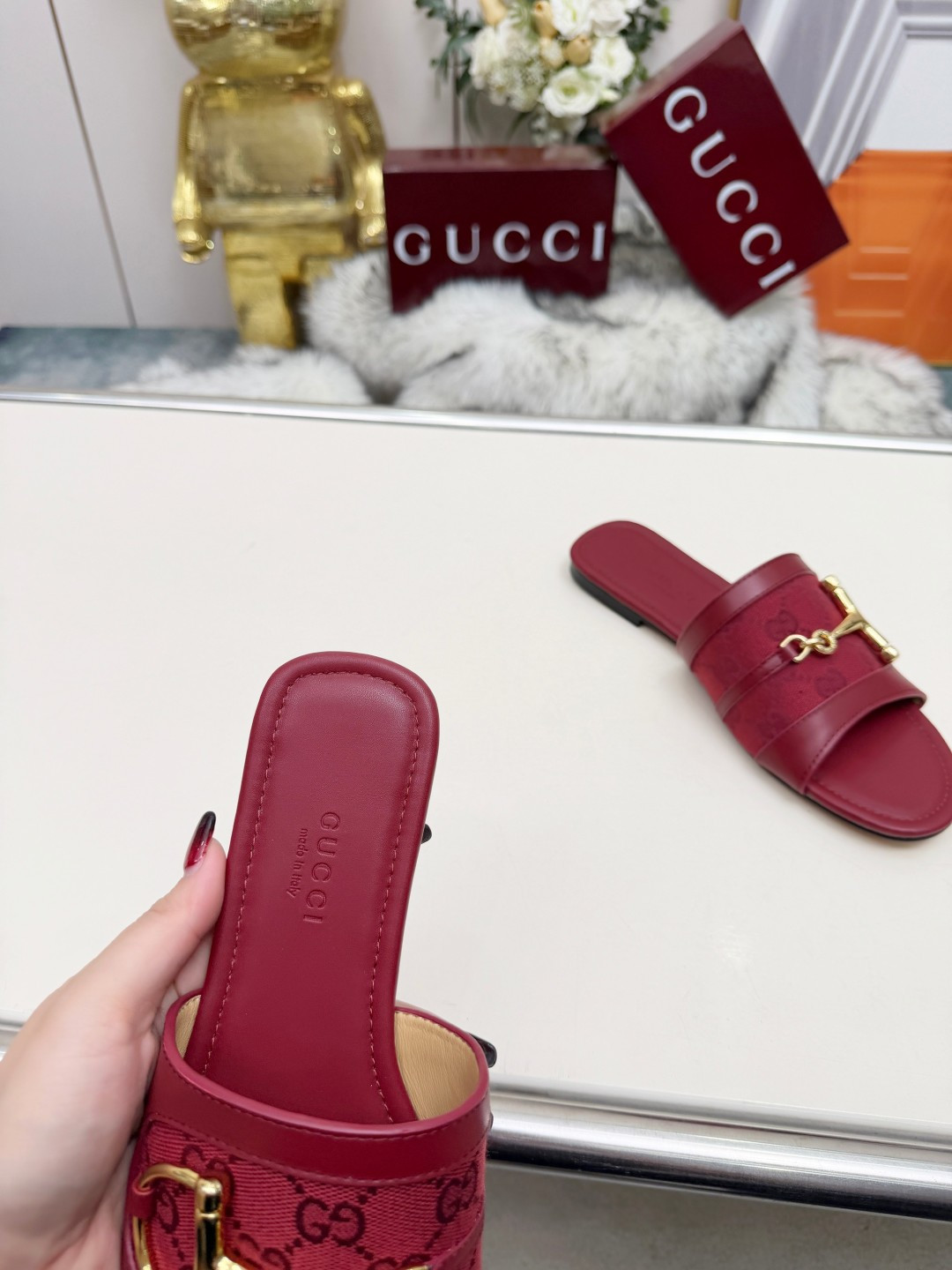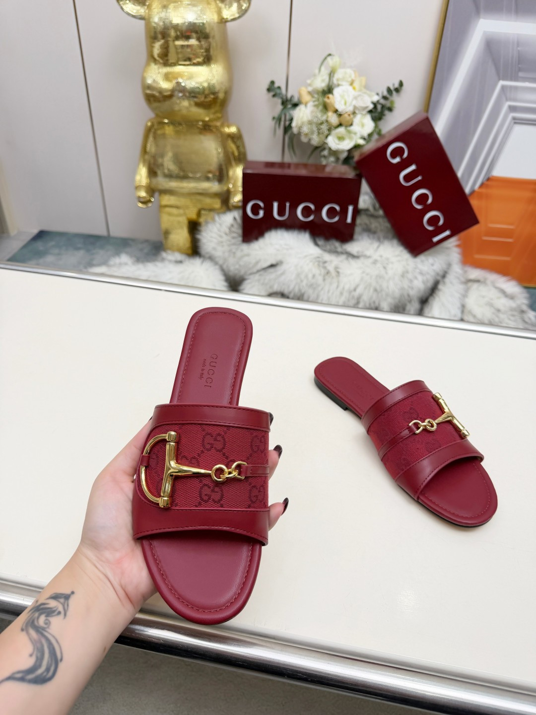 这款鞋子是AAAAA 1:1 质量 (非常棒). 使用了和原版一模一样的材料. 商标部分也保持了和古奇/Gucci一样. 图片拍摄是实物鞋子拍摄, 您所收到的实物保证和我们图片一模一样.