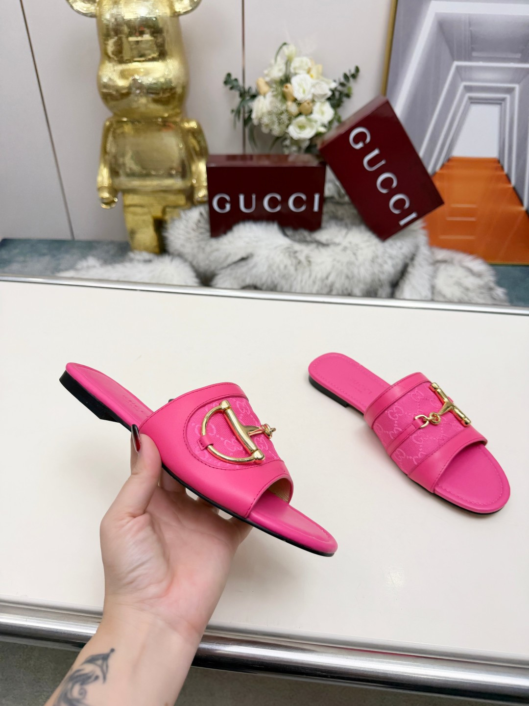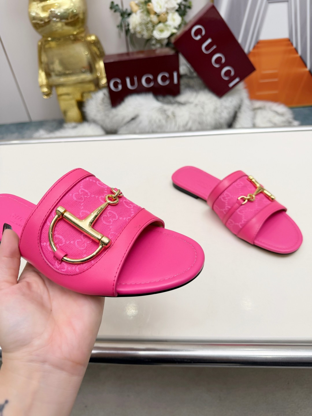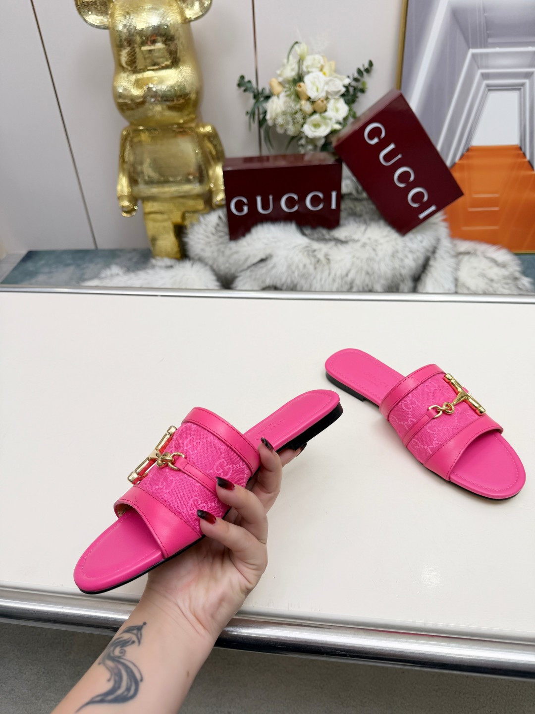 这款鞋子是AAAAA 1:1 质量 (非常棒). 使用了和原版一模一样的材料. 商标部分也保持了和古奇/Gucci一样. 图片拍摄是实物鞋子拍摄, 您所收到的实物保证和我们图片一模一样.
