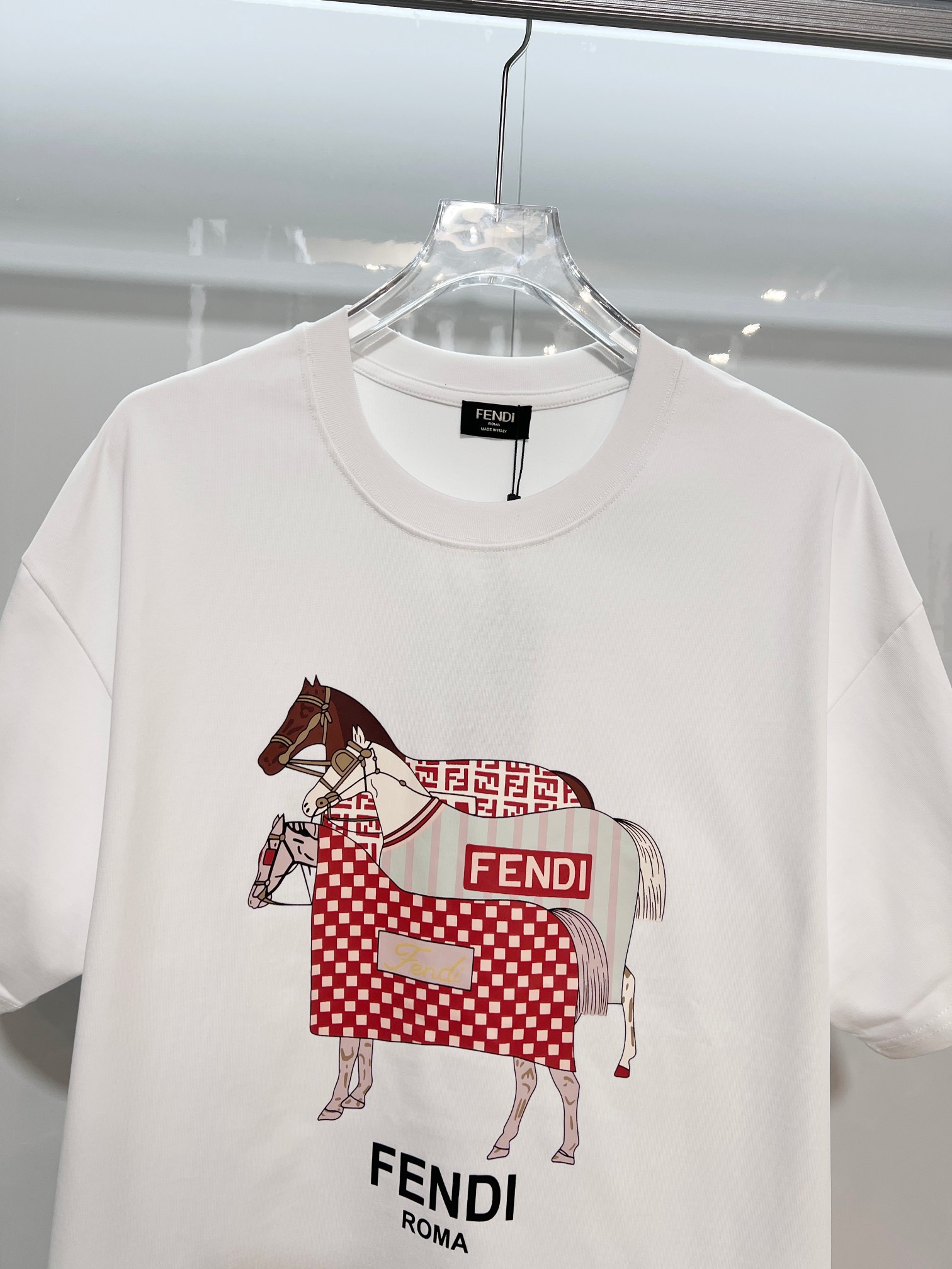 这款衣服是AAAAA 1:1 质量 (非常棒). 使用了和原版一模一样的材料. 商标部分也保持了和芬迪/Fendi一样. 图片拍摄是实物衣服拍摄, 您所收到的实物保证和我们图片一模一样.