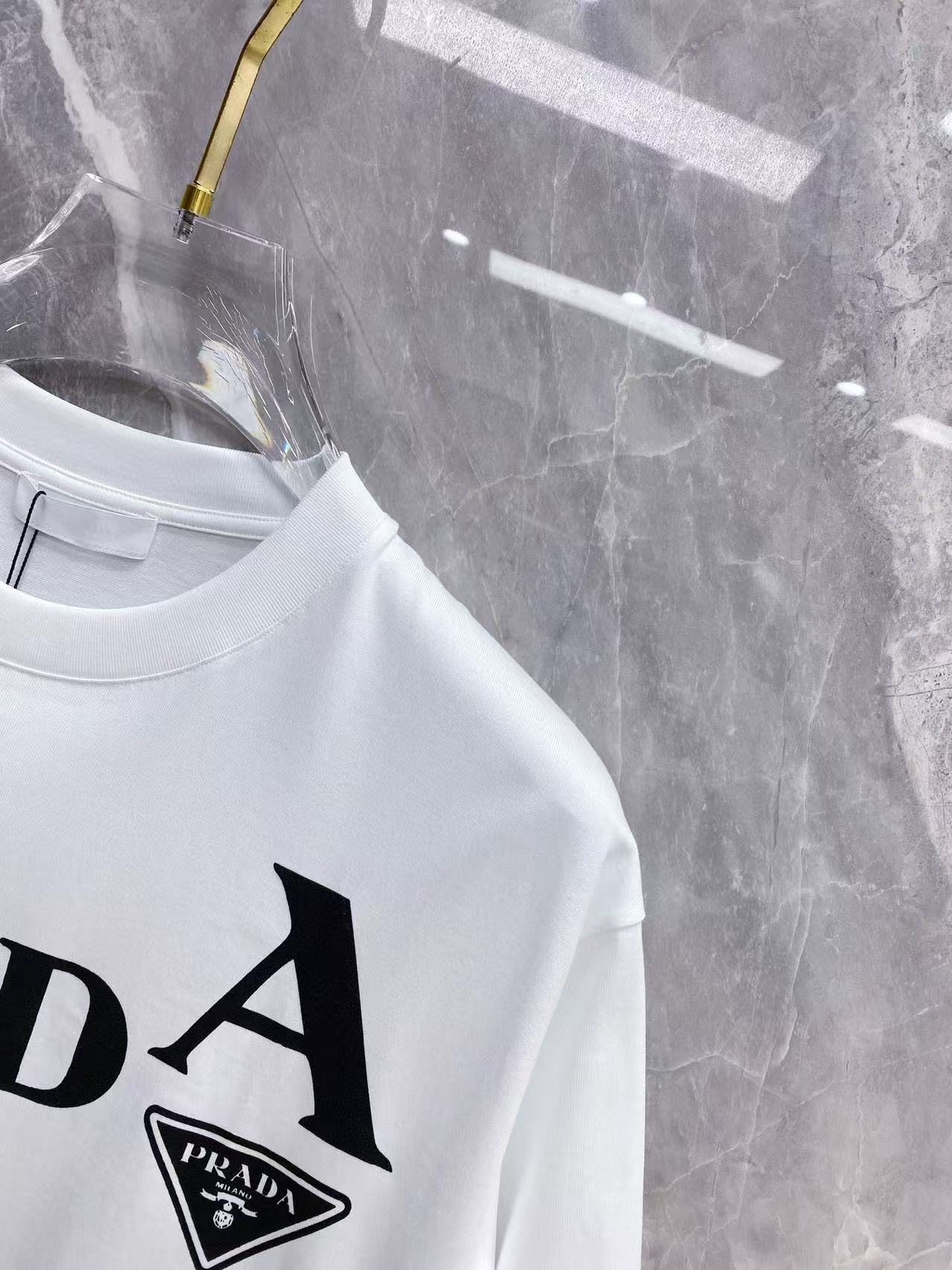 这款衣服是AAAAA 1:1 质量 (非常棒). 使用了和原版一模一样的材料. 商标部分也保持了和普拉达/Prada一样. 图片拍摄是实物衣服拍摄, 您所收到的实物保证和我们图片一模一样.