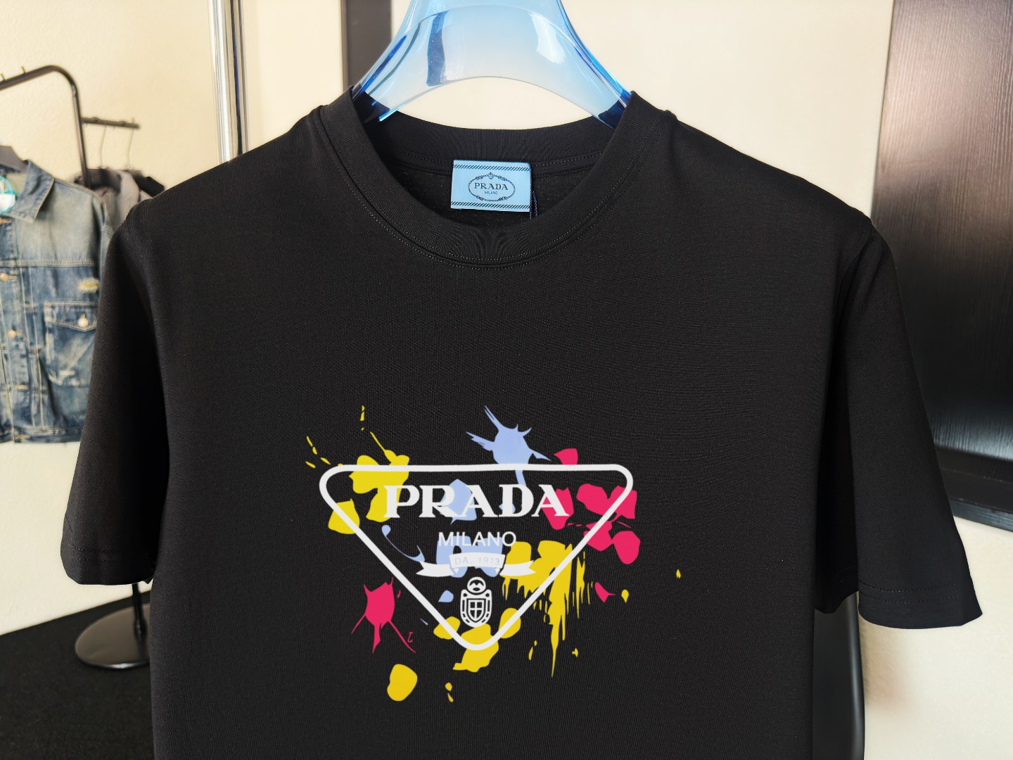 这款衣服是AAAAA 1:1 质量 (非常棒). 使用了和原版一模一样的材料. 商标部分也保持了和普拉达/Prada一样. 图片拍摄是实物衣服拍摄, 您所收到的实物保证和我们图片一模一样.