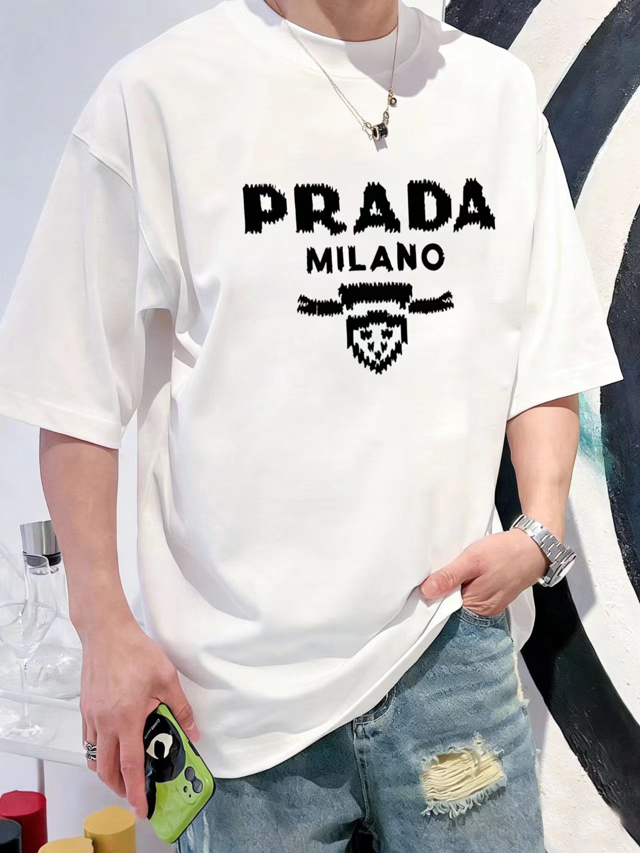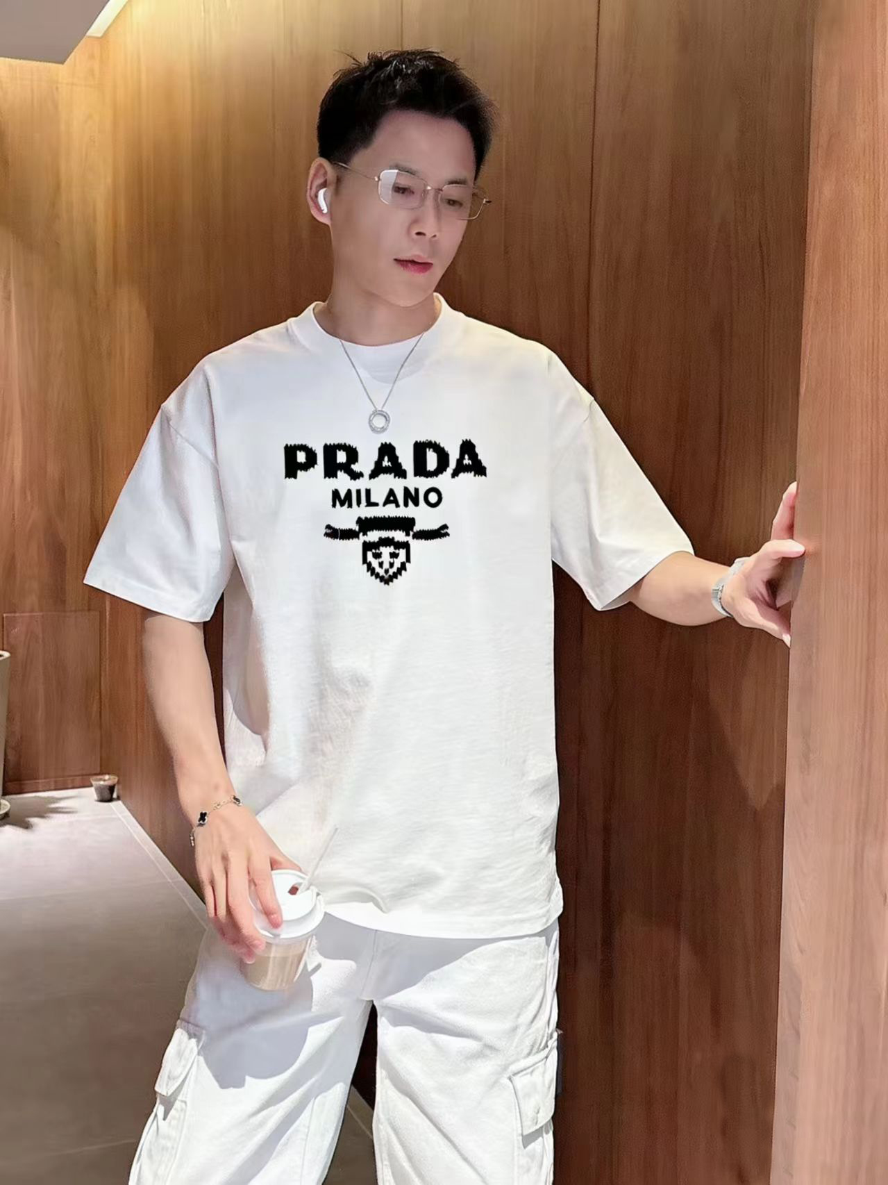这款衣服是AAAAA 1:1 质量 (非常棒). 使用了和原版一模一样的材料. 商标部分也保持了和普拉达/Prada一样. 图片拍摄是实物衣服拍摄, 您所收到的实物保证和我们图片一模一样.