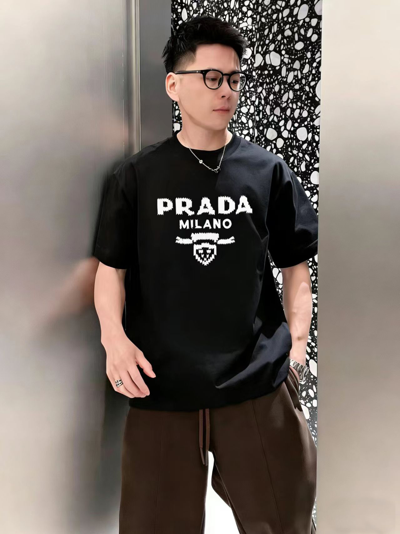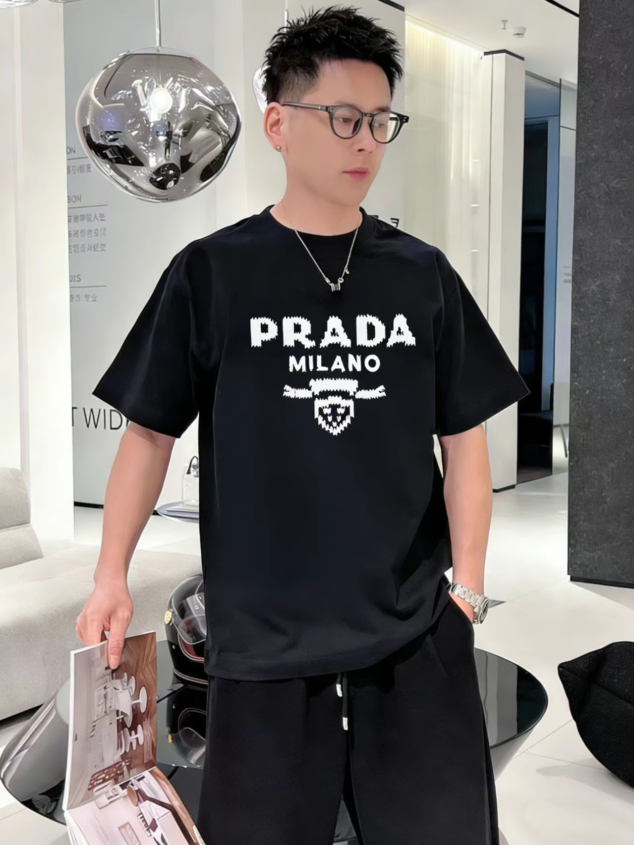这款衣服是AAAAA 1:1 质量 (非常棒). 使用了和原版一模一样的材料. 商标部分也保持了和普拉达/Prada一样. 图片拍摄是实物衣服拍摄, 您所收到的实物保证和我们图片一模一样.