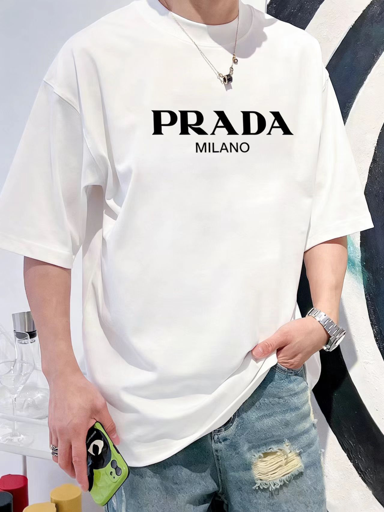 这款衣服是AAAAA 1:1 质量 (非常棒). 使用了和原版一模一样的材料. 商标部分也保持了和普拉达/Prada一样. 图片拍摄是实物衣服拍摄, 您所收到的实物保证和我们图片一模一样.