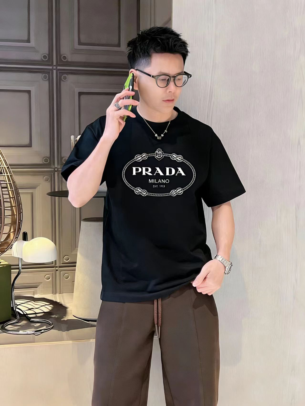 这款衣服是AAAAA 1:1 质量 (非常棒). 使用了和原版一模一样的材料. 商标部分也保持了和普拉达/Prada一样. 图片拍摄是实物衣服拍摄, 您所收到的实物保证和我们图片一模一样.