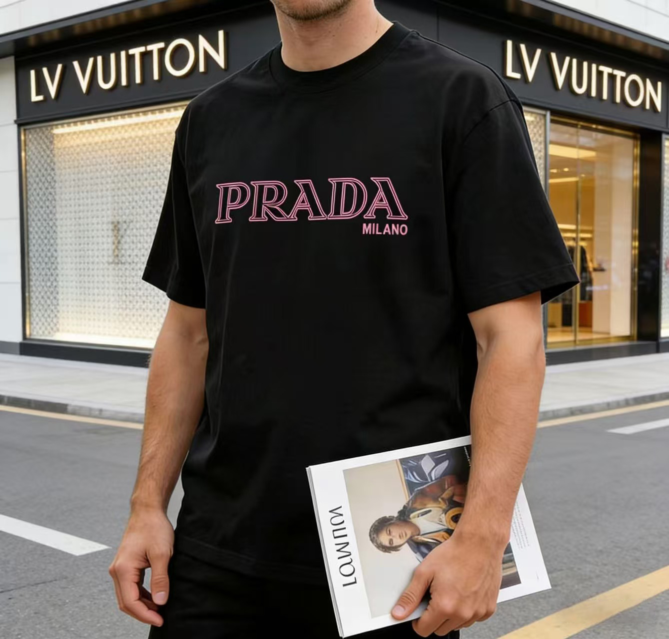 这款衣服是AAAAA 1:1 质量 (非常棒). 使用了和原版一模一样的材料. 商标部分也保持了和普拉达/Prada一样. 图片拍摄是实物衣服拍摄, 您所收到的实物保证和我们图片一模一样.